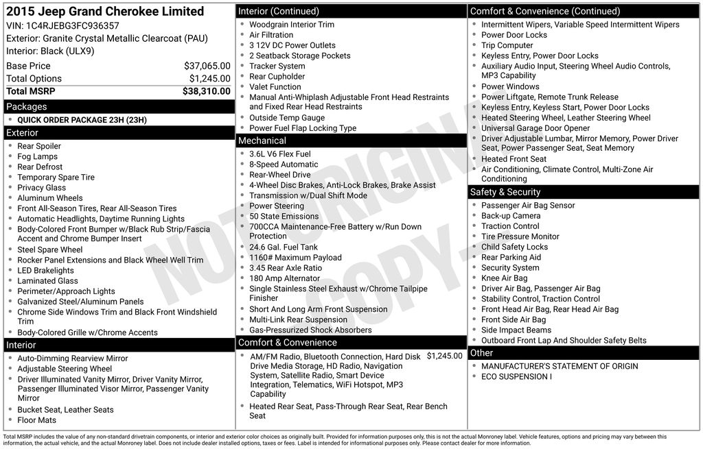 Recent Arrival! This 2015 Granite Crystal Metallic Clearcoat Jeep Grand Cherokee Limited RWD is well equipped and includes these features and benefits: