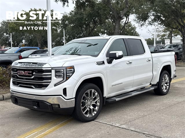 tive Cruise Control, Air Conditioning, All-Weather Floor Liner (LPO), Alloy wheels, AM/FM radio: SiriusXM with 360L, Apple CarPlay/Android Auto, Auto High-beam Headlights, Auto-dimming door mirrors, Auto-dimming Rear-View mirror, Auto-Locking Rear Differential, Automatic temperature control, Auxiliary External Transmission Oil Cooler, BLUETOOTH / HANDSFREE, Body Color Wheel Arch Moldings (LPO), Brake assist, Buckle to Drive, Bumpers: chrome, Chrome Header & Chrome Grille Insert Bars, Chrome Wheel To Wheel Assist Steps, CLEAN CARFAX!, Color-Keyed Carpeting Floor Covering, Compass, Deep-Tinted Glass, Delay-off headlights, Driver door bin, Driver Memory, Driver vanity mirror, Dual front impact airbags, Dual front side impact airbags, Electric Rear-Window Defogger, Electronic Precision Shift, Electronic Stability Control, Emergency communication system: OnStar, Floor-Mounted Center Console, Following Distance Indicator, Forward Collision Alert, Front 40/20/40 Split-Bench Seat, Front anti-roll bar, Front Bucket Seats, Front Center Armrest w/Storage, Front dual zone A/C, Front fog lights, Front Frame-Mounted Black Recovery Hooks, Front License Plate Kit, Front Pedestrian Braking, Front Rain-Sensing Wipers, Front reading lights, Front wheel independent suspension, Fully automatic headlights, HD Rear Vision Camera, HD Surround Vision, Heated 2nd Row Outboard Seats, Heated door mirrors, Heated Driver & Front Outboard Passenger Seating, Heated front seats, Heated steering wheel, High Capacity Suspension Package, Hitch Guidance, Hitch View, Illuminated entry, In-Vehicle Trailering System App, Integrated Trailer Brake Controller, IntelliBeam Automatic High Beam On/Off, Keyless Open & Start, Lane Keep Assist w/Lane Departure Warning, LED Cargo Area Lighting, LOCAL TRADE IN!, Low tire pressure warning, Manual Tilt-Wheel & Telescoping Steering Column, Memory seat, NAVIGATION, Navigation System, NON SMOKER VEHICLE, Occupant sensing airbag, OnStar Services Capable, Outside temperature display, Overhead airbag, Overhead console, Panic alarm, Passenger door bin, Passenger vanity mirror, Perf Leather-Appointed Front Outboard Seat Trim, Perimeter Lighting, Power Door Locks, Power door mirrors, Power driver seat, Power Front Passenger Windows w/Express Up/Down, Power Front Windows w/Driver Express Up/Down, Power passenger seat, Power Rake & Telescoping Steering Column, Power Rear Windows w/Express Down, Power Sliding Rear Window w/Rear Defogger, Power steering, Power Sunroof, Power windows, Preferred Equipment Group 4SA, Premium Bose 7-Speaker Sound System, PROFESSIONALLY DETAILED FOR DELIVERY!, ProGrade Trailering System, Push Button Start, Radio data system, Radio: Premium GMC Infotainment Audio System, Rain sensing wipers, Rear Cross Traffic Braking, Rear Pedestrian Detection, Rear reading lights, Rear seat center armrest, Rear step bumper, Rear Underseat Storage (LPO), Rear Wheelhouse Liners, Rear window defroster, Remote keyless entry, Remote Vehicle Starter System, Safety Alert Seat, Security system, Sierra Safety Plus Package, SiriusXM w/360L Trial Subscription, SLT Convenience Package, SLT Preferred Package, SLT Premium Plus Package, Speed control, Speed-sensing steering, Split folding rear seat, Spray-On Pickup Bedliner w/GMC Logo, Standard Suspension Package, Steering Wheel Audio Controls, Steering wheel mounted audio controls, SUNROOF/MOONROOF, SUPER LOW MILES!, Tachometer, Telescoping steering wheel, Theft Deterrent System (Unauthorized Entry),