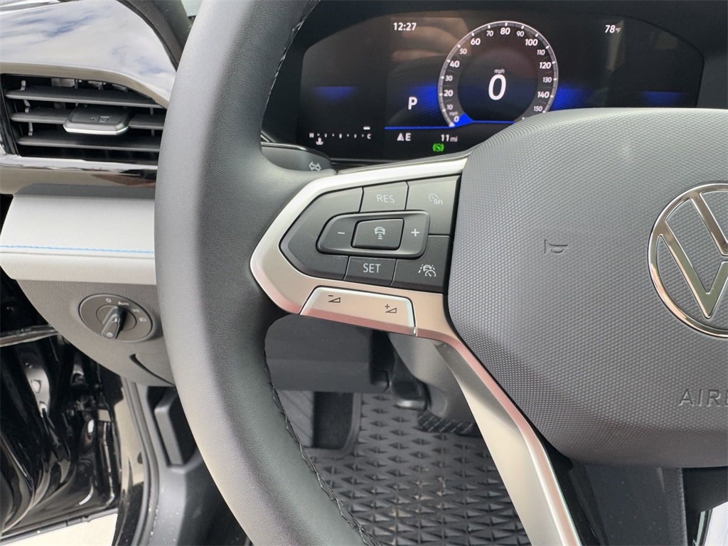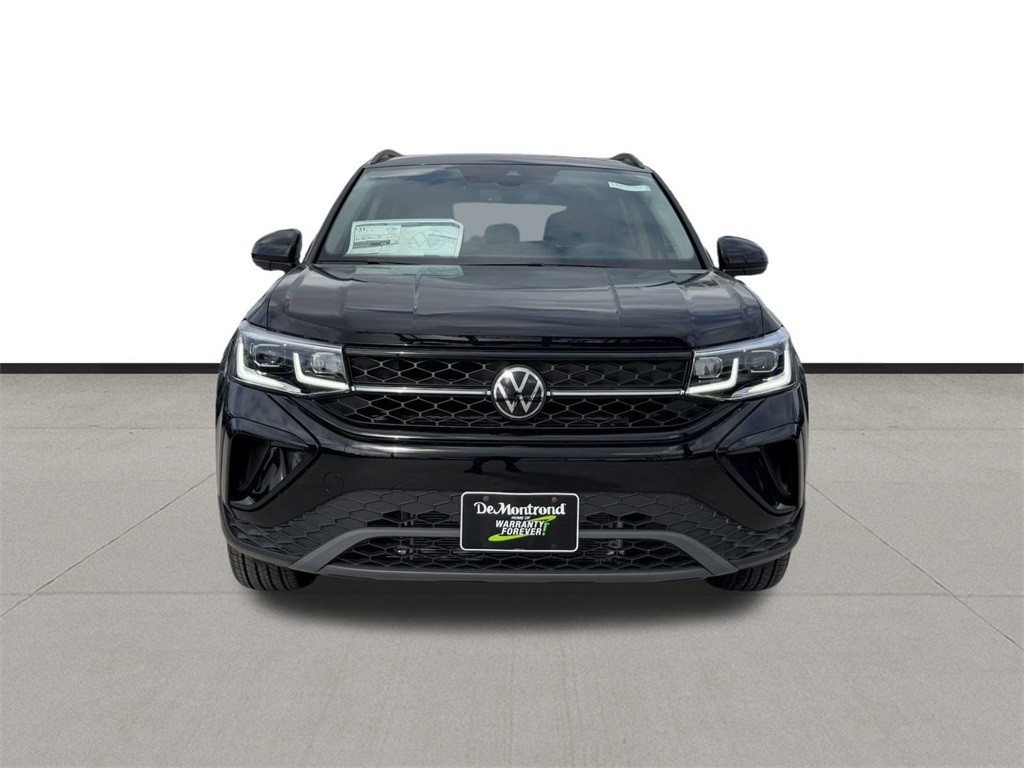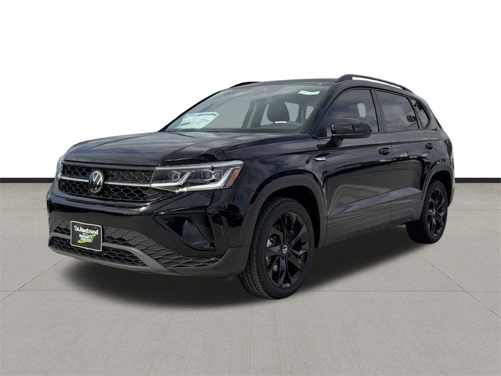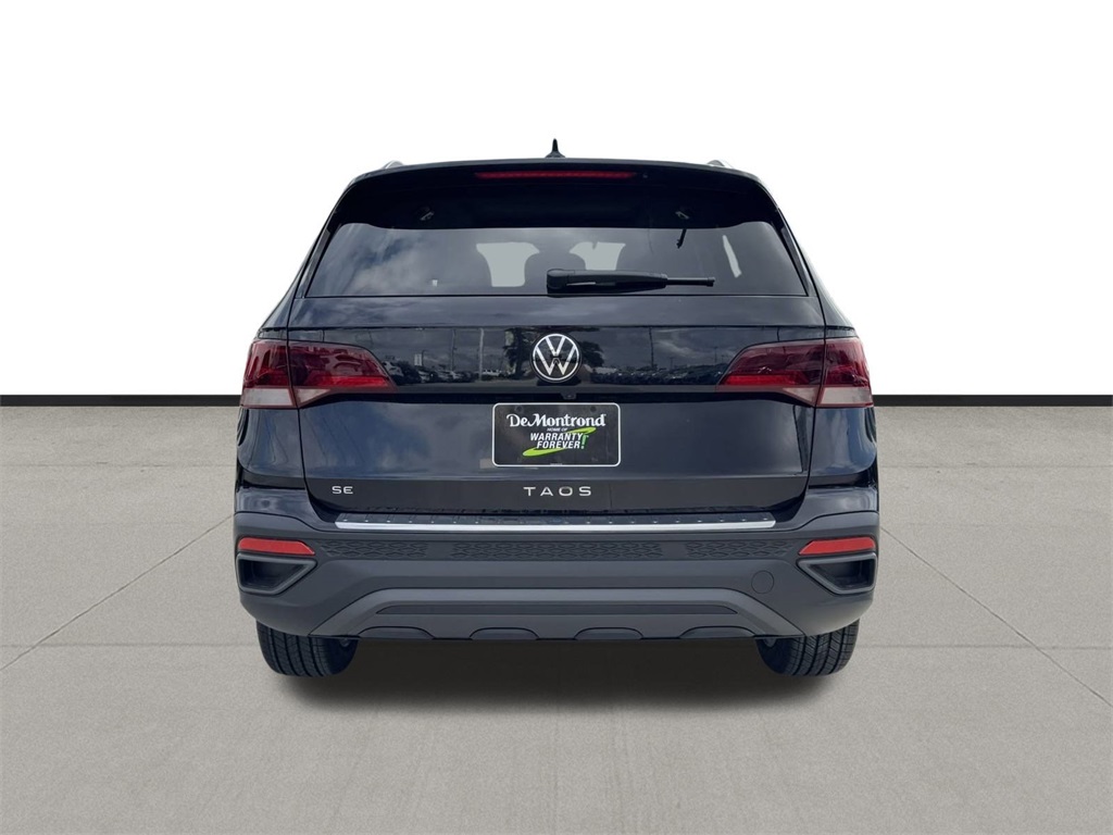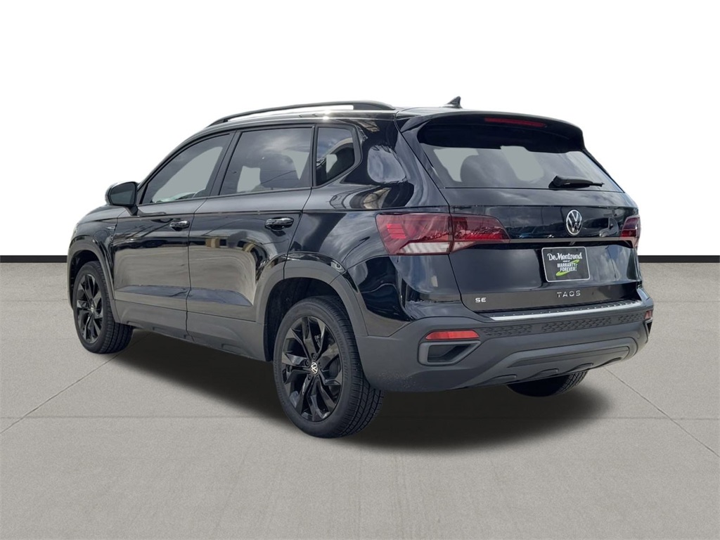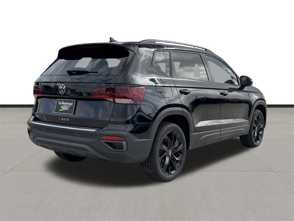 oth Seating Surfaces, Compass, Delay-off headlights, Driver door bin, Driver vanity mirror, Dual front impact airbags, Dual front side impact airbags, Electronic Stability Control, Emergency communication system: VW Car-Net Safe & Secure 5-year, Exterior Parking Camera Rear, Front anti-roll bar, Front Bucket Seats, Front Center Armrest, Front dual zone A/C, Front reading lights, Front Strut Rear Torsion Beam Suspension, Front wheel independent suspension, Fully automatic headlights, Heated door mirrors, Heated Front Bucket Seats, Heated front seats, Heated steering wheel, Illuminated entry, Leather Shift Knob, Low tire pressure warning, Occupant sensing airbag, Outside temperature display, Overhead airbag, Overhead console, Panic alarm, Passenger door bin, Passenger vanity mirror, Power door mirrors, Power driver seat, Power steering, Power windows, Radio data system, Radio: MIB3 Composition Media AM/FM/HD, Rain sensing wipers, Rear anti-roll bar, Rear seat center armrest, Rear window defroster, Rear window wiper, Remote keyless entry, Roof rack: rails only, Security system, Speed control, Speed-sensing steering, Split folding rear seat, Spoiler, Steering wheel mounted audio controls, Tachometer, Telescoping steering wheel, Tilt steering wheel, Traction control, Trip computer, Variably intermittent wipers, and Wheels: 18" 2-Tone Machined Alloy. 2024 Volkswagen Taos 1.5T SE 4D Sport Utility Black 28/36 City/Highway MPG