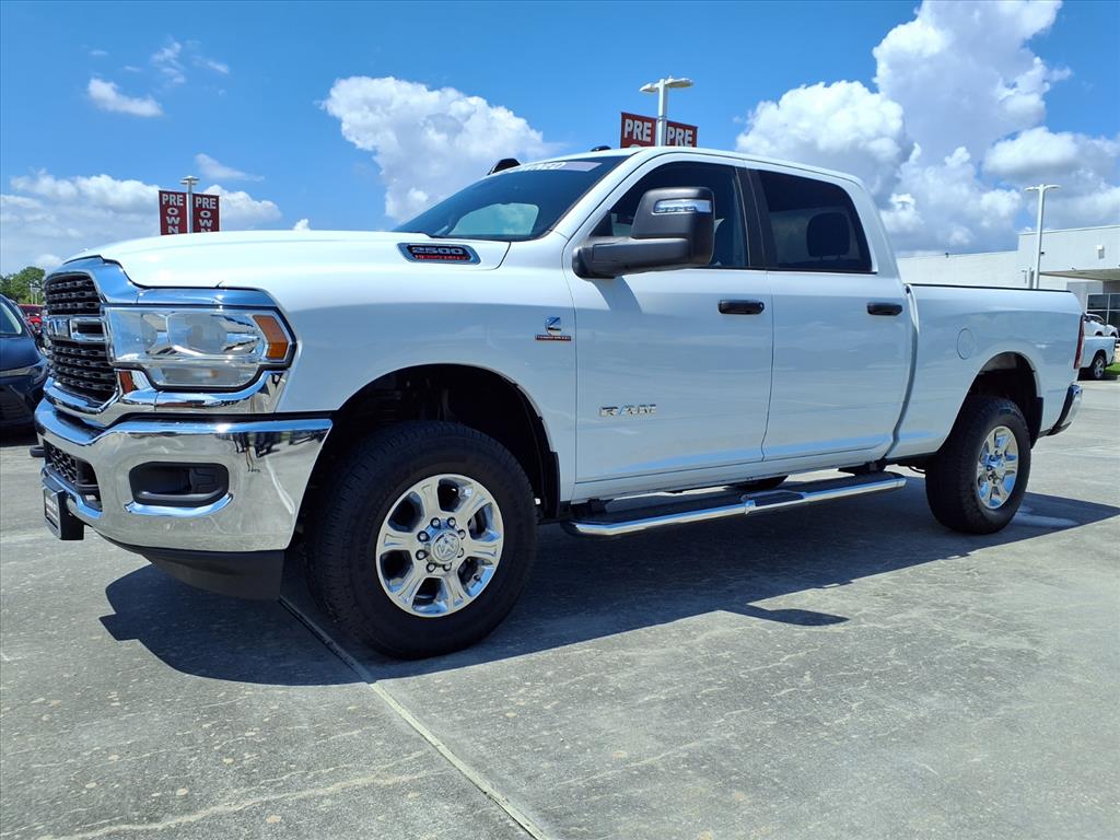 This 2024 RAM Crew Cab 4x4, 2500, Big Horn Vehicle is a state-of-the-art motorcar, boasting a 6.7 liter 6 cylinder turbo diesel engine and part time four wheel drive. With 43,828 miles on the clock, this car has been driven with care and precision, earning it a crash test rating of 4 out of 5 stars. The exterior is finished in a bright white clearcoat, while the interior is upholstered in a diesel gray/black combination. Hill start assist and part time four wheel drive ensure that this car can t