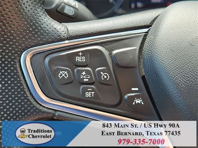 eels, AM/FM radio: SiriusXM, Auto High-beam Headlights, Bluetooth® For Phone, Brake assist, Bumpers: body-color, Compass, Delay-off headlights, Deleted 3 Years of Remote Access, Driver 8-Way Power Seat Adjuster, Driver door bin, Driver vanity mirror, Dual front impact airbags, Dual front side impact airbags, Electronic Stability Control, Emergency communication system: OnStar and Chevrolet connected services capable, Four wheel independent suspension, Front anti-roll bar, Front Bucket Seats, Front Center Armrest, Front Passenger 4-Way Manual Seat Adjuster, Front reading lights, Fully automatic headlights, Heated door mirrors, Illuminated entry, Low tire pressure warning, Occupant sensing airbag, Outside temperature display, Overhead airbag, Overhead console, Panic alarm, Passenger door bin, Passenger vanity mirror, Power door mirrors, Power driver seat, Power steering, Power windows, Premium audio system: Chevrolet Infotainment 3, Premium Cloth Seat Trim, Radio data system, Radio: Chevrolet Infotainment 3 System w/AM/FM, Rear anti-roll bar, Rear reading lights, Rear seat center armrest, Rear window defroster, Rear window wiper, Remote keyless entry, Security system, SiriusXM Radio, Speed control, Speed-sensing steering, Split folding rear seat, Spoiler, Steering wheel mounted audio controls, Tachometer, Telescoping steering wheel, Tilt steering wheel, Traction control, Trip computer, Variably intermittent wipers, and Wireless Apple CarPlay/Wireless Android Auto. Certification Program Details: CARBRAVO CERTIFIED