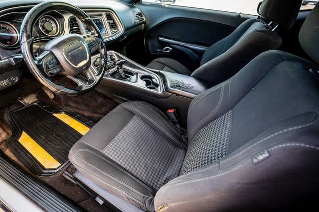 The R/T is the least expensive way into a V8 Challenger, offering a 5.7-liter engine paired to either a six-speed manual transmission with 375 hp, 410 lb-ft., or the eight-speed auto that this Challenger features. In addition to the SXT features, you get 20-inch wheels, Foglights, upgraded brakes, a limited-slip differential and an active sport exhaust. This R/T also adds a power sunroof and available XM radio.
