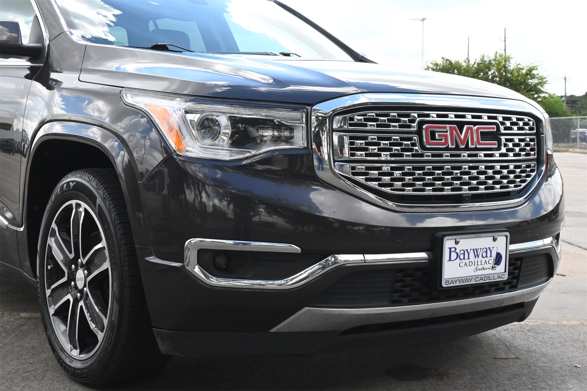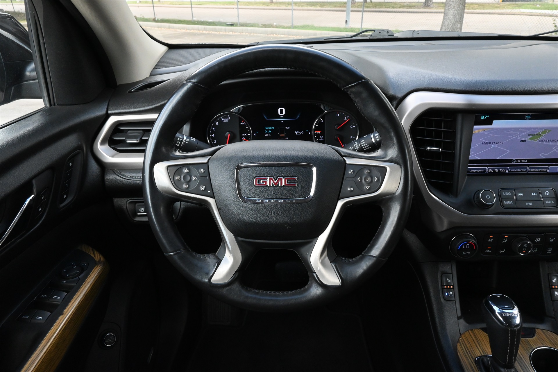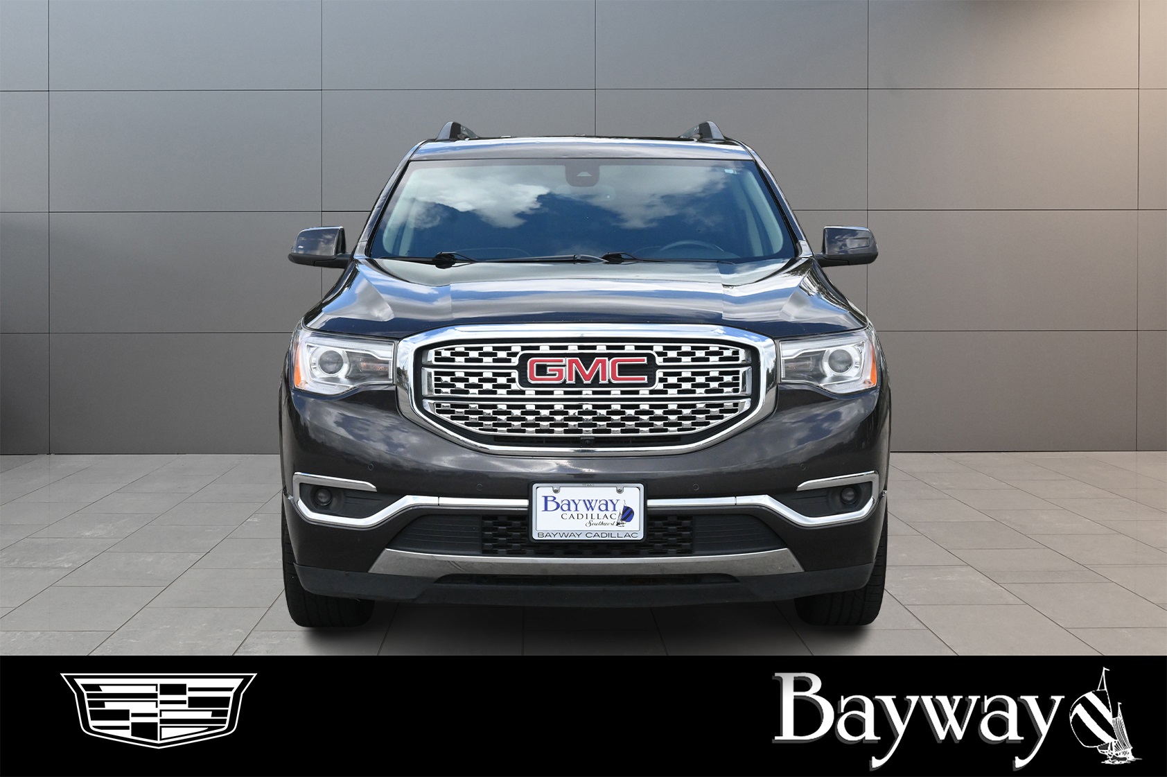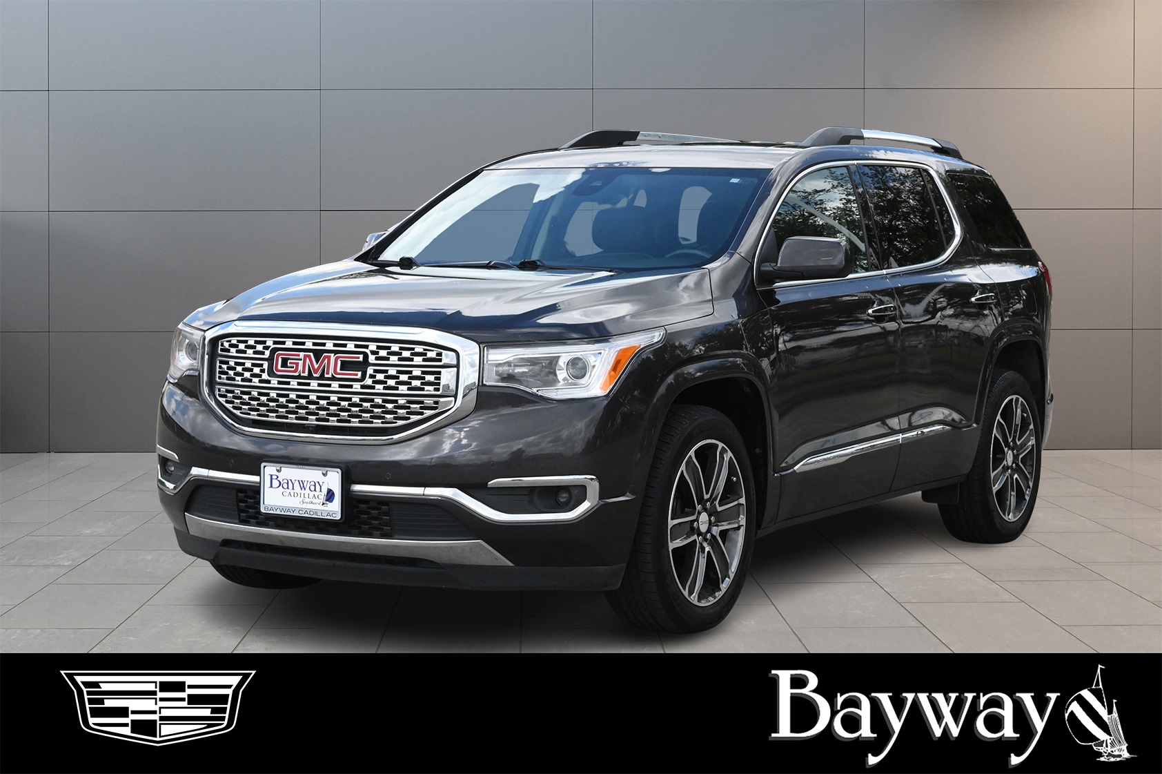 This 2017 GMC Acadia Denali is loaded with the following Factory Options:Preferred Equipment Group 5SA (Electronic Cruise Control w/Set & Resume Speed), Technology Package (Forward Automatic Braking, Full Speed Adaptive Cruise Control w/Stop/Go, and Surround Vision System), FWD, Jet Black Leather, 3.16 Axle Ratio, 3rd row seats: split-bench, 4-Wheel Disc Brakes, 6-Passenger (2-2-2 Seating Configuration), 8 Speakers, ABS brakes, Air Conditioning, Alloy wheels, AM/FM radio: SiriusXM, Apple CarPlay