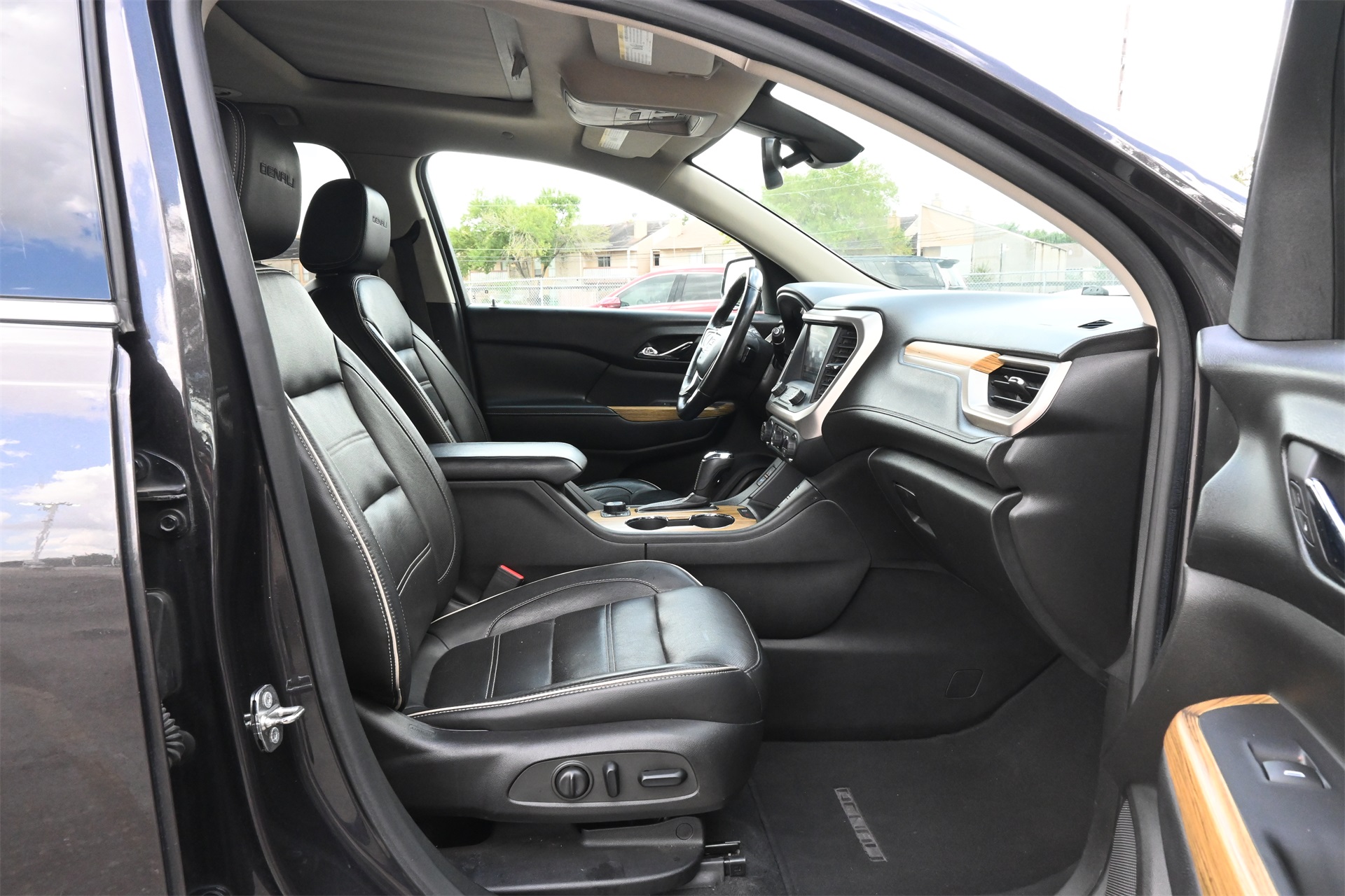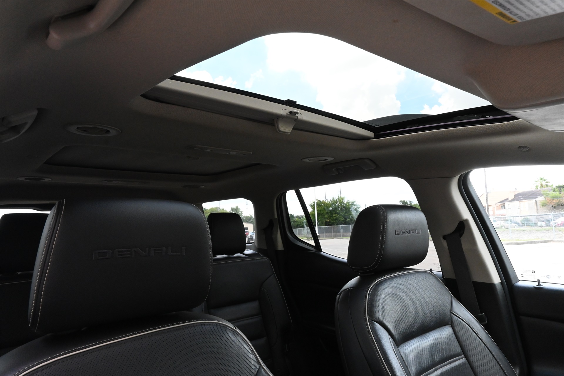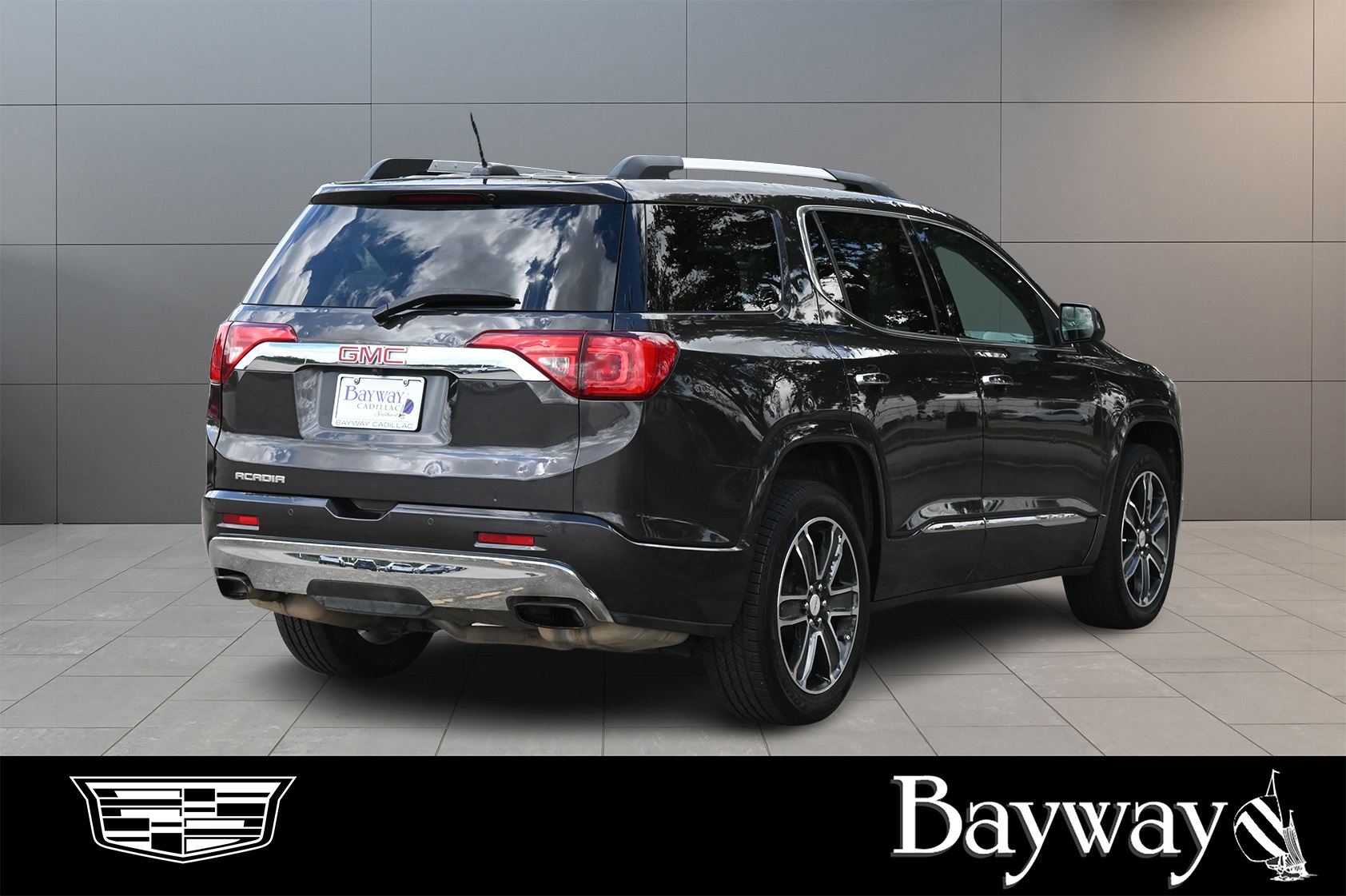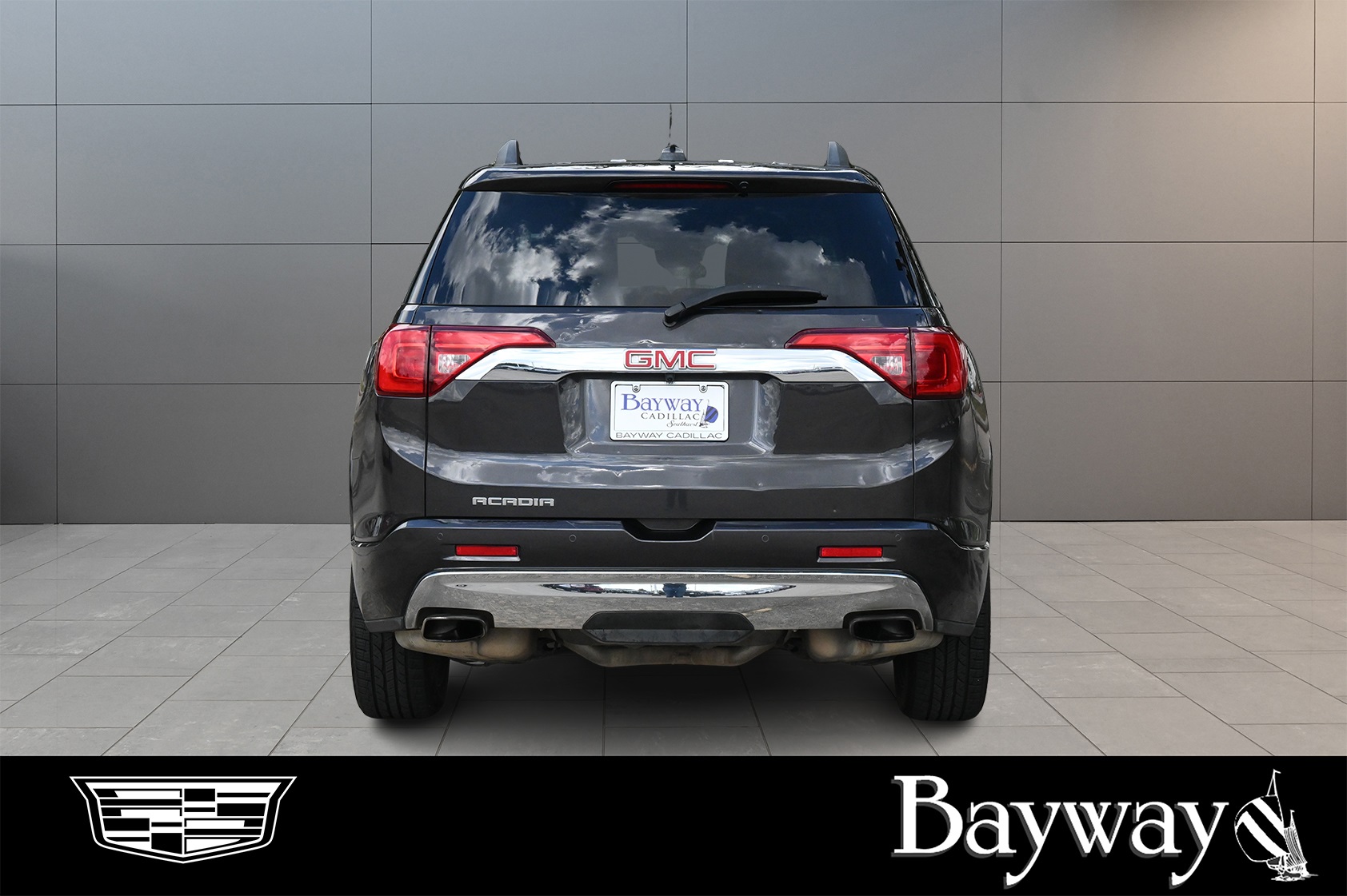 This 2017 GMC Acadia Denali is loaded with the following Factory Options:Preferred Equipment Group 5SA (Electronic Cruise Control w/Set & Resume Speed), Technology Package (Forward Automatic Braking, Full Speed Adaptive Cruise Control w/Stop/Go, and Surround Vision System), FWD, Jet Black Leather, 3.16 Axle Ratio, 3rd row seats: split-bench, 4-Wheel Disc Brakes, 6-Passenger (2-2-2 Seating Configuration), 8 Speakers, ABS brakes, Air Conditioning, Alloy wheels, AM/FM radio: SiriusXM, Apple CarPlay