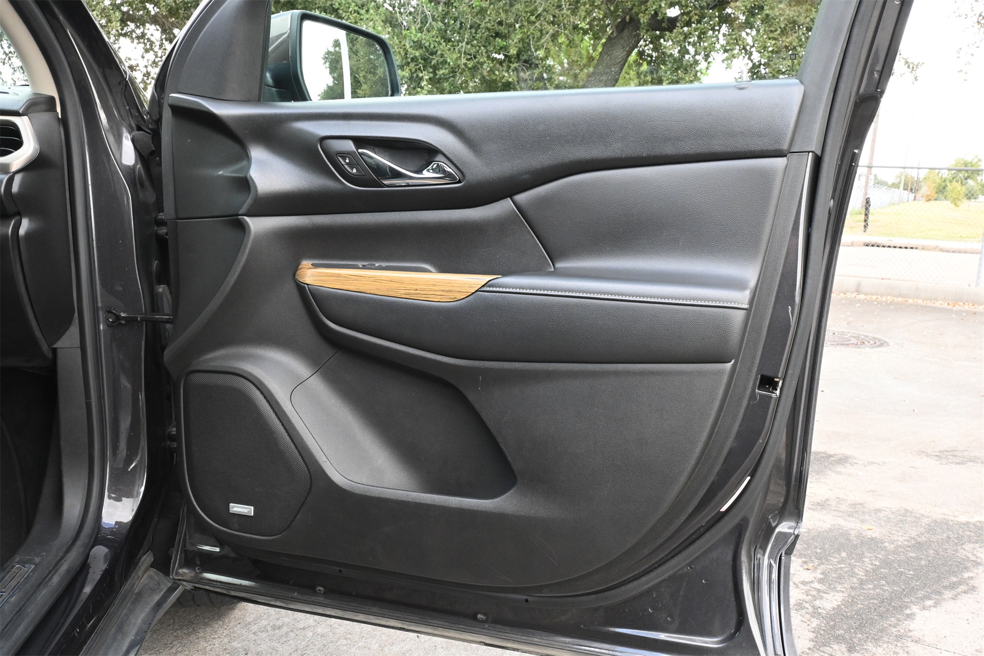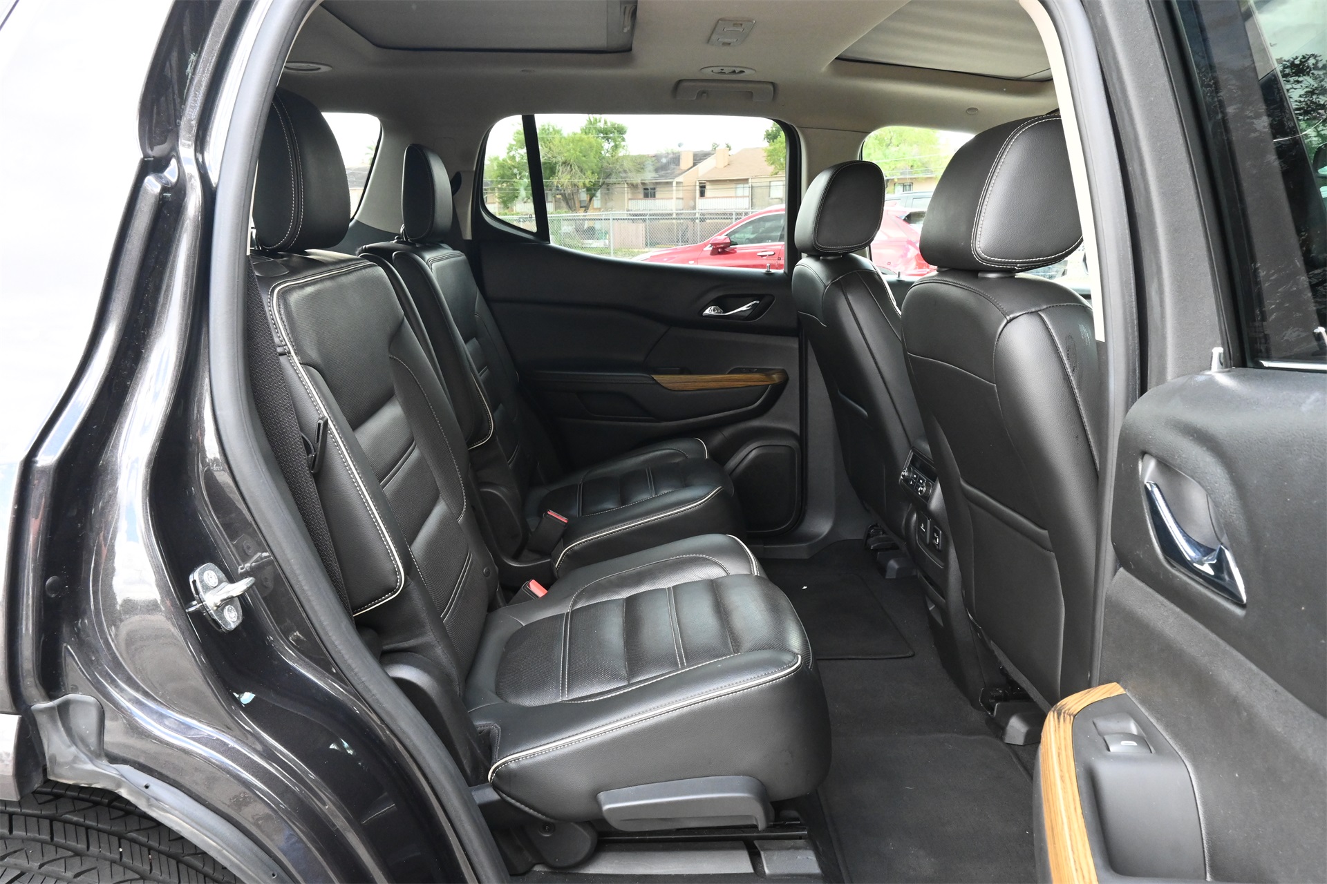 Android Auto, Auto High-beam Headlights, Auto-dimming door mirrors, Auto-dimming Rear-View mirror, Automatic temperature control, Brake assist, Bumpers: body-color, Compass, Delay-off headlights, Driver door bin, Driver vanity mirror, Dual front impact airbags, Dual front side impact airbags, Dual SkyScape 2-Panel Power Sunroof, Electronic Stability Control, Emergency communication system: OnStar Guidance, Exterior Parking Camera Rear, Four wheel independent suspension, Front anti-roll bar, Front Bucket Seats, Front Center Armrest, Front dual zone A/C, Front fog lights, Front License Plate Bracket, Front reading lights, Fully automatic headlights, Garage door transmitter, Heated door mirrors, Heated front seats, Heated rear seats, Heated steering wheel, High-Intensity Discharge Headlights, Illuminated entry, Knee airbag, Low tire pressure warning, Memory seat, Navigation System, Occupant sensing airbag, Outside temperature display, Overhead airbag, Overhead console, Panic alarm, Passenger door bin, Passenger vanity mirror, Perforated Leather-Appointed Seat Trim, Power door mirrors, Power driver seat, Power Liftgate, Power passenger seat, Power steering, Power windows, Premium audio system: IntelliLink, Radio data system, Radio: AM/FM 8" Diagonal Color Touch Navigation, Rear air conditioning, Rear anti-roll bar, Rear reading lights, Rear window defroster, Rear window wiper, Remote keyless entry, Roof rack: rails only, Security system, SiriusXM Satellite Radio, Speed control, Speed-sensing steering, Spoiler, Steering wheel mounted audio controls, Tachometer, Telescoping steering wheel, Tilt steering wheel, Traction control, Trip computer, Variably intermittent wipers, Ventilated front seats, Voltmeter, and Wheels: 20" x 8" Polished Aluminum (4) Iridium Metallic FWD 6-Speed Automatic 3.6L V6 SIDI DOHC VVT Clean CARFAX!, Non-Smoker, Local Trade, Bluetooth, FWD, Jet Black Leather.