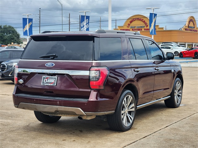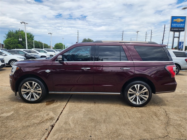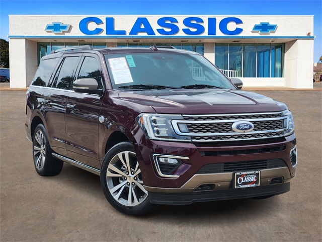 Burgundy Velvet Metallic Tinted Clearcoat 2020 Ford Expedition King Ranch 4WD 10-Speed Automatic EcoBoost 3.5L V6 GTDi DOHC 24V Twin Turbocharged Expedition King Ranch, 4WD, 12 Speakers, Adjustable pedals, Auto-dimming door mirrors, Automatic temperature control, Brake assist, Compass, Delay-off headlights, Dual front impact airbags, Equipment Group 400A, Four wheel independent suspension, Front Center Armrest, Front fog lights, Garage door transmitter, Illuminated entry, Memory seat, Navigation