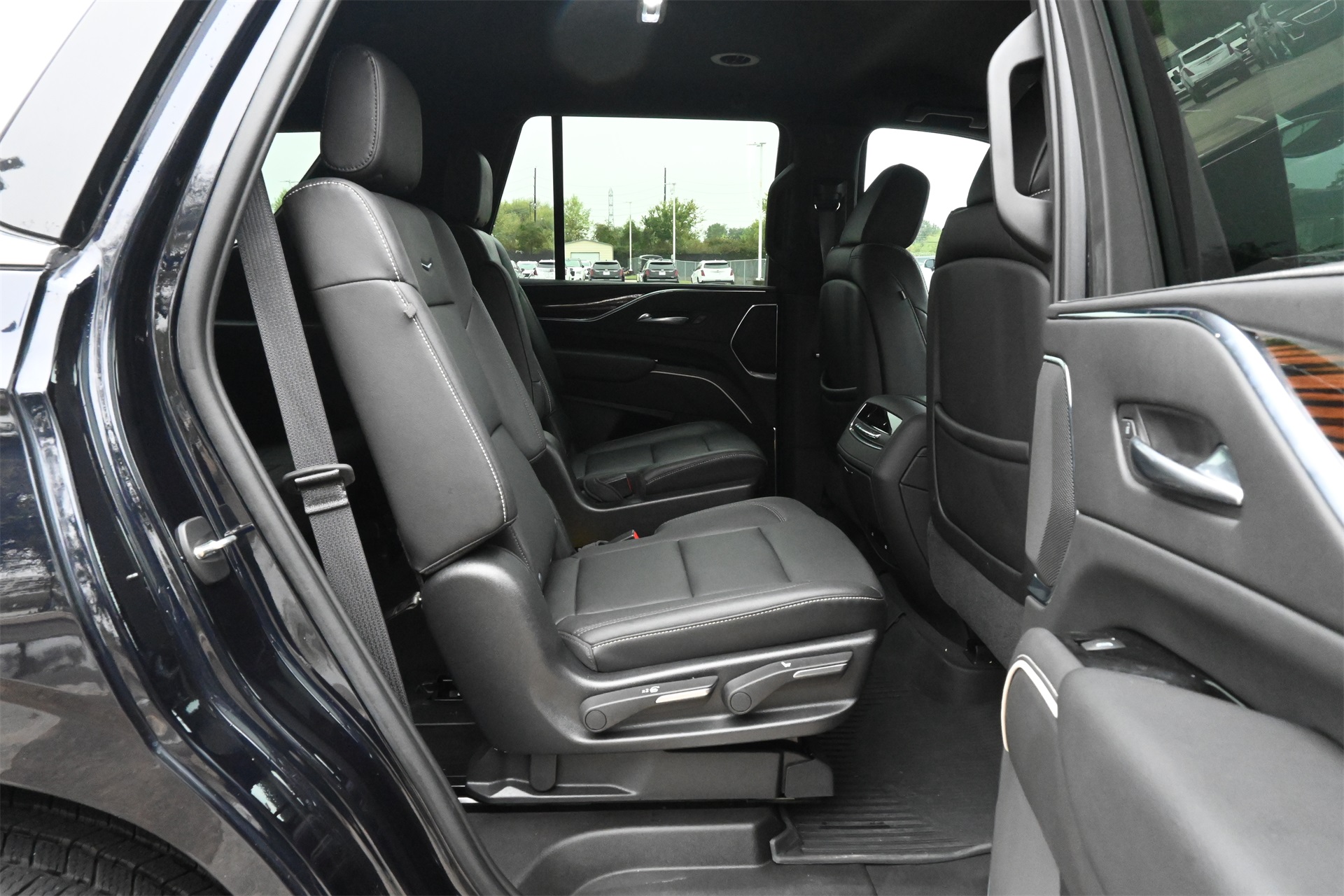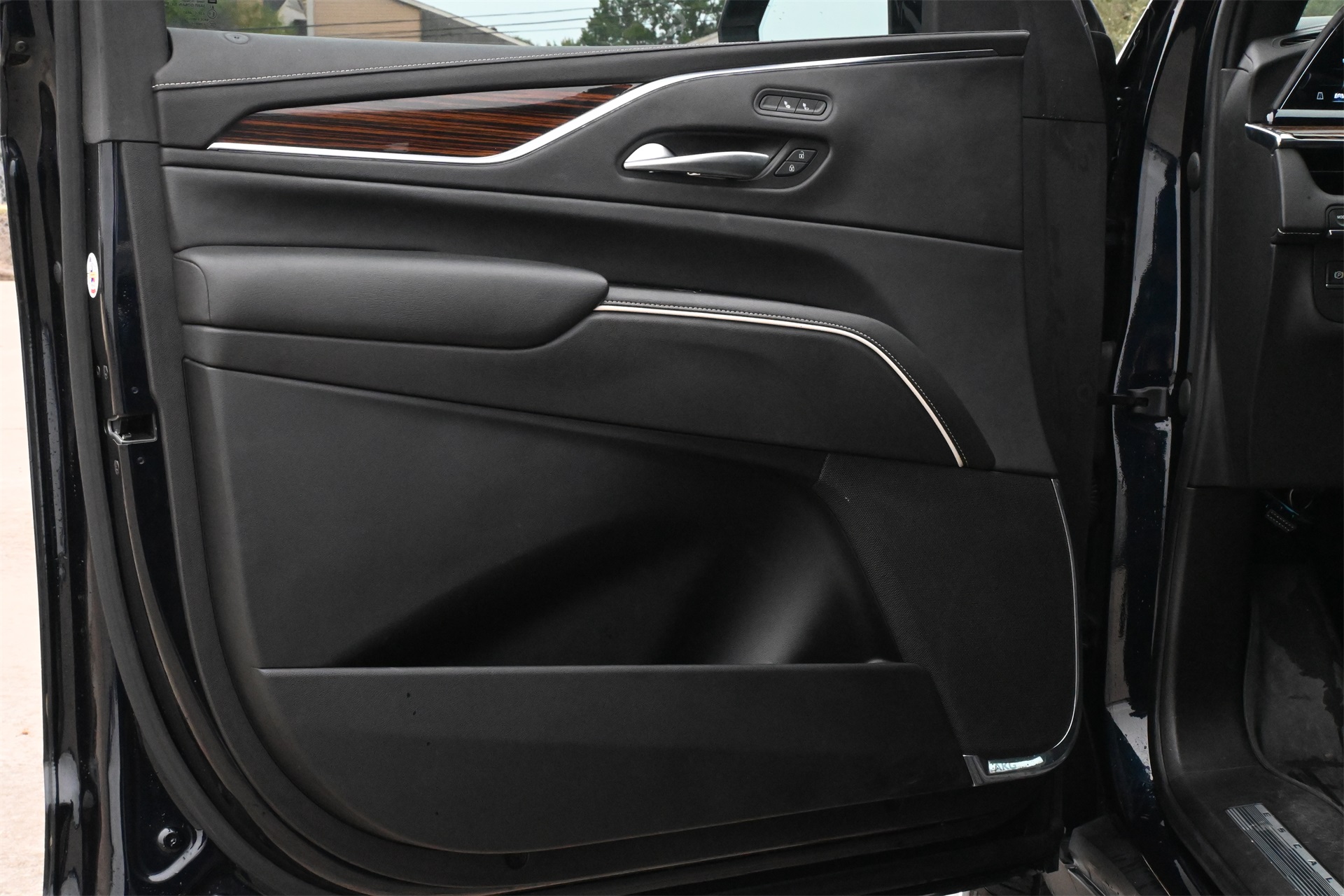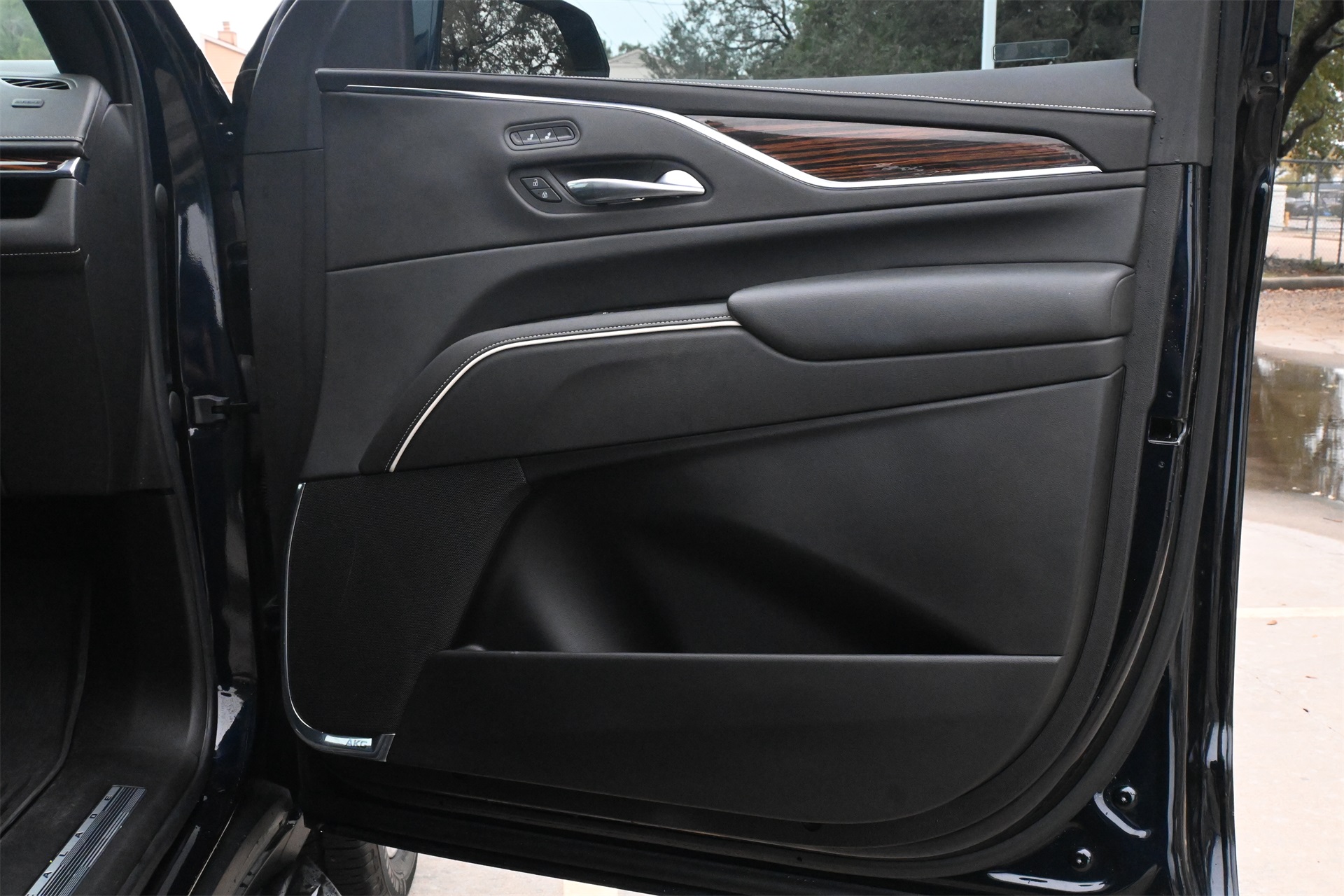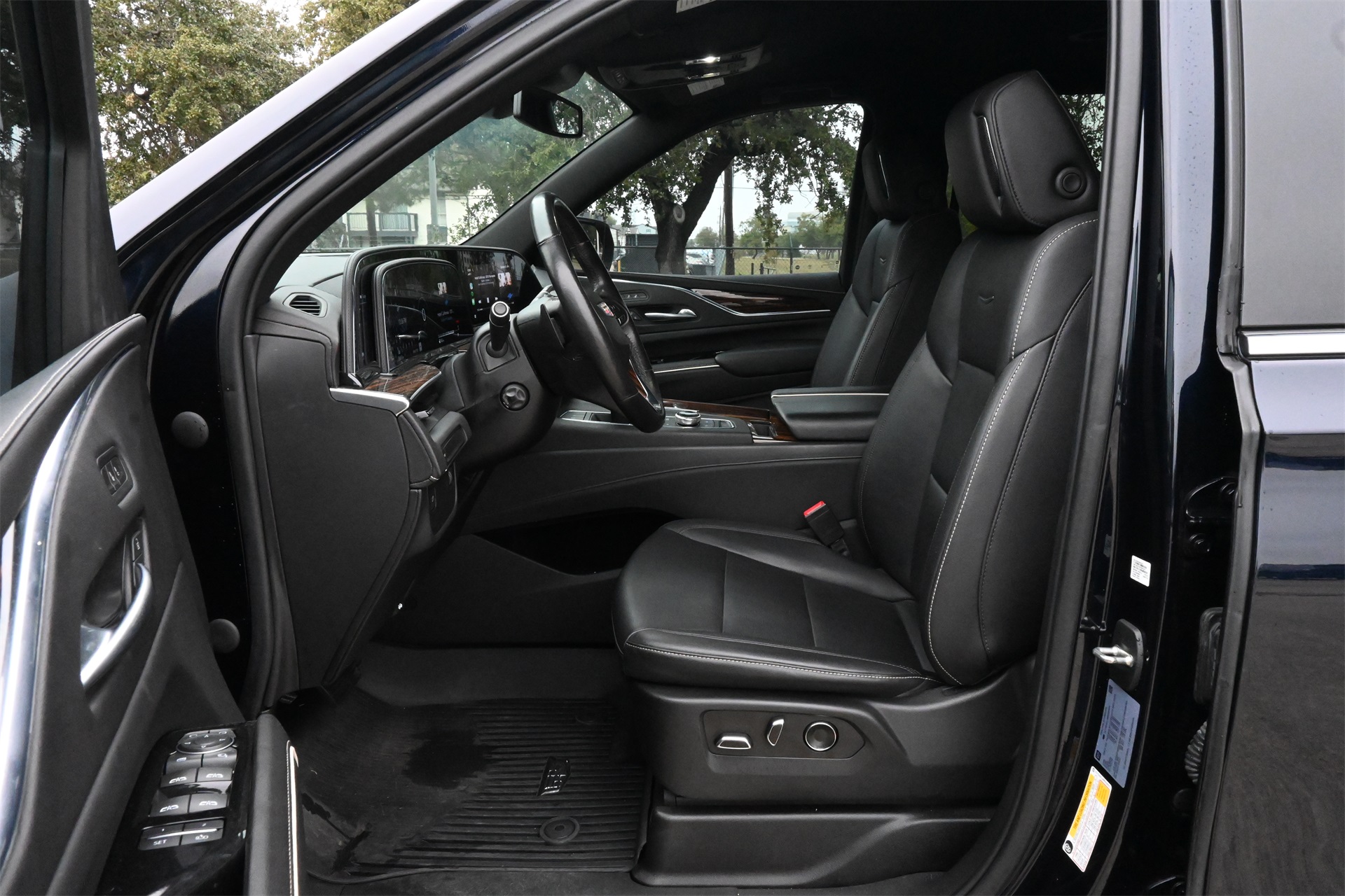 AKG Studio 19-Speaker Audio System, Alloy wheels, AM/FM radio: SiriusXM with 360L, Apple CarPlay/Android Auto, Audio memory, Auto High-beam Headlights, Auto tilt-away steering wheel, Auto-dimming door mirrors, Auto-dimming Rear-View mirror, Automatic temperature control, Brake assist, Bumpers: body-color, Compass, Delay-off headlights, Driver door bin, Driver vanity mirror, Dual front impact airbags, Dual front side impact airbags, Electronic Stability Control, Emergency communication system: OnStar and Cadillac connected services capable, Four wheel independent suspension, Front anti-roll bar, Front Bucket Seats, Front Center Armrest w/Storage, Front dual zone A/C, Front License Plate Bracket, Front reading lights, Fully automatic headlights, Garage door transmitter, HD Radio, Heated door mirrors, Heated Driver & Front Passenger Seats, Heated front seats, Heated rear seats, Heated steering wheel, Illuminated entry, Leather steering wheel, Leatherette Seats, Low tire pressure warning, Memory seat, Navigation System, Not Equipped w/Automatic Stop/Start, Occupant sensing airbag, Outside temperature display, Overhead airbag, Overhead console, Panic alarm, Passenger door bin, Passenger vanity mirror, Power door mirrors, Power driver seat, Power Liftgate, Power passenger seat, Power steering, Power windows, Premium Smooth Ride Suspension, Radio data system, Radio: AM/FM/SiriusXM w/Navigation, Rain sensing wipers, Rear air conditioning, Rear anti-roll bar, Rear reading lights, Rear window defroster, Rear window wiper, Remote keyless entry, Roof rack: rails only, SiriusXM w/360L, Speed control, Split folding rear seat, Spoiler, Steering wheel memory, Steering wheel mounted audio controls, Tachometer, Teen Driver, Telescoping steering wheel, Tilt steering wheel, Traction control, Trip computer, Turn signal indicator mirrors, Variably intermittent wipers, Voltmeter, Wheels: 22" 14-Spoke Alloy w/Bright Silver Finish, and Wireless Apple CarPlay/Wireless Android Auto. Dark Moon Blue Metallic RWD 10-Speed Automatic with Overdrive 6.2L V8 CARFAX 1-Owner, Clean CARFAX!, Non-Smoker, Local Trade, Low Miles, Bluetooth, Apple Carplay / Android Auto, Jet Black Artificial Leather.