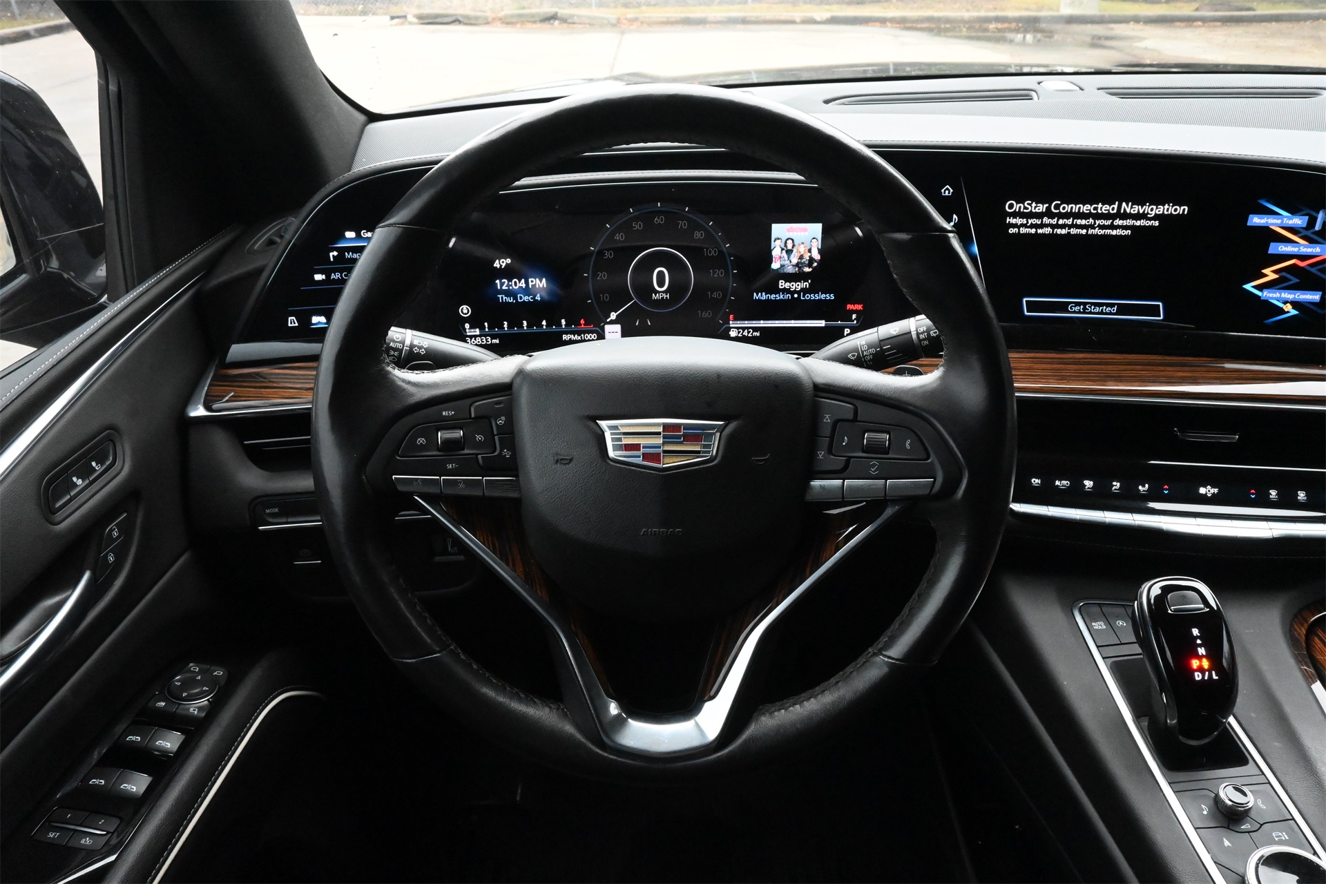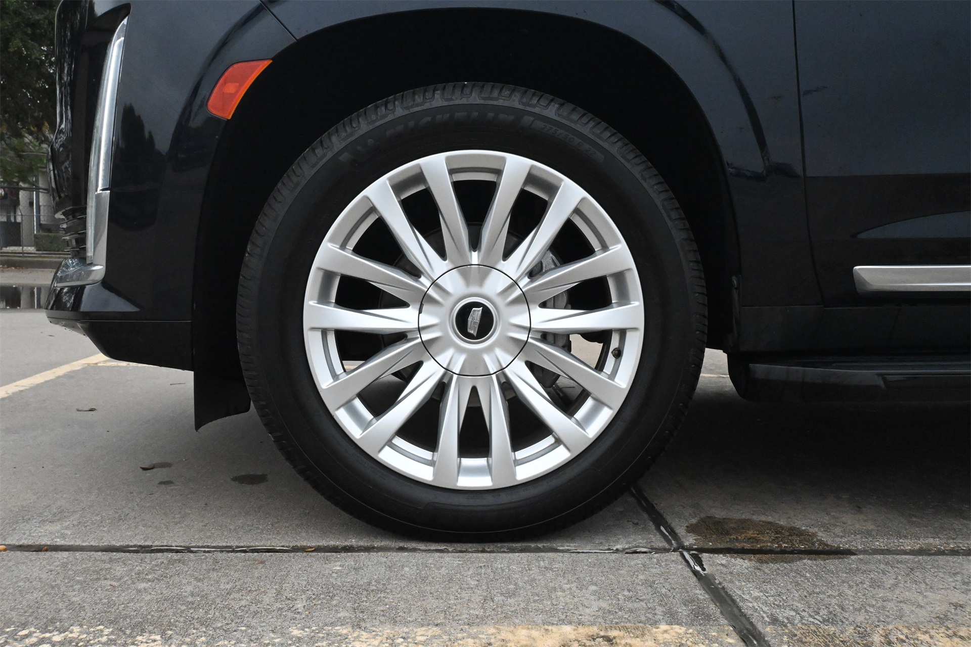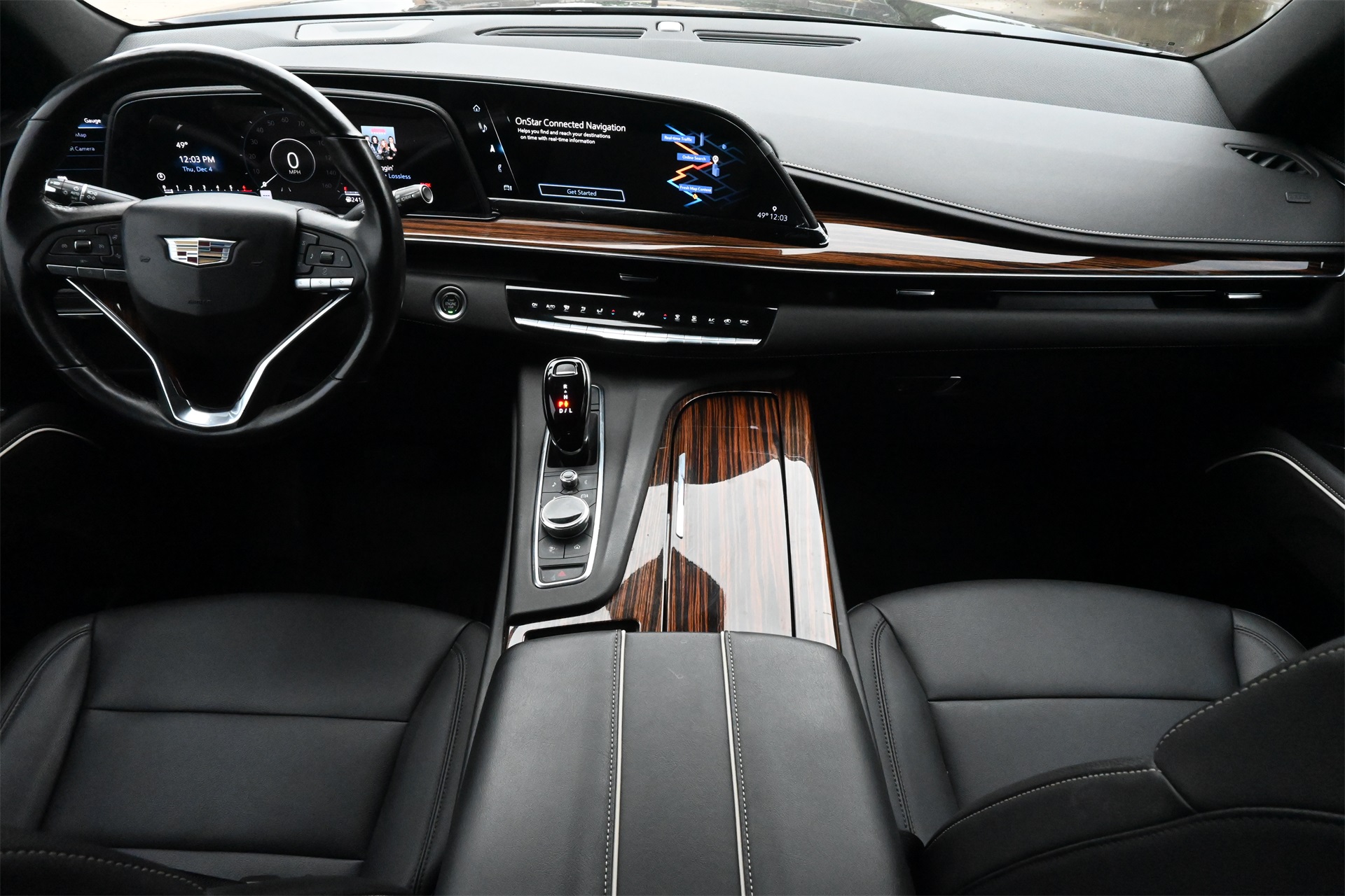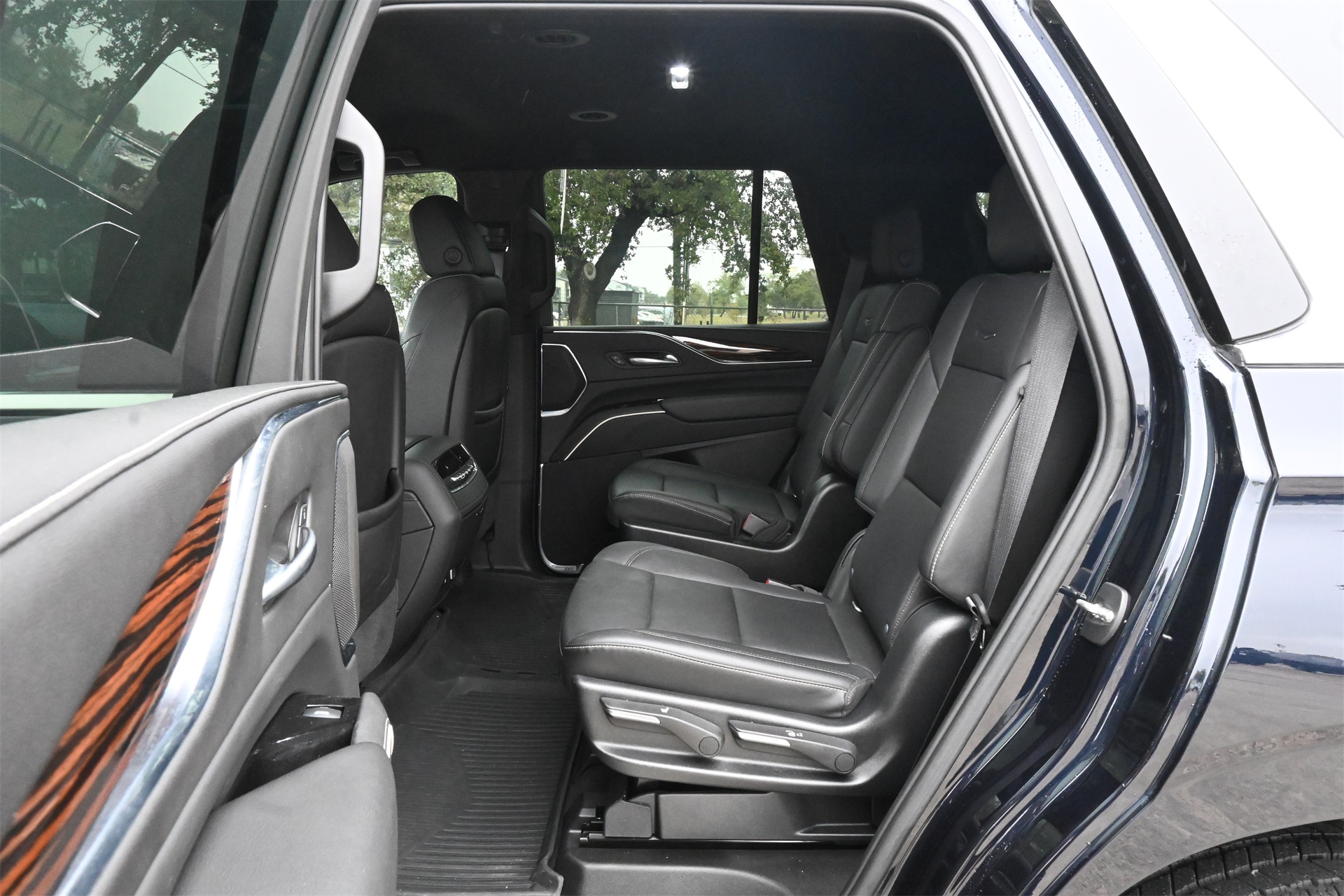 AKG Studio 19-Speaker Audio System, Alloy wheels, AM/FM radio: SiriusXM with 360L, Apple CarPlay/Android Auto, Audio memory, Auto High-beam Headlights, Auto tilt-away steering wheel, Auto-dimming door mirrors, Auto-dimming Rear-View mirror, Automatic temperature control, Brake assist, Bumpers: body-color, Compass, Delay-off headlights, Driver door bin, Driver vanity mirror, Dual front impact airbags, Dual front side impact airbags, Electronic Stability Control, Emergency communication system: OnStar and Cadillac connected services capable, Four wheel independent suspension, Front anti-roll bar, Front Bucket Seats, Front Center Armrest w/Storage, Front dual zone A/C, Front License Plate Bracket, Front reading lights, Fully automatic headlights, Garage door transmitter, HD Radio, Heated door mirrors, Heated Driver & Front Passenger Seats, Heated front seats, Heated rear seats, Heated steering wheel, Illuminated entry, Leather steering wheel, Leatherette Seats, Low tire pressure warning, Memory seat, Navigation System, Not Equipped w/Automatic Stop/Start, Occupant sensing airbag, Outside temperature display, Overhead airbag, Overhead console, Panic alarm, Passenger door bin, Passenger vanity mirror, Power door mirrors, Power driver seat, Power Liftgate, Power passenger seat, Power steering, Power windows, Premium Smooth Ride Suspension, Radio data system, Radio: AM/FM/SiriusXM w/Navigation, Rain sensing wipers, Rear air conditioning, Rear anti-roll bar, Rear reading lights, Rear window defroster, Rear window wiper, Remote keyless entry, Roof rack: rails only, SiriusXM w/360L, Speed control, Split folding rear seat, Spoiler, Steering wheel memory, Steering wheel mounted audio controls, Tachometer, Teen Driver, Telescoping steering wheel, Tilt steering wheel, Traction control, Trip computer, Turn signal indicator mirrors, Variably intermittent wipers, Voltmeter, Wheels: 22" 14-Spoke Alloy w/Bright Silver Finish, and Wireless Apple CarPlay/Wireless Android Auto. Dark Moon Blue Metallic RWD 10-Speed Automatic with Overdrive 6.2L V8 CARFAX 1-Owner, Clean CARFAX!, Non-Smoker, Local Trade, Low Miles, Bluetooth, Apple Carplay / Android Auto, Jet Black Artificial Leather.