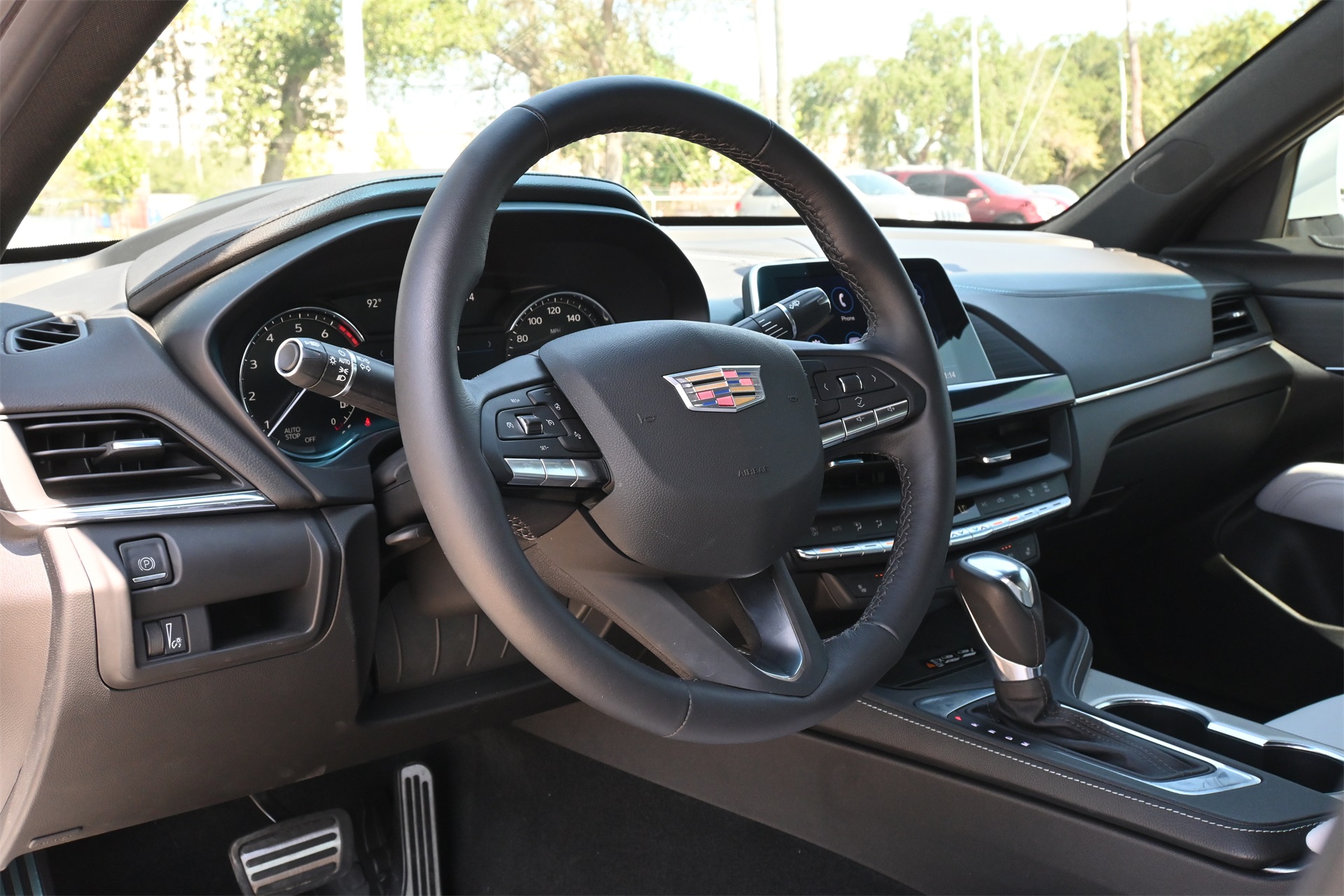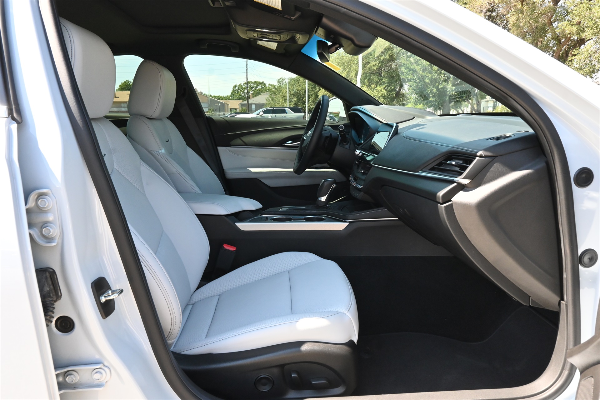 alipers, Leather Seating Surfaces (WFP), Neutral-Density Tail Lamps, and Wheels: 18" Alloy w/Diamond Cut/Midnight Silver Finish), Interior Protection Package (LPO) (All-Weather Cargo Mat (LPO) and All-Weather Floor Mats), Preferred Equipment Group 1SD (4-Wheel Disc Antilock Brakes, Body Color Rocker Moldings, Driver 2-Way Power Lumbar Seat Adjuster, Dual Digital Driver Information Center Display, Front Passenger 2-Way Power Lumbar Seat Adjuster, HD Rear Vision Camera, Leather-Wrapped Steering Wheel, LED Reflective Windshield Alert, and Steering Wheel Mounted Paddle Shift Controls), Cadillac Certified Pre-Owned Certified, 4-Wheel Disc Brakes, 8 Speakers, ABS brakes, Air Conditioning, Alloy wheels, AM/FM radio: SiriusXM, Anti-whiplash front head restraints, Apple CarPlay/Android Auto, Auto High-beam Headlights, Auto-dimming door mirrors, Auto-dimming Rear-View mirror, Automatic Stop/Start w/Disable, Automatic temperature control, Brake assist, Bumpers: body-color, Chrome Wheel Locks (LPO), Compass, Delay-off headlights, Driver door bin, Driver vanity mirror, Dual front impact airbags, Dual front side impact airbags, Electronic Stability Control, Emergency communication system: OnStar and Cadillac connected services capable, Exterior Parking Camera Rear, Four wheel independent suspension, Front anti-roll bar, Front Bucket Seats, Front Center Armrest, Front dual zone A/C, Front License Plate Bracket, Front reading lights, Fully automatic headlights, Garage door transmitter, HD Radio, Heated door mirrors, Illuminated entry, Knee airbag, Leather Seating Surfaces, Leather Shift Knob, Leather steering wheel, Low tire pressure warning, Memory seat, Memory Settings, Not Equipped w/Fr & Rr Pk Assist/Rev Auto Braking, Not Equipped w/Heated Steering Wheel (DISC), Occupant sensing airbag, Outside temperature display, Overhead airbag, Overhead console, Panic alarm, Passenger door bin, Passenger vanity mirror, Power door mirrors, Power driver seat, Power passenger seat, Power steering, Power Sunroof w/Express-Open & Venting, Power windows, Premium 8-Speaker Audio System Feature, Radio data system, Radio: Cadillac User Experience, Rain sensing wipers, Rear anti-roll bar, Rear reading lights, Rear seat center armrest, Rear window defroster, Remote keyless entry, SiriusXM w/360L, Speed control, Speed-sensing steering, Split folding rear seat, Steering wheel mounted audio controls, Tachometer, Telescoping steering wheel, Tilt steering wheel, Traction control, Trip computer, Turn signal indicator mirrors, Variably intermittent wipers, Voltmeter, and Wheels: 18" Alloy w/Sterling Silver Finish. Diamond Sky Metallic RWD 8-Speed Automatic 2.0L Turbocharged Non-Smoker, Local Trade, Low Miles, Bluetooth, Apple Carplay / Android Auto, Heated Seats, Cooled Seats.