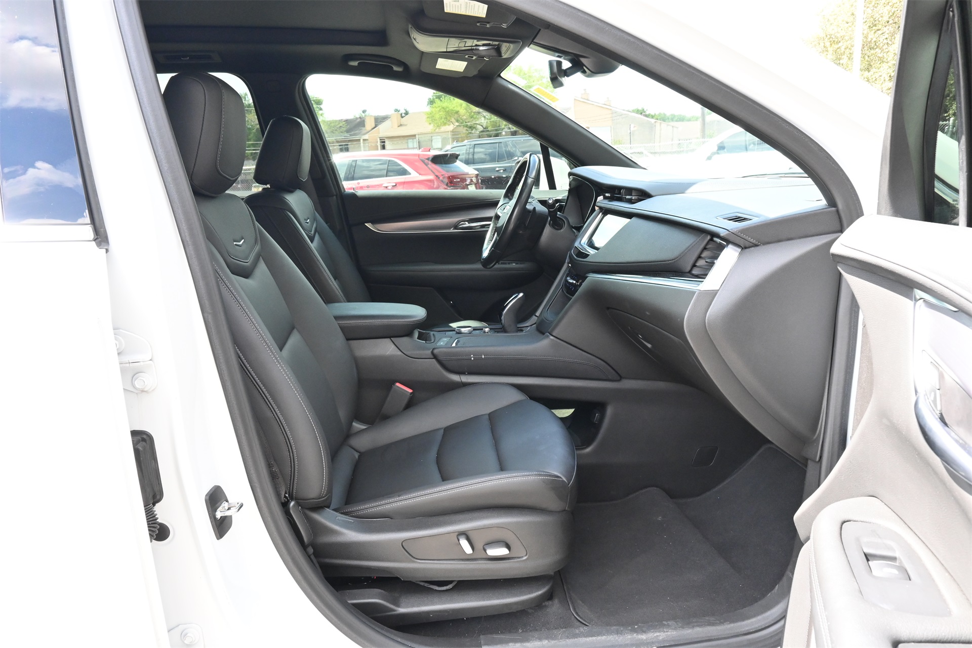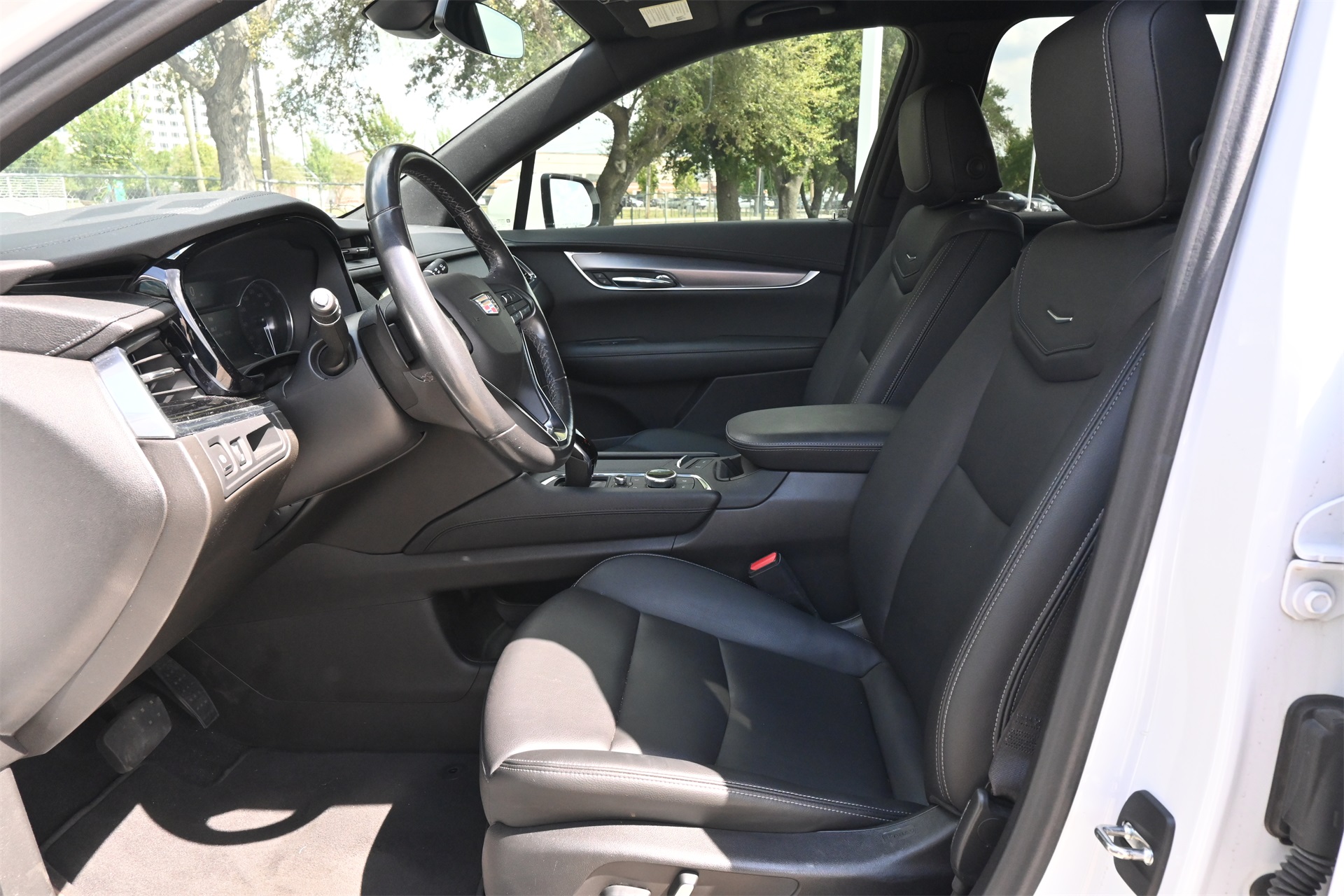sist, Bumpers: body-color, Compass, Delay-off headlights, Driver & Front Passenger Heated Seats, Driver door bin, Driver vanity mirror, Dual front impact airbags, Dual front side impact airbags, Electronic Stability Control, Emergency communication system: OnStar and Cadillac connected services capable, Four wheel independent suspension, Front anti-roll bar, Front Bucket Seats, Front Center Armrest, Front dual zone A/C, Front License Plate Bracket, Front reading lights, Fully automatic headlights, Garage door transmitter, Heated door mirrors, Heated front seats, Illuminated entry, Inteluxe Seating Surfaces, Knee airbag, Leather steering wheel, Low tire pressure warning, Memory seat, Not Equipped w/Front & Rear Park Assist, Occupant sensing airbag, Outside temperature display, Overhead airbag, Overhead console, Panic alarm, Passenger door bin, Passenger vanity mirror, Power door mirrors, Power driver seat, Power Liftgate, Power moonroof: UltraView, Power passenger seat, Power steering, Power windows, Radio data system, Radio: Cadillac User Experience AM/FM Stereo, Rear air conditioning, Rear anti-roll bar, Rear reading lights, Rear seat center armrest, Rear window defroster, Rear window wiper, Remote keyless entry, Ride & Handling Suspension, Roof rack: rails only, SiriusXM w/360L, Speed control, Speed-sensing steering, Split folding rear seat, Spoiler, Steering wheel mounted audio controls, Tachometer, Telescoping steering wheel, Tilt steering wheel, Traction control, Trip computer, Turn signal indicator mirrors, Variably intermittent wipers, Voltmeter, Wheel Locks, and Wireless Apple CarPlay/Wireless Android Auto. Crystal White Tricoat FWD 9-Speed Automatic 2.0L Turbocharged CARFAX 1-Owner, Local Trade, Low Miles, Bluetooth, Apple Carplay / Android Auto.