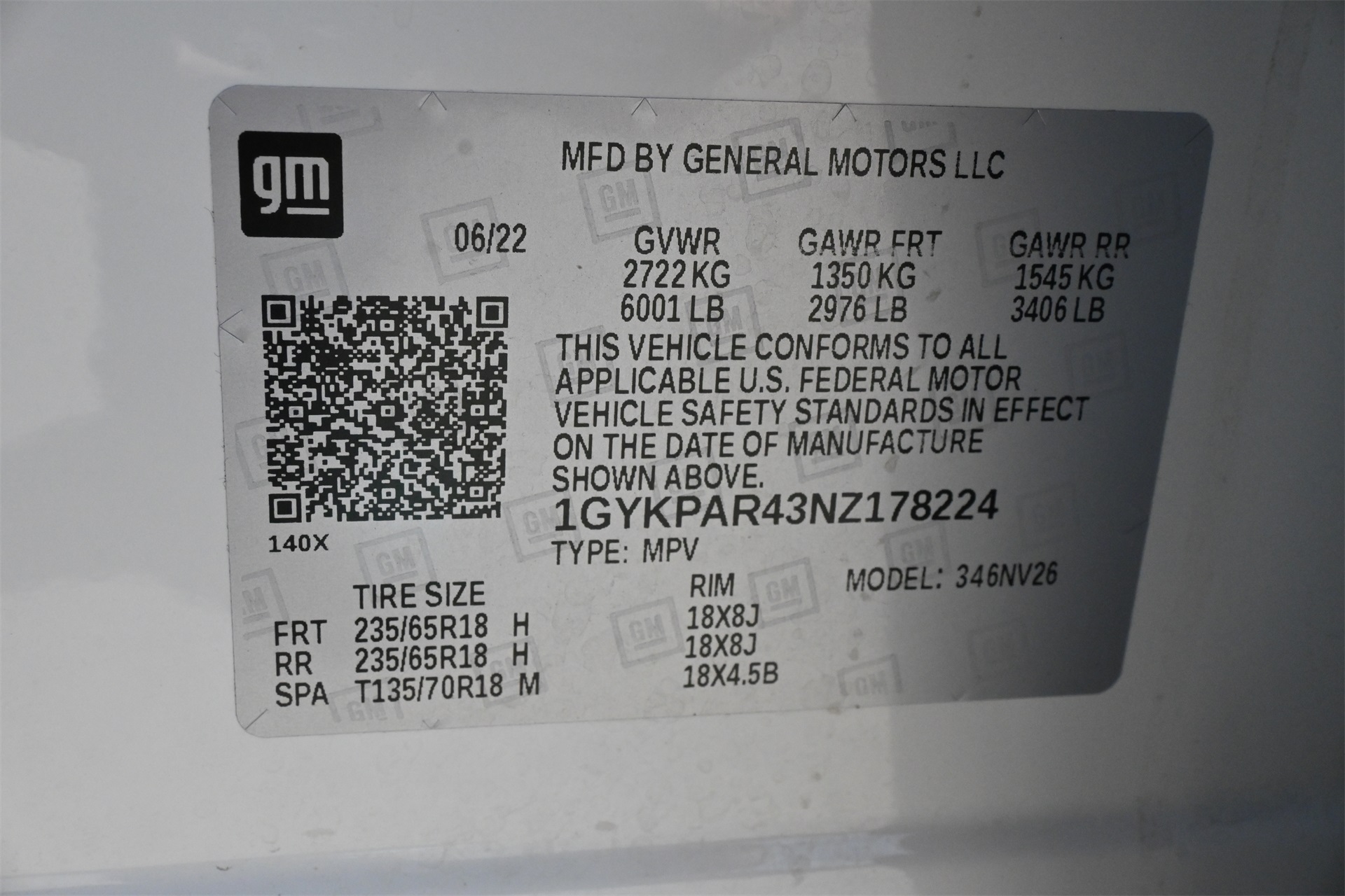 1GYKPAR43NZ178224Stock #