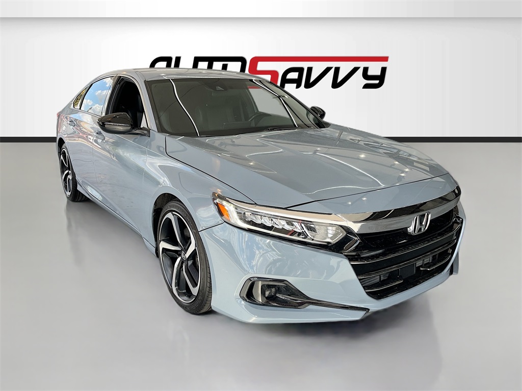 Explore the dynamic 2022 Honda Accord Sport 1.5T CVT, now available at AutoSavvy Houston Southwest. This sophisticated sedan, finished in a striking Sonic Gray Pearl, is powered by a turbocharged 1.5L I-4 engine, delivering an impressive 192 horsepower. With a fuel efficiency of 35 MPG on the highway and 29 MPG in the city, this Accord is perfect for both daily commutes and long drives. Despite being pre-owned, it boasts a moderate mileage of just 42,289 miles, ensuring many more miles of drivin