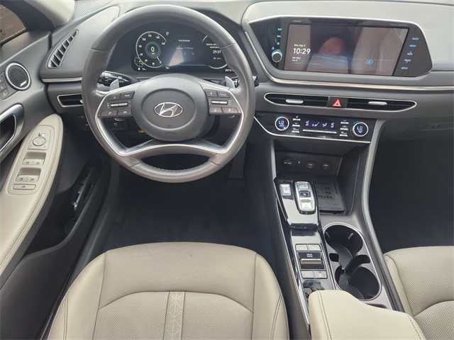 Portofino Gray 2023 Hyundai Sonata Limited FWD 8-Speed Automatic with SHIFTRONIC I4 CARFAX 1 OWNER, Sonata Limited, Air Conditioning, AM/FM radio: SiriusXM, Four wheel independent suspension, Heads-Up Display, Memory seat, Navigation System, Option Group 01, Power driver seat, Power steering, Power windows, Radio: AM/FM/MP3/HD/SiriusXM Display Audio w/Nav, Rear window defroster, Remote keyless entry, Speed-sensing steering, Steering wheel mounted audio controls, Traction control.