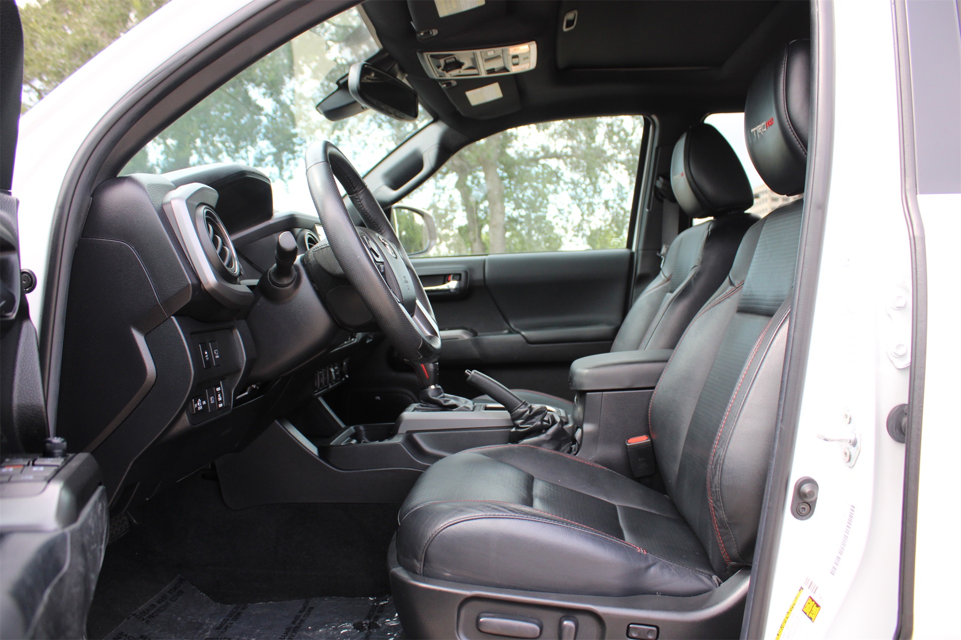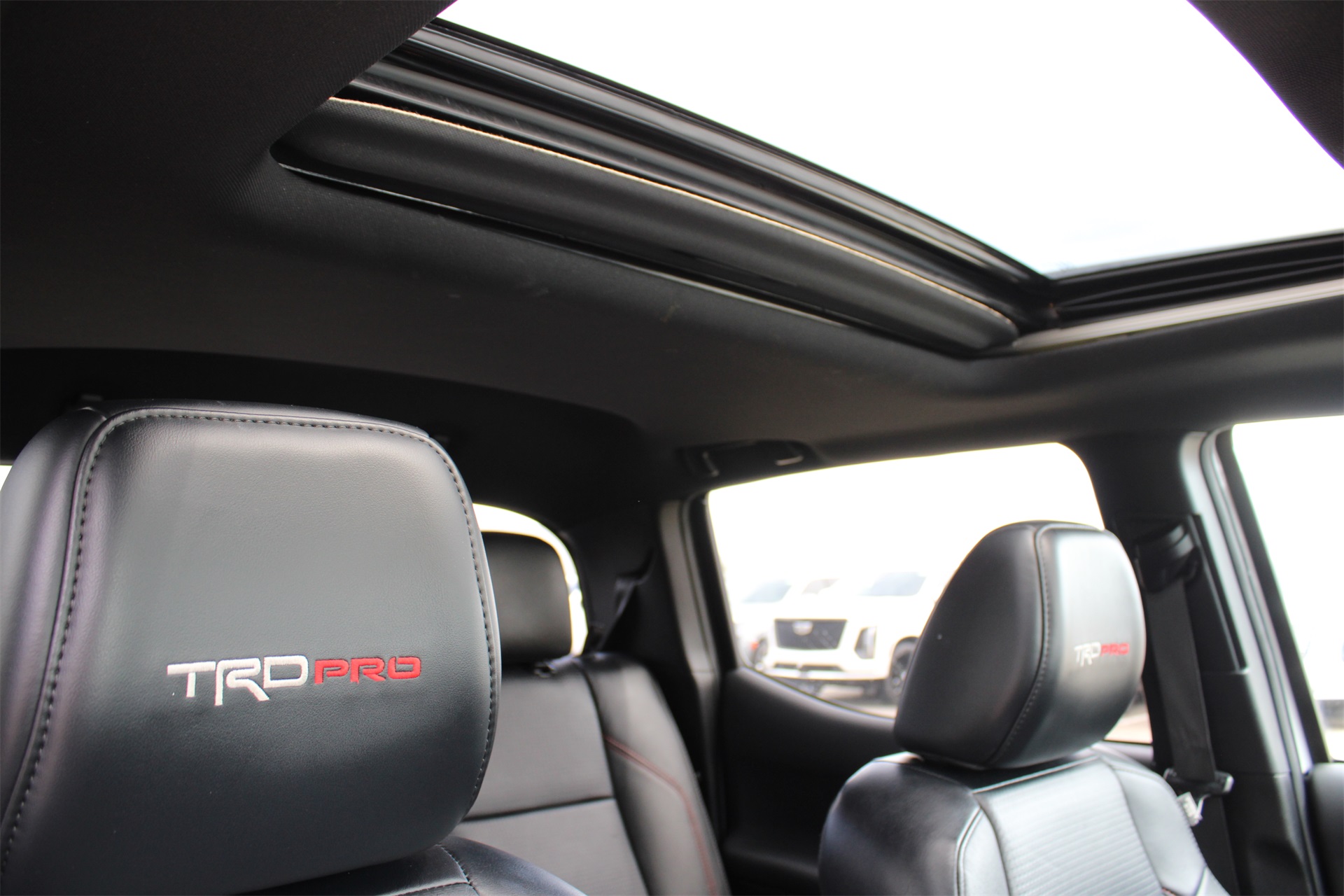 ist, Bumpers: body-color, Driver door bin, Dual front impact airbags, Dual front side impact airbags, Electronic Stability Control, Emergency communication system: Safety Connect (1-year trial), Engine Immobilizer, Exterior Parking Camera Rear, Front anti-roll bar, Front Bucket Seats, Front Center Armrest, Front Door Smart Key System w/Push Button Start, Front dual zone A/C, Front fog lights, Front Heated Seats, Front reading lights, Front wheel independent suspension, Fully automatic headlights, Garage door transmitter: HomeLink, Heated door mirrors, Heated front seats, Heritage Grille, Hood Graphics, Illuminated entry, Knee airbag, Leather Shift Knob, Low tire pressure warning, Multi Terrain Monitor w/Camera, Navigation System, Occupant sensing airbag, Outside temperature display, Overhead airbag, Overhead console, Panic alarm, Passenger door bin, Power door mirrors, Power driver seat, Power moonroof, Power Sliding Rear Window w/Privacy Glass, Power steering, Power windows, Radio: Premium JBL Audio w/Dynamic Navigation, Rear Parking Assist Sonar, Rear Parking Sensors, Rear step bumper, Remote keyless entry, Rigid Industries LED Fog Lights, Security system, Speed control, Speed-sensing steering, Split folding rear seat, Steering wheel mounted audio controls, Tachometer, Telescoping steering wheel, Tilt steering wheel, Traction control, TRD Pro Cat-Back Exhaust, TRD Pro Exterior Badging, TRD Pro Floor Mats, TRD Pro Headlamps, TRD Pro Leather Seat Trim, TRD Pro Shift Knob, TRD-Tuned Off-Road Suspension, Trip computer, Turn signal indicator mirrors, Variably intermittent wipers, and Wheels: 16" TRD Pro Black Alloy. White 4WD 6-Speed Automatic 3.5L V6 CARFAX 1-Owner, Clean CARFAX!, Bluetooth, Apple Carplay / Android Auto, Heated Seats, 4WD.