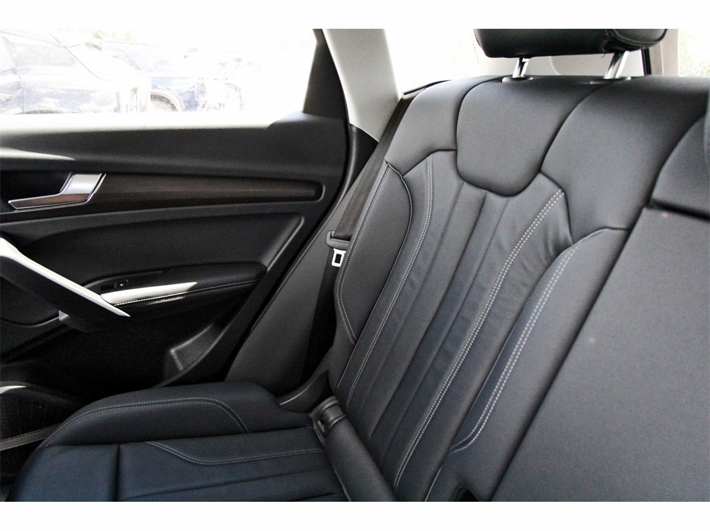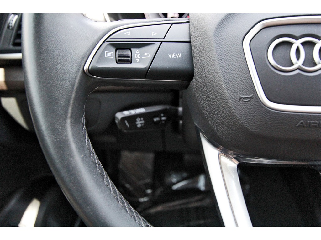 ual front impact airbags, Dual front side impact airbags, Electronic Stability Control, Emergency communication system: Audi connect CARE, Exterior Parking Camera Rear, Four wheel independent suspension, Front anti-roll bar, Front Bucket Seats, Front Center Armrest, Front dual zone A/C, Front fog lights, Front reading lights, Garage door transmitter: HomeLink, Genuine wood console insert, Genuine wood dashboard insert, Genuine wood door panel insert, Heated 8-Way Power Front Bucket Seats, Heated door mirrors, Heated front seats, Heated steering wheel, Illuminated entry, Leather Seating Surfaces, Leather Shift Knob, Leather steering wheel, Low tire pressure warning, Occupant sensing airbag, Outside temperature display, Overhead airbag, Overhead console, Panic alarm, Passenger door bin, Passenger vanity mirror, Power door mirrors, Power driver seat, Power Liftgate, Power passenger seat, Power steering, Power windows, Radio data system, Radio: Audi Sound System, Rain sensing wipers, Rear air conditioning, Rear anti-roll bar, Rear fog lights, Rear reading lights, Rear seat center armrest, Rear window defroster, Rear window wiper, Remote keyless entry, Roof rack, Security system, Speed control, Speed-sensing steering, Speed-Sensitive Wipers, Split folding rear seat, Spoiler, Steering wheel mounted audio controls, Tachometer, Telescoping steering wheel, Tilt steering wheel, Traction control, Trip computer, Turn signal indicator mirrors, Variably intermittent wipers, and Wheels: 18" 5-Arm-Turbine Design!!