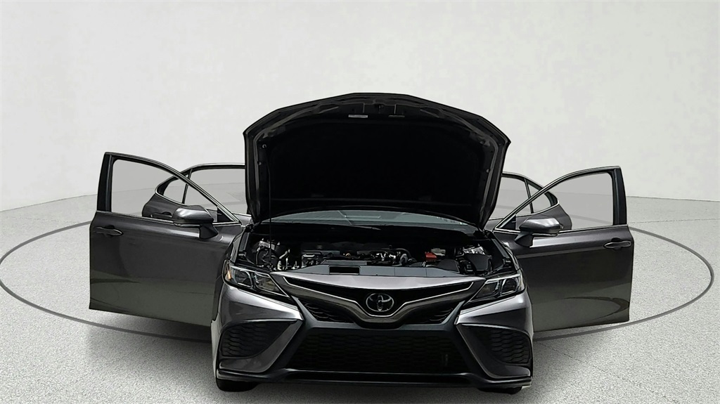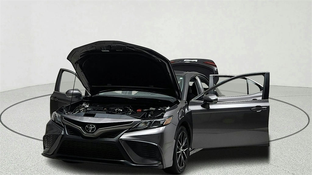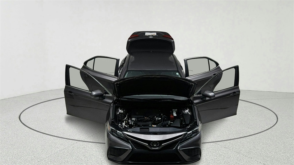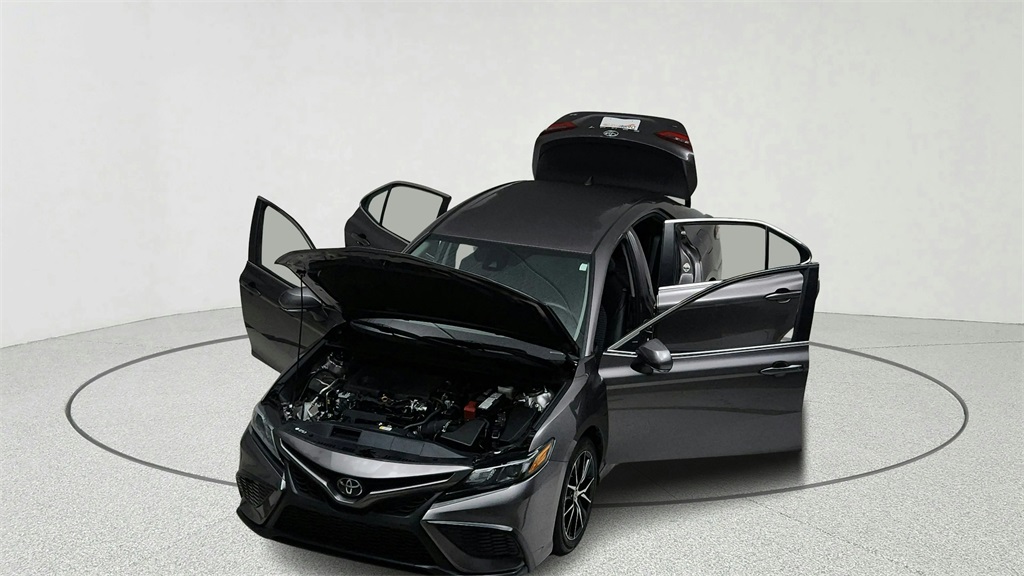 Predawn Gray Mica 2024 Toyota Camry SE FWD 8-Speed Automatic 2.5L I4 DOHC 16V Black w/Silver Performance w/Sport SofTex Seat Trim w/Fabric Inserts.