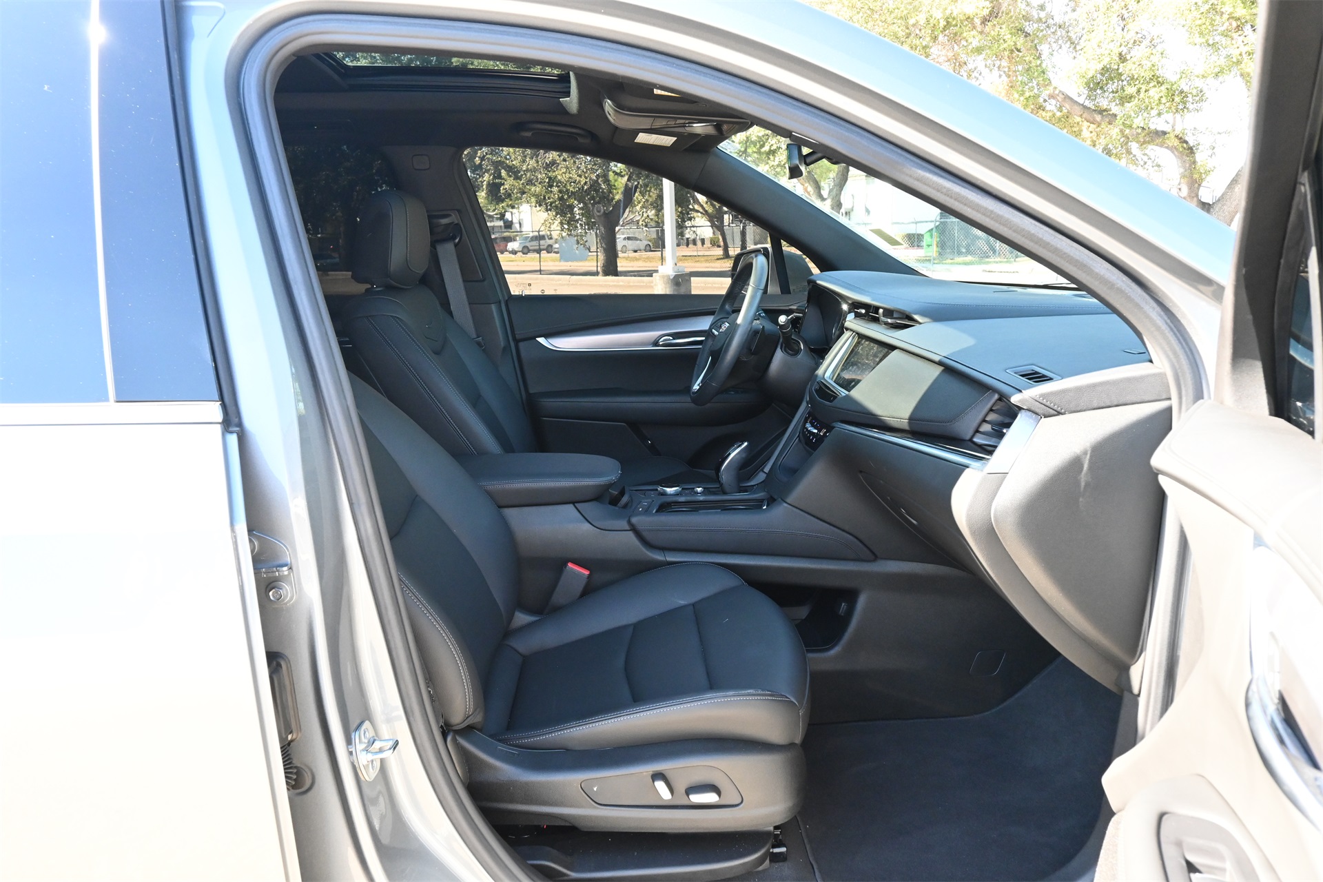 w/Disable, Automatic temperature control, Bose Premium 8-Speaker Audio System, Brake assist, Bumpers: body-color, Compass, Delay-off headlights, Driver & Front Passenger Heated Seats, Driver door bin, Driver vanity mirror, Dual front impact airbags, Dual front side impact airbags, Electronic Stability Control, Emergency communication system: OnStar and Cadillac connected services capable, Four wheel independent suspension, Front anti-roll bar, Front Bucket Seats, Front Center Armrest, Front dual zone A/C, Front License Plate Bracket, Front reading lights, Fully automatic headlights, Garage door transmitter, Heated door mirrors, Heated front seats, Illuminated entry, Inteluxe Seating Surfaces, Knee airbag, Leather steering wheel, Low tire pressure warning, Memory seat, Occupant sensing airbag, Outside temperature display, Overhead airbag, Overhead console, Panic alarm, Passenger door bin, Passenger vanity mirror, Power door mirrors, Power driver seat, Power Liftgate, Power moonroof: UltraView, Power passenger seat, Power steering, Power windows, Radio data system, Radio: Cadillac User Experience AM/FM Stereo, Rear air conditioning, Rear anti-roll bar, Rear reading lights, Rear seat center armrest, Rear window defroster, Rear window wiper, Remote keyless entry, Ride & Handling Suspension, SiriusXM w/360L, Speed control, Speed-sensing steering, Split folding rear seat, Spoiler, Steering wheel mounted audio controls, Tachometer, Telescoping steering wheel, Tilt steering wheel, Traction control, Trip computer, Turn signal indicator mirrors, Variably intermittent wipers, Voltmeter, and Wireless Apple CarPlay/Wireless Android Auto. Argent Silver Metallic FWD 9-Speed Automatic 2.0L Turbocharged CARFAX 1-Owner, Clean CARFAX!, Non-Smoker, Local Trade, Low Miles, Bluetooth, Apple Carplay / Android Auto.
