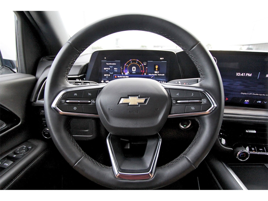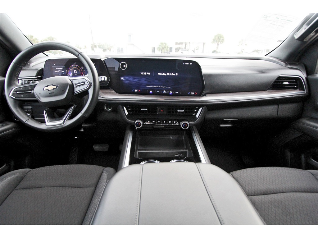 tal Driver & Outboard Passenger Airbags, Remote Start, SiriusXM w/360L Trial Subscription, and USB Ports), 4WD, Jet Black Cloth, 2-Way Power Driver Lumbar Seat Adjuster, 2-Way Power Front Passenger Lumbar Seat Adjuster, 3.23 Rear Axle Ratio, 3rd row seats: split-bench, 4-Wheel Disc Brakes, 6 Speakers, 6-Speaker Audio System Feature, 6-Way Power Front Passenger Seat Adjuster, 8-Way Power Driver Seat Adjuster, ABS brakes, Air Conditioning, Alloy wheels, AM/FM radio: SiriusXM with 360L, Apple CarPlay/Android Auto, Auto High-beam Headlights, Automatic temperature control, Brake assist, Bumpers: body-color, Compass, Delay-off headlights, Driver door bin, Driver vanity mirror, Dual front impact airbags, Dual front side impact airbags, Electronic Stability Control, Emergency communication system: OnStar and Chevrolet connected services capable, Exterior Parking Camera Rear, Four wheel independent suspension, Front anti-roll bar, Front Bucket Seats, Front Center Armrest, Front dual zone A/C, Front reading lights, Fully automatic headlights, Heated door mirrors, Illuminated entry, Low tire pressure warning, Navigation system: Google built-in compatibility (select service plan required, terms and limitations apply), Occupant sensing airbag, Outside temperature display, Overhead airbag, Overhead console, Panic alarm, Passenger door bin, Passenger vanity mirror, Power door mirrors, Power driver seat, Power passenger seat, Power steering, Power windows, Premium audio system: Chevrolet Infotainment 3, Premium Cloth Seat Trim, Premium Smooth Ride Suspension, Radio data system, Radio: 17.7" Diagonal Advanced Color LCD Display, Rain sensing wipers, Rear air conditioning, Rear anti-roll bar, Rear reading lights, Rear seat center armrest, Rear window defroster, Rear window wiper, Remote keyless entry, Security system, Set of 4 Wheel Locks (LPO), Speed control, Speed-sensing steering, Split folding rear seat, Spoiler, Steering wheel mounted audio controls, Tachometer, Telescoping steering wheel, Tilt steering wheel, Traction control, Trip computer, Variably intermittent wipers, Voltmeter, Wheels: 18" x 8.5" Bright Silver Painted Aluminum, and Wheels: 20" x 9" Machined Aluminum!!