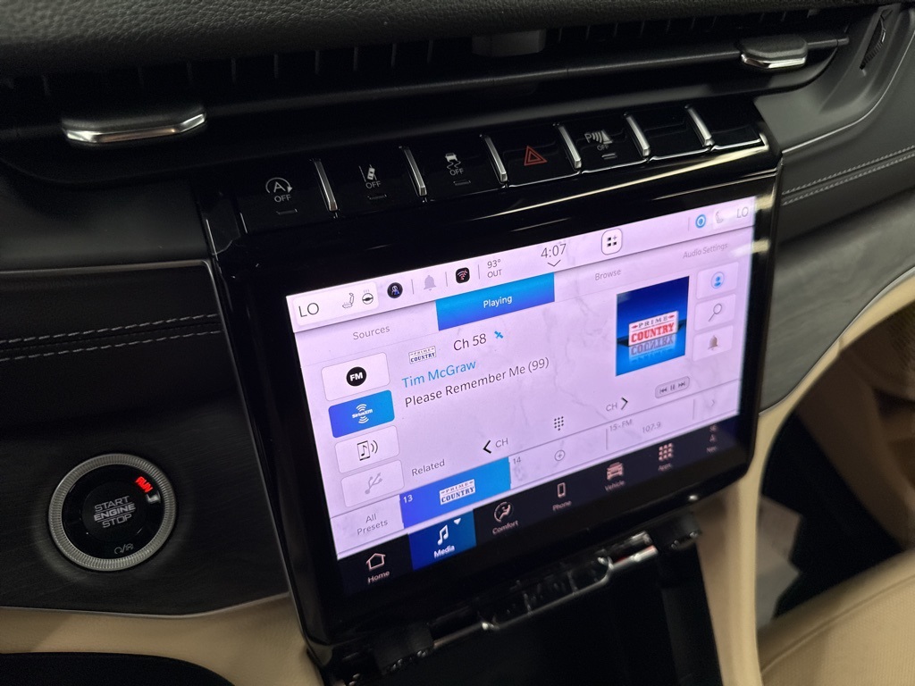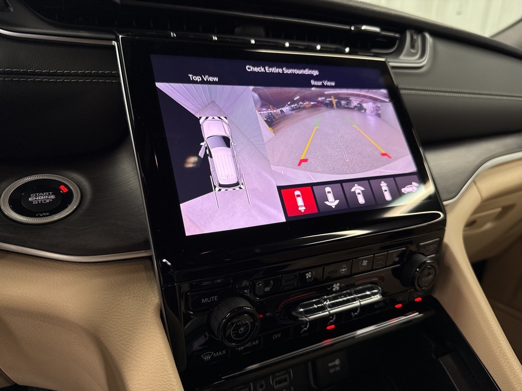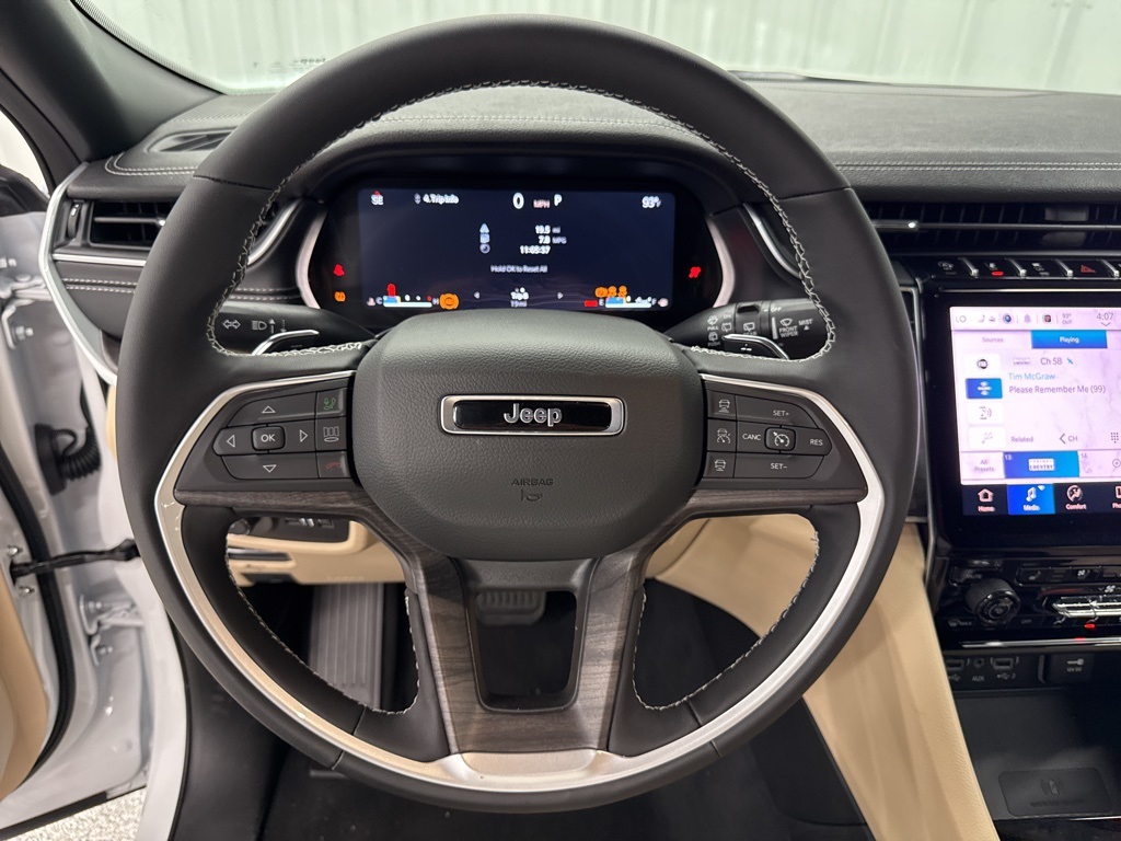 al Window Shades, Auto-Dimming Exterior Driver Mirror, Capri Leatherette with Axis II Seats, Integrated Off-Road Camera, Intersection Collision Assist System, Memory Steering Column, ParkSense Front/Rear Park Assist with Stop, Passive Entry - Front/Rear Doors, Liftgate, Power Tilt/Telescope Steering Column, Rain Sensitive Windshield Wipers, Rear Back Up Camera Washer, Rearview Autodim Digital Display Mirror, Surround View Camera System, Ventilated Front Seats, and Wireless Charging Pad), Quick Order Package 22E, 3.45 Rear Axle Ratio, 3rd row seats: split-bench, 4-Wheel Disc Brakes, 6 Speakers, ABS brakes, Active Noise Control System, Air Conditioning, Alloy wheels, AM/FM radio: SiriusXM with 360L, Anti-whiplash front head restraints, Audio memory, Auto High-beam Headlights, Automatic temperature control, Brake assist, Bumpers: body-color, Capri Leatherette Seats, Compass, Delay-off headlights, Driver door bin, Driver vanity mirror, Dual front impact airbags, Dual front side impact airbags, Dual-Pane Panoramic Sunroof, Electronic Stability Control, Emergency communication system, Four wheel independent suspension, Front anti-roll bar, Front Bucket Seats, Front Center Armrest w/Storage, Front dual zone A/C, Front fog lights, Front License Plate Bracket, Front reading lights, Fully automatic headlights, Garage door transmitter, Heated door mirrors, Heated front seats, Heated rear seats, Heated steering wheel, Illuminated entry, Interior Rear Facing Camera, Knee airbag, Low tire pressure warning, Manual Fold Seatbacks, Memory seat, Model Year Tracking, Navigation System, Normal Duty Suspension, Occupant sensing airbag, Outside temperature display, Overhead airbag, Overhead console, Panic alarm, ParkView Rear Back-Up Camera, Passenger door bin, Passenger vanity mirror, Power door mirrors, Power driver seat, Power Liftgate, Power passenger seat, Power steering, Power windows, Radio data system, Radio: Uconnect 5 Nav with 10.1" Display, Rear air conditioning, Rear anti-roll bar, Rear reading lights, Rear window defroster, Rear window wiper, Reclining 3rd row seat, Remote keyless entry, Security system, Speed control, Speed-Sensitive Wipers, Split folding rear seat, Spoiler, Steering wheel mounted audio controls, Tachometer, Telescoping steering wheel, Tilt steering wheel, Traction control, Trip computer, Turn signal indicator mirrors, Variably intermittent wipers, Voltmeter, and Wheels: 18" x 8.0" Polished/Painted Aluminum.
