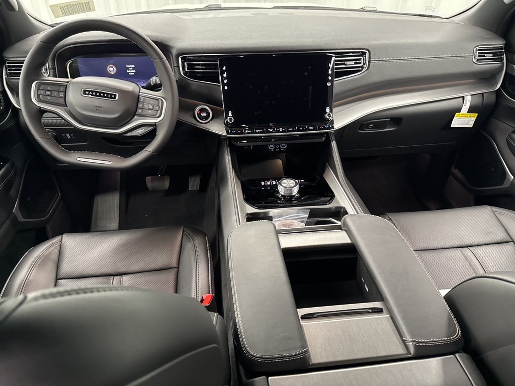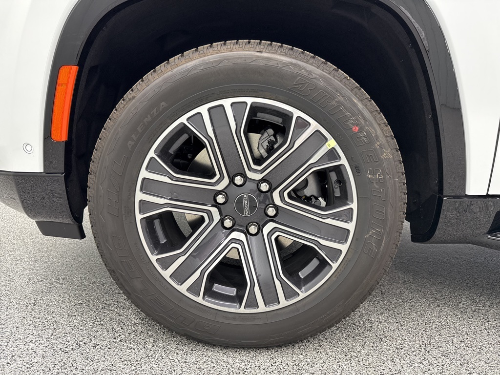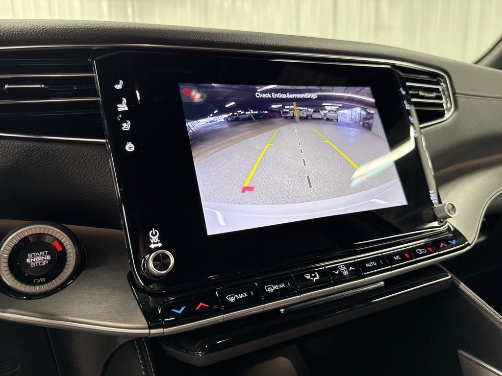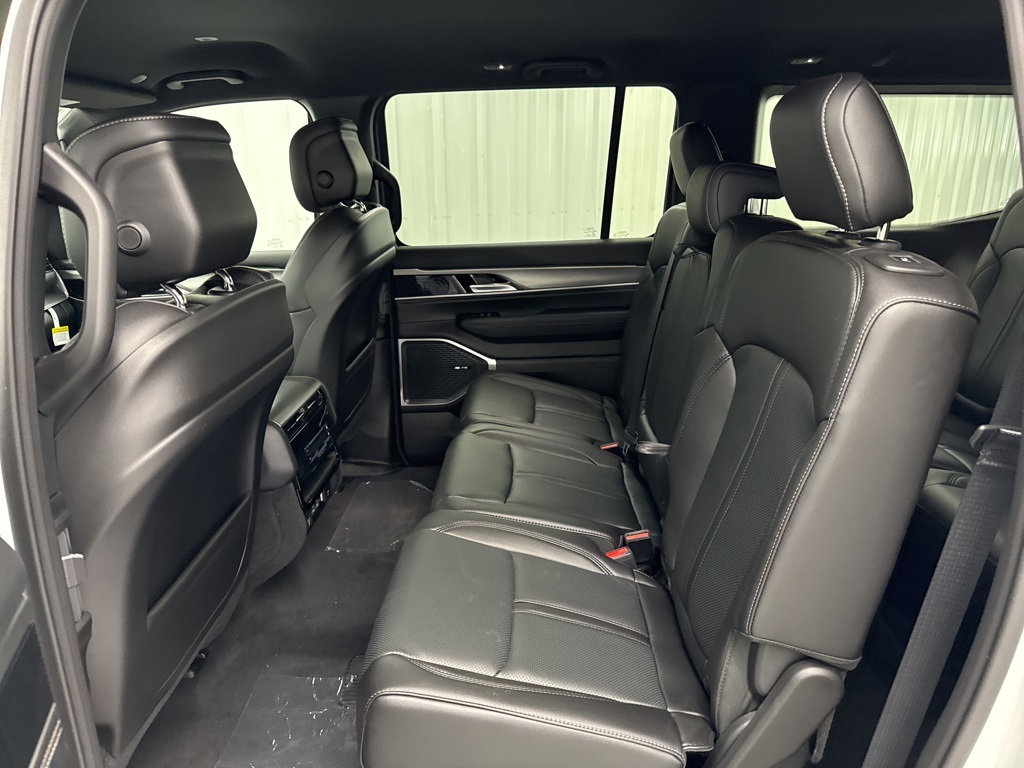 d Calibration, 3.55 Rear Axle Ratio, 3rd row seats: bench, 4-Wheel Disc Brakes, ABS brakes, Air Conditioning, Alloy wheels, AM/FM radio: SiriusXM with 360L, Anti-whiplash front head restraints, Apple CarPlay/Android Auto, Audio memory, Auto Adjust In Reverse Exterior Mirrors, Auto-dimming door mirrors, Auto-Dimming Exterior Driver Mirror, Auto-dimming Rear-View mirror, Auto-leveling suspension, Automatic temperature control, Brake assist, Bumpers: body-color, Compass, Delay-off headlights, Driver door bin, Driver vanity mirror, Driver's Seat Mounted Armrest, Dual front impact airbags, Dual front side impact airbags, Electronic Stability Control, Emergency communication system: Jeep Connect, Exterior Mirrors Approach Lamps, Exterior Mirrors w/Memory, Exterior Mirrors w/Supplemental Signals, Four wheel independent suspension, Front anti-roll bar, Front Bucket Seats, Front Center Armrest w/Storage, Front dual zone A/C, Front fog lights, Front License Plate Bracket, Front reading lights, Fully automatic headlights, Garage door transmitter, Heated door mirrors, Heated Exterior Mirrors, Heated front seats, Heated steering wheel, Illuminated entry, Knee airbag, Leather Trimmed Bucket Seats, Low tire pressure warning, Memory seat, Navigation System, Normal Duty Suspension, Occupant sensing airbag, Outside temperature display, Overhead airbag, Overhead console, Panic alarm, ParkView Rear Back-Up Camera, Passenger door bin, Passenger seat mounted armrest, Passenger vanity mirror, Power adjustable front head restraints, Power door mirrors, Power driver seat, Power Liftgate, Power passenger seat, Power steering, Power windows, Radio data system, Radio: Uconnect 5 Nav w/10.1" Display, Rear air conditioning, Rear anti-roll bar, Rear dual zone A/C, Rear reading lights, Rear seat center armrest, Rear window defroster, Rear window wiper, Reclining 3rd row seat, Remote keyless entry, Security system, Speed control, Speed-sensing steering, Speed-Sensitive Wipers, Split folding rear seat, Steering wheel memory, Steering wheel mounted audio controls, Tachometer, Telescoping steering wheel, Tilt steering wheel, Traction control, Trip computer, Turn signal indicator mirrors, Variably intermittent wipers, Ventilated front seats, Voltmeter, and Wheels: 20" x 9.0" Premium 2 Aluminum.