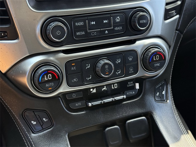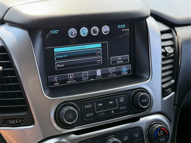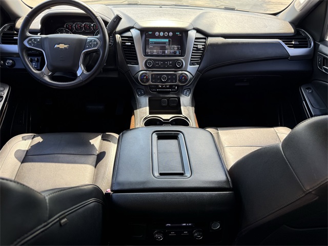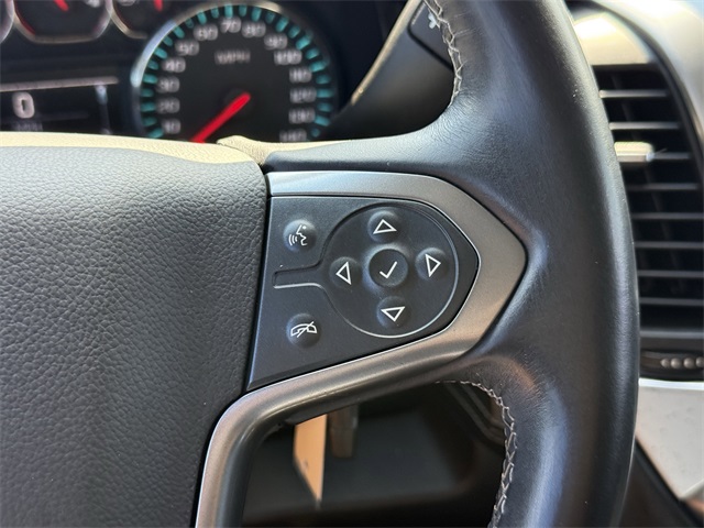 , Auto-Dimming Inside Rear-View Mirror, Automatic temperature control, Black Assist Steps, Bose Premium 9-Speaker System, Brake assist, Bumpers: body-color, Color-Keyed Carpeting Floor Covering, Delay-off headlights, Driver Inboard & Front Passenger Airbags, Driver vanity mirror, Dual front impact airbags, Dual front side impact airbags, Electronic Cruise Control w/Set & Resume Speed, Electronic Stability Control, Emergency communication system: OnStar, Enhanced Driver Instrument Information Display, Extended-Range Remote Keyless Entry, Exterior Parking Camera Rear, Floor Console, Forward Collision Alert Sensor Indicator, Front anti-roll bar, Front Bucket Seats, Front Center Armrest, Front dual zone A/C, Front Heated Reclining Bucket Seats, Front reading lights, Front wheel independent suspension, Fully automatic headlights, Garage door transmitter, Heated door mirrors, Heated front seats, Illuminated entry, Integrated Trailer Brake Controller, IntelliBeam Headlamps, Lane Departure Warning System, Lane Keep Assist, Leather-Appointed Seat Trim, Leather-Wrapped Steering Wheel, License Plate Front Mounting Package, Low tire pressure warning, Max Trailering Package, Memory seat, Memory Settings, Occupant sensing airbag, OnStar Basic Plan For 5 Years, Overhead airbag, Overhead console, Panic alarm, Pedal memory, Power door mirrors, Power driver seat, Power Liftgate, Power passenger seat, Power Sunroof, Power-Adjustable Accelerator & Brake Pedals, Preferred Equipment Group 1LT, Premium audio system: Chevrolet MyLink, Premium Smooth Ride Suspension Package, Radio: Chevrolet MyLink AM/FM Stereo, Radio: Chevrolet MyLink w/Navigation/AM/FM Stereo, Rain sensing wipers, Rear anti-roll bar, Rear Park Assist w/Audible Warning, Rear reading lights, Rear seat center armrest, Remote keyless entry, Roof-Mounted Luggage Rack Side Rails, Safety Alert Driver Seat, Security system, Single-Slot CD/MP3 Player, SiriusXM Satellite Radio, Speed control, Speed-sensing steering, Split folding rear seat, Spoiler, Standard Suspension Package, Steering wheel mounted audio controls, Telescoping steering wheel, Tilt steering wheel, Traction control, Unauthorized Entry Electrical Theft Deterrent Sys., Universal Home Remote, Variably intermittent wipers, Wheels: 20" x 9" Polished-Aluminum.