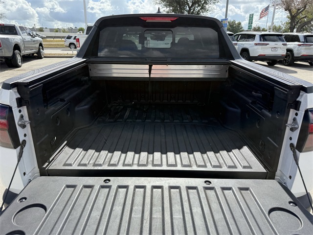 ghts, Driver vanity mirror, Dual C-Channel Utility Tracks on Bed Side, Dual front impact airbags, Dual front side impact airbags, Electronic Stability Control, Emergency communication system: Blue Link Connected Car Service (3-year complimentary subscription), Exterior Parking Camera Rear, Four wheel independent suspension, Front anti-roll bar, Front Bucket Seats, Front Center Armrest, Front reading lights, Fully automatic headlights, Heated door mirrors, Heated Front Bucket Seats, Heated front seats, Illuminated entry, Integrated Tonneau Cover, LED Bed Lighting, LED Front & Rear Map Lights, Low tire pressure warning, Occupant sensing airbag, Option Group 02, Outside temperature display, Overhead airbag, Overhead console, Panic alarm, Passenger door bin, Power door mirrors, Power driver seat, Radio: AM/FM Audio System, Rear anti-roll bar, Rear Sliding Glass Window w/Rear Defroster, Rear step bumper, Remote keyless entry, Roof Side Rails, Security system, Speed control, Speed-sensing steering, Split folding rear seat, Spoiler, Stain & Odor Resistant Cloth Seat Trim, Steering wheel mounted audio controls, Telescoping steering wheel, Tow Hitch, Traction control, Variably intermittent wipers, Wireless Phone Charger.