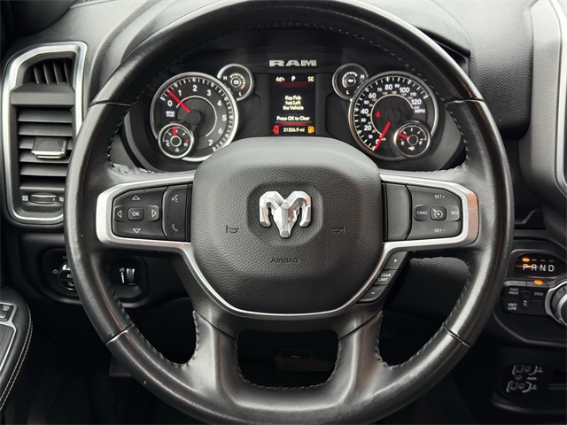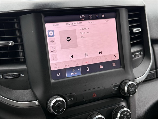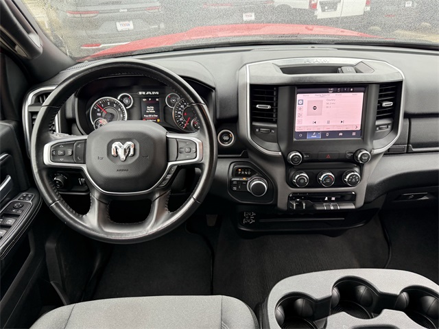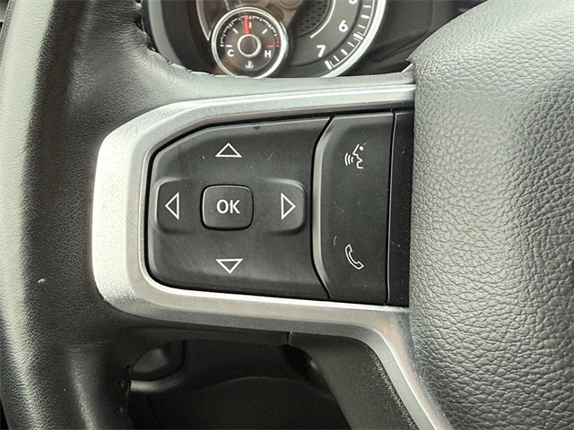 loth 40/20/40 Bench Seat, Connectivity - US/Canada, Delay-off headlights, Dual front impact airbags, Dual front side impact airbags, Electronic Stability Control, Electronically Controlled Throttle, Emergency communication system: SiriusXM Guardian, Exterior Mirrors w/Heating Element, Front anti-roll bar, Front Armrest w/Cupholders, Front Center Armrest w/Storage, Front Fog Lamps, Front License Plate Bracket, Front reading lights, Fully automatic headlights, Global Telematics Box Module (TBM), GPS Antenna Input, Heated door mirrors, Illuminated entry, Integrated Center Stack Radio, Integrated Voice Command w/Bluetooth, LED Bed Lighting, Low tire pressure warning, Manual Adjust 4-Way Driver Seat, Manual Adjust 4-Way Front Passenger Seat, MOPAR Deployable Bed Step, MOPAR Spray In Bedliner, Occupant sensing airbag, Outside temperature display, Overhead airbag, Overhead console, Panic alarm, ParkView Rear Back-Up Camera, Power 2-Way Driver Lumbar Adjust, Power Adjust Mirrors, Power door mirrors, Protection Group, Quick Order Package 2GZ Big Horn, Radio: Uconnect 5 W w/8.4" Display, Rear anti-roll bar, Rear Folding Seat, Rear seat center armrest, Rear step bumper, Remote keyless entry, Remote USB Port - Charge Only, SiriusXM Radio Service, Speed control, Storage Tray, Tilt steering wheel, Tip Start, Tow Hooks, Traction control, Turn signal indicator mirrors, Variably intermittent wipers, Wheels: 18" x 8.0" Steel Chrome Clad. New Price! CARFAX One-Owner.
