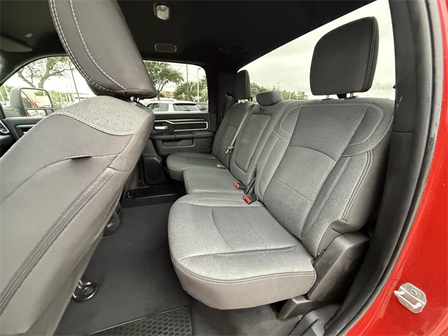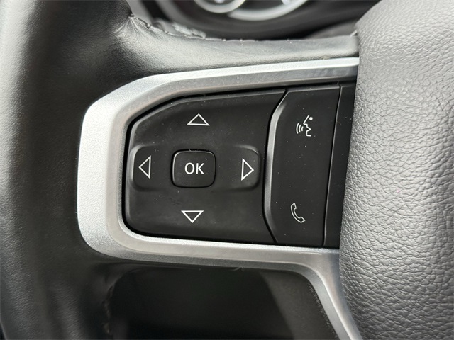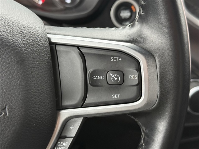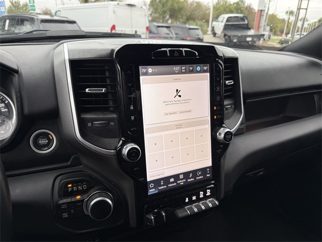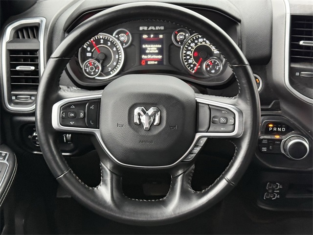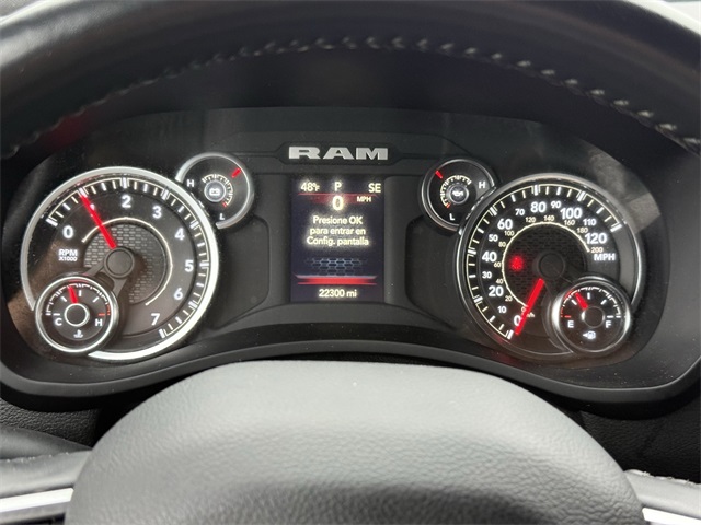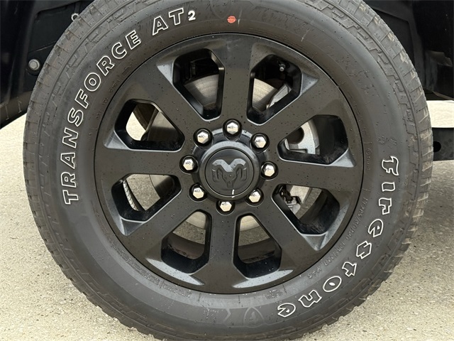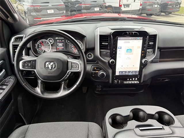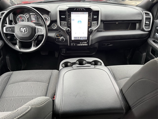 k Exterior Truck Badging, Black Headlamp Bezels, Black Interior Accents, Black Ram Head Tailgate Badge, Black Tail Lamp Bezels, Black Wheel Center Hub, Bluetooth Handsfree Phone & Audio, Body Color Door Handles, Body Color Grille Surround, Brake assist, Center Hub, Cloth 40/20/40 Bench Seat, Connectivity - US/Canada, Delay-off headlights, Dual front impact airbags, Dual front side impact airbags, Dual Glove Boxes, Electronic Stability Control, Electronically Controlled Throttle, Emergency communication system: SiriusXM Guardian, Exterior Mirrors Courtesy Lamps, Exterior Mirrors w/Heating Element, Exterior Mirrors w/Supplemental Signals, Foam Bottle Insert (Door Trim Panel), Footwell Courtesy Lamp, For Details, Visit DriveUconnect.com, For More Info, Call 800-643-2112, Forward & Reverse Utility Lights, Front anti-roll bar, Front Armrest w/Cupholders, Front Center Seat Cushion Storage, Front Fog Lamps, Front Seat Back Map Pockets, Fully automatic headlights, Global Telematics Box Module (TBM), Gloss Black Nostrils/MIC Black Grille, Glove Box Lamp, Google Android Auto, GPS Antenna Input, GPS Navigation, HD Radio, Heated door mirrors, Integrated Center Stack Radio, Integrated Voice Command w/Bluetooth, Leather Wrapped Steering Wheel, LED Bed Lighting, Level 1 Equipment Group, Locking Lower Glove Box, Low tire pressure warning, Manual Adjust 4-Way Driver Seat, Manual Adjust 4-Way Front Passenger Seat, Mirror Running Lights, MOPAR Deployable Bed Step, MOPAR Spray In Bedliner, Night Edition, Occupant sensing airbag, Overhead airbag, Painted Flat Cab-Length Side Steps, Painted Front Bumper, Painted Rear Bumper, Panic alarm, ParkSense Front/Rear Park Assist System, ParkView Rear Back-Up Camera, Power 2-Way Driver Lumbar Adjust, Power Adjust 8-Way Driver Seat, Power Adjust Mirrors, Power Adjustable Convex Aux Mirrors, Power Heated Fold Telescope Mirrors, Power Telescoping Mirrors, Premium Cloth 40/20/40 Bench Seat, Protection Group, Quick Order Package 2GZ Big Horn, Radio: Uconnect 5 W w/8.4" Display (A62), Rear 60/40 Folding Seat, Rear anti-roll bar, Rear Dome w/On/Off Switch Lamp, Rear Folding Seat, Rear step bumper, Remote keyless entry, Remote USB Port - Charge Only, Selectable Tire Fill Alert, SiriusXM Radio Service, SiriusXM Satellite Radio, Speed control, Steering Wheel Mounted Audio Controls, Storage Tray, Tip Start, Tow Hooks, Traction control, Turn signal indicator mirrors, Variably intermittent wipers, Wheels: 18" x 8.0" Polished Aluminum, Wheels: 20" x 8.0" Black Painted Aluminum. CARFAX One-Owner.