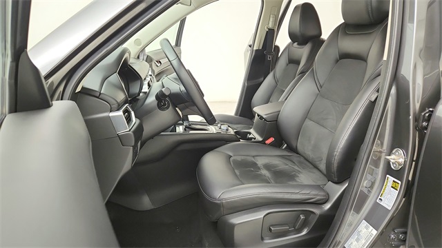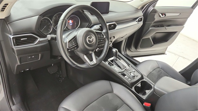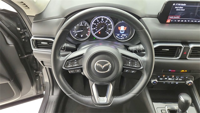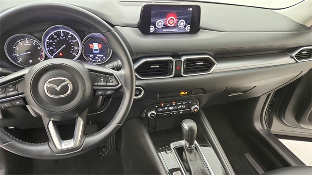 This 2019 Mazda CX-5 Touring in Machine Gray Metallic comes with the following features: SKYACTIV® 2.5L 4-Cylinder DOHC 16V 6-Speed Automatic FWD 4-Wheel Disc Brakes, 4.325 Axle Ratio, 6 Speakers, ABS brakes, Air Conditioning, Alloy wheels, AM/FM radio, AppLink/Apple CarPlay and Android Auto, Auto High-beam Headlights, Automatic temperature control, Brake assist, Bumpers: body-color, Delay-off headlights, Driver door bin, Driver vanity mirror, Dual front impact airbags, Dual front side impact airbags, Electronic Stability Control, Emergency communication system, Exterior Parking Camera Rear, Four wheel independent suspension, Front anti-roll bar, Front Bucket Seats, Front Center Armrest, Front dual zone A/C, Front reading lights, Fully automatic headlights, Heated front seats, Heated Front Sport Seats, Illuminated entry, Leather Shift Knob, Leatherette Seat Trim, Low tire pressure warning, Machine Gray Metallic Paint, Occupant sensing airbag, Outside temperature display, Overhead airbag, Overhead console, Panic alarm, Passenger door bin, Passenger vanity mirror, Power door mirrors, Power driver seat, Power steering, Power windows, Radio data system, Radio: AM/FM/HD Audio System, Rain sensing wipers, Rear anti-roll bar, Rear reading lights, Rear seat center armrest, Rear window defroster, Rear window wiper, Remote keyless entry, Speed control, Speed-sensing steering, Split folding rear seat, Spoiler, Steering wheel mounted audio controls, Tachometer, Telescoping steering wheel, Tilt steering wheel, Traction control, Trip computer, Turn signal indicator mirrors, Variably intermittent wipers, and Wheels: 17" x 7J Gray Metallic Alloy.