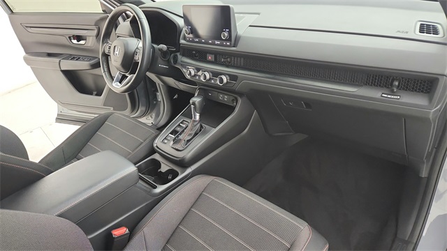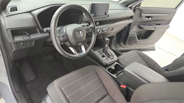 Recent Arrival! This 2023 Honda CR-V Hybrid Sport in Gray combines outstanding fuel economy with everyday versatility, making it the perfect SUV for families and commuters alike. Powered by a 2.0L I4 DOHC 16V hybrid engine paired with an eCVT transmission, this CR-V delivers impressive efficiency at up to 43 MPG city and 36 MPG highway, without sacrificing comfort or capability. If you’re shopping for a used 2023 Honda CR-V Hybrid for sale near Houston, TX, this one-owner SUV is ready for immedi