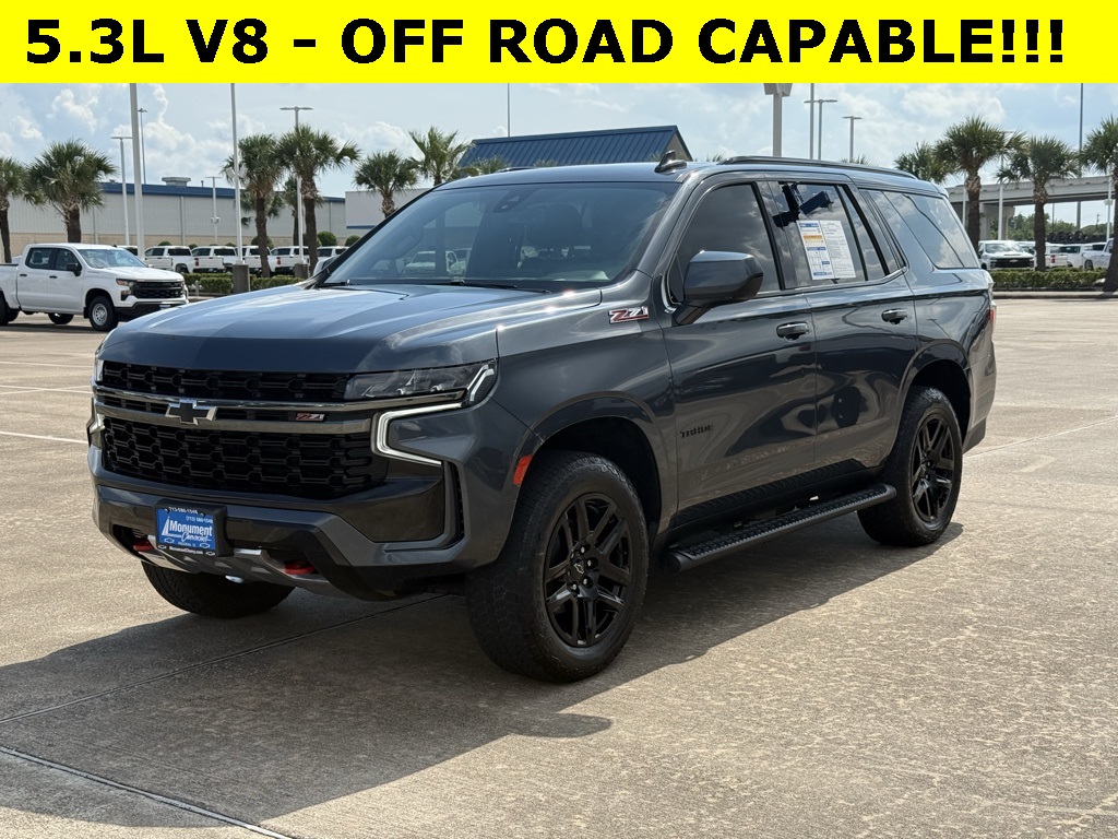SEATS, SECOND ROW BUCKET, MANUAL, CHEVROLET INFOTAINMENT 3 PLUS SYSTEM, 10.2 DIAGONAL HD COLOR TOUCHSCREEN AM/FM stereo, Bluetooth® audio streaming for 2 active devices, Apple CarPlay® and Android Auto® capable, enhanced voice recognition, in-vehicle apps, cloud connected personalization for select infotainment and vehicle settings. Subscription required for enhanced and connected services after trial period. (STD), 5.3L ECOTEC3 V8 with Dynamic Fuel Management, Direct Injection and Variable Valve Timing, includes aluminum block construction (355 hp [265 kW] @ 5600 rpm, 383 lb-ft of torque [518 Nm] @ 4100 rpm) (STD), 10-SPEED AUTOMATIC electronically controlled with overdrive, includes Traction Select System including tow/haul (Most vehicles built on or after 6-7-2021 with a V8 engine will have (NSS) Not Equipped with Automatic Stop/Start, which removes Automatic Stop/Start, Engine control stop/start disable button and its content.) (STD). Chevrolet Z71 with Shadow Gray Metallic exterior and Jet Black interior features a 8 Cylinder Engine with 355 HP at 5600 RPM*.