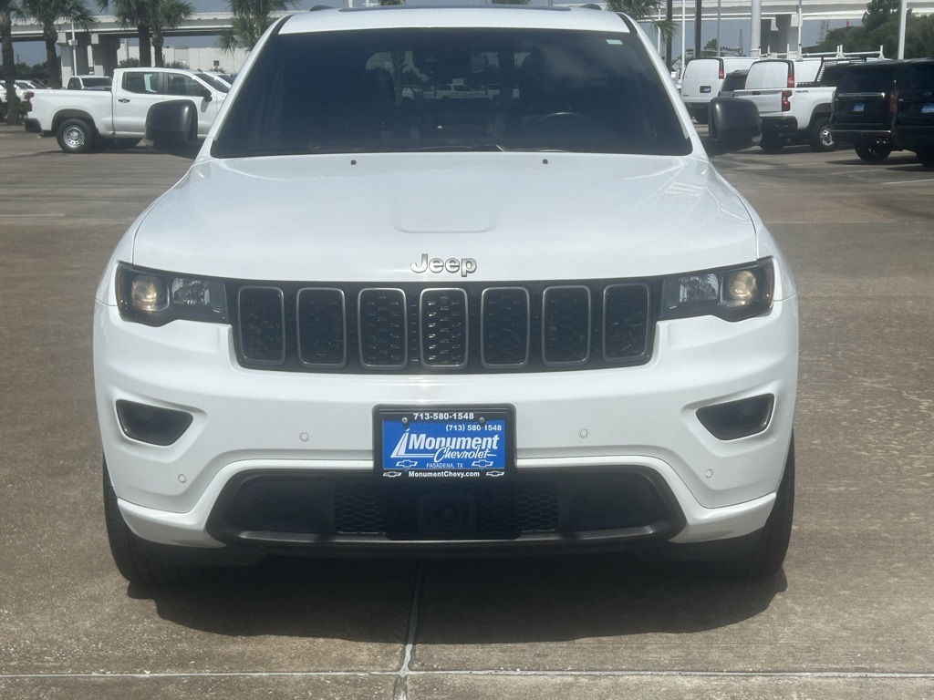 QUICK ORDER PACKAGE 2BK 80TH Engine: 3.6L V6 24V VVT UPG I w/ESS, Transmission: 8-Speed Automatic (850RE), Front Accent/Body Color Fascia, Parallel & Perp Park Assist w/Stop, Rain Sensitive Windshield Wipers, Granite Crystal Exterior Badging, Body Color Door Handles, Body Color Shark Fin Antenna, Rear Accent/Body Color Fascia, Black Roof Molding, Dark Headlamp Bezel Finish, Body Color Claddings, Granite Crystal Exterior Mirror Caps, Jeep 80th Anniversary Badges, Berber Floor Mats w/80th Anniversary Tag, Advanced Brake Assist, Jeep 80th Anniversary Edition, Full Speed FWD Collision Warn Plus, Granite Crystal/Black Grille, LT, Tungsten Interior Accent Stitching, Dark Day Light Opening Moldings, Piano Black/Anod, Gunmetal Interior Accents, Adaptive Cruise Control w/Stop, Dark Lens Taillamps, 80TH ANNIVERSARY LUXURY GROUP 506 Watt Amplifier, Power Tilt/Telescope Steering Column, Cargo Compartment Cover, Premium Alpine Speaker System, Active Noise Control System, Heated Second Row Seats, Dual-Pane Panoramic Sunroof, Ventilated Front Seats, TRANSMISSION: 8-SPEED AUTOMATIC (850RE) (STD), ENGINE: 3.6L V6 24V VVT UPG I W/ESS (STD). Jeep 80th Anniversary with Bright White Clearcoat exterior and Black interior features a V6 Cylinder Engine with 293 HP at 6400 RPM*.