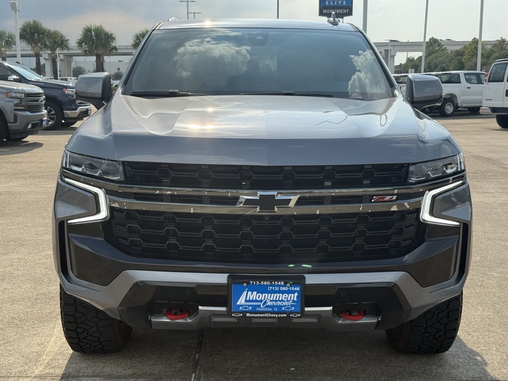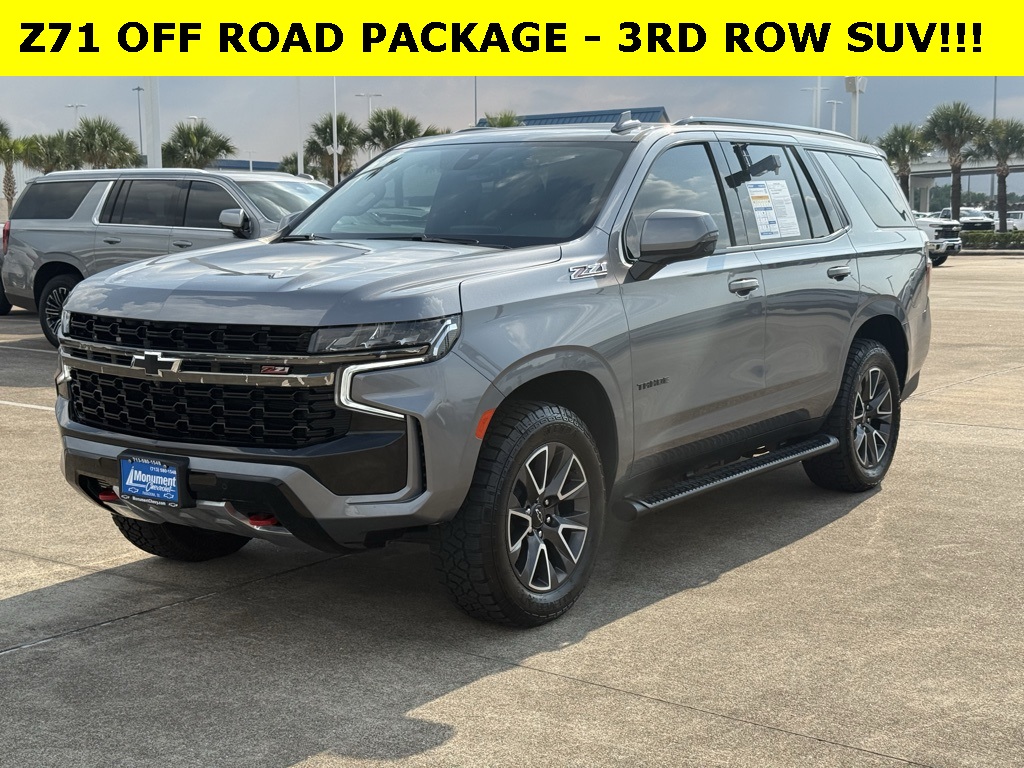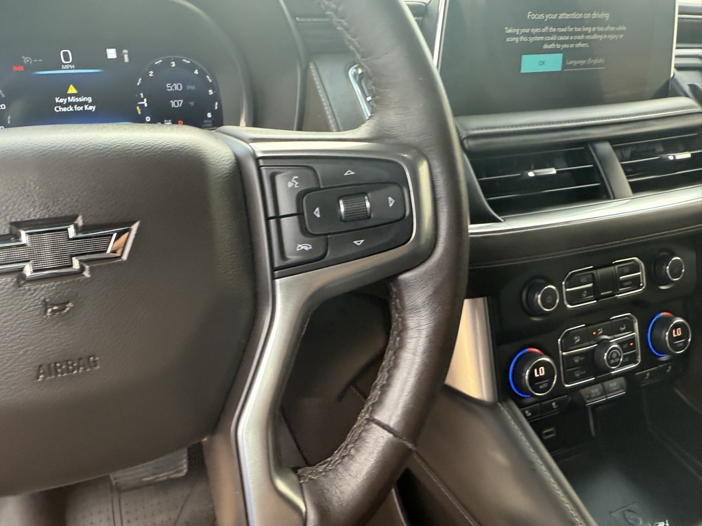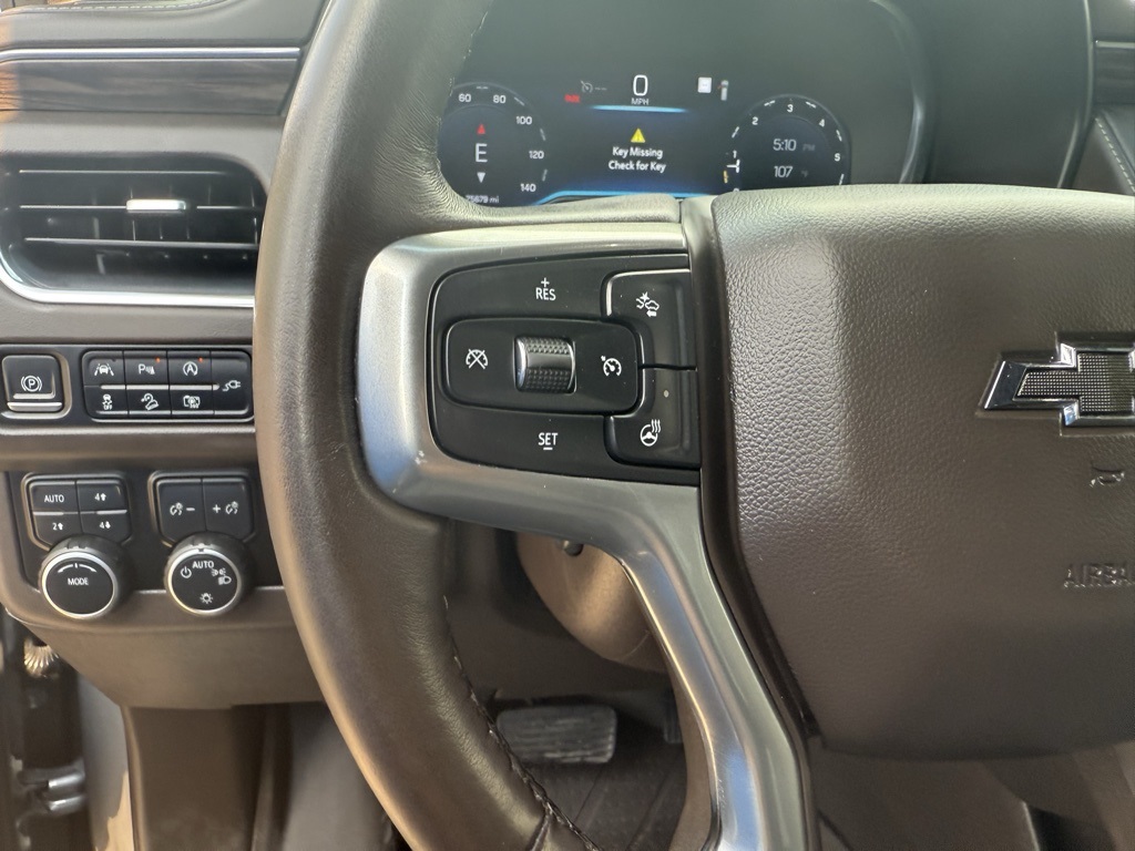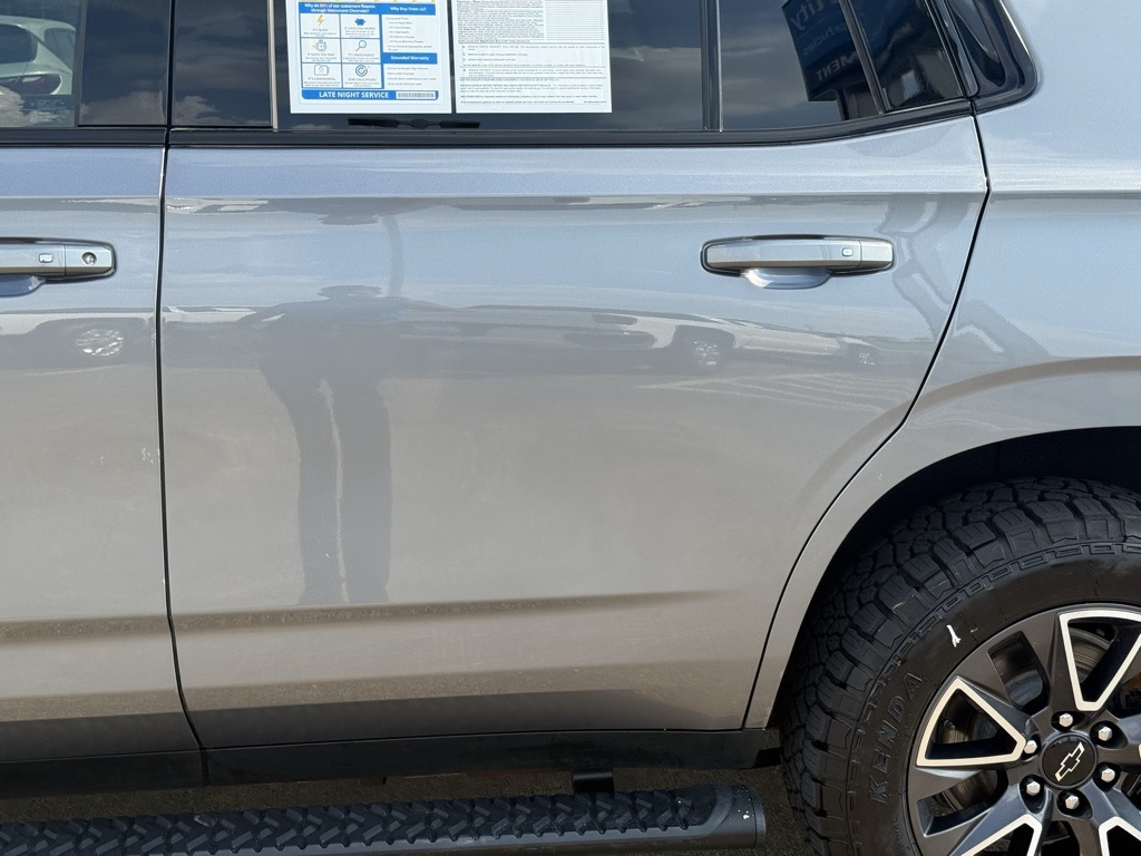 LUXURY PACKAGE includes (WPD) Driver Alert Package content, (UV2) HD Surround Vision, (UKK) Rear Pedestrian Alert, (A45) memory settings, (DXR) outside heated power-adjustable, power-folding, body-color mirrors with driver-side auto-dimming and integrated turn signal indicators, (N38) power tilt and telescopic steering column, (KI3) heated steering wheel, (KA6) second row outboard heated seats, (ATT) second row power 60/40 split-folding bench seats and (AS8) third row power 60/40 split-folding bench seats Vehicles built prior to December 6, 2021, include heated steering wheel. Certain vehicles built on or after December 6, 2021, will be forced to include (00G) Not Equipped with Heated Steering Wheel, which removes heated steering wheel. Vehicles built prior to March 14, 2022 and after, AUDIO SYSTEM, CHEVROLET INFOTAINMENT 3 PREMIUM SYSTEM WITH GOOGLE BUILT-IN 10.2 diagonal HD color touchscreen, includes multi-touch display, AM/FM stereo, Bluetooth® streaming audio for music and most phones; featuring wireless Android Auto® and Apple CarPlay® capability for compatible phones, advanced voice recognition, in-vehicle apps, personalized profiles for infotainment and vehicle settings (STD), STEERING WHEEL, HEATED Vehicles built prior to December 6, 2021 and after March 27, 2022, include heated steering wheel. Certain vehicles built on or after December 6, 2021 through March 27, 2022, will be forced to include (00G) Not Equipped with Heated Steering Wheel, which removes heated steering wheel. See dealer for details or the window label for the features on a specific vehicle.), 5.3L ECOTEC3 V8 with Dynamic Fuel Management, Direct Injection and Variable Valve Timing, includes aluminum block construction (355 hp [265 kW] @ 5600 rpm, 383 lb-ft of torque [518 Nm] @ 4100 rpm) (STD), 10-SPEED AUTOMATIC electronically controlled with overdrive, includes Traction Select System including tow/haul (STD), DRIVER ALERT PACKAGE includes (UKC) Lane Change Alert with Side Blind Zone Alert and (UFG) Rear Cross Traffic Alert. Chevrolet Z71 with Satin Steel Metallic exterior and Gideon/Very Dark Atmosphere interior features a 8 Cylinder Engine with 355 HP at 5600 RPM*.