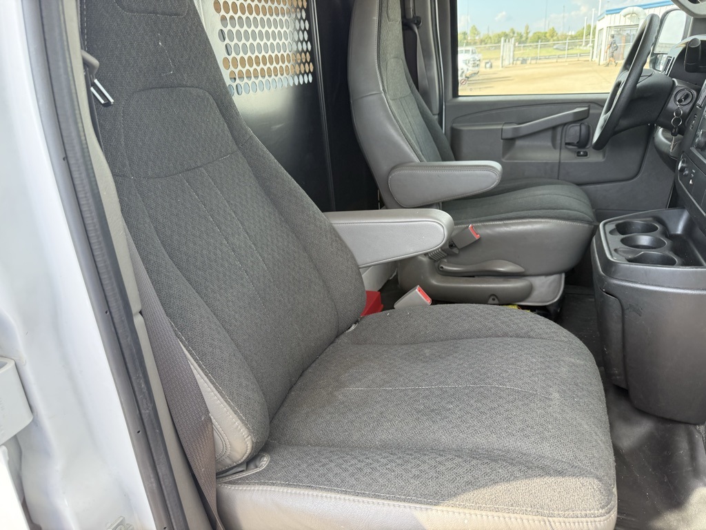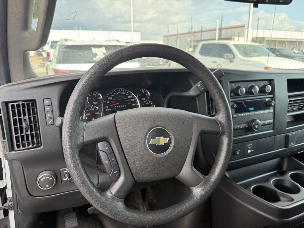 , includes aluminum block construction (276 hp [206 kW] @ 5200 rpm, 298 lb-ft of torque [404 Nm] @ 3900 rpm) (STD), ELECTRONICALLY CONTROLLED with overdrive and tow/haul mode. Includes Cruise Grade Braking, Powertrain Grade Braking and Tap-Up/Tap-Down Driver Shift Control (STD), AUDIO SYSTEM, AM/FM STEREO WITH MP3 PLAYER seek-and-scan, digital clock, TheftLock, random select, auxiliary jack and 2 front door speakers (STD). Chevrolet Express Cargo Van with Summit White exterior and Jet Black/Medium Dark Pewter interior features a V6 Cylinder Engine with 276 HP at 5200 RPM*.