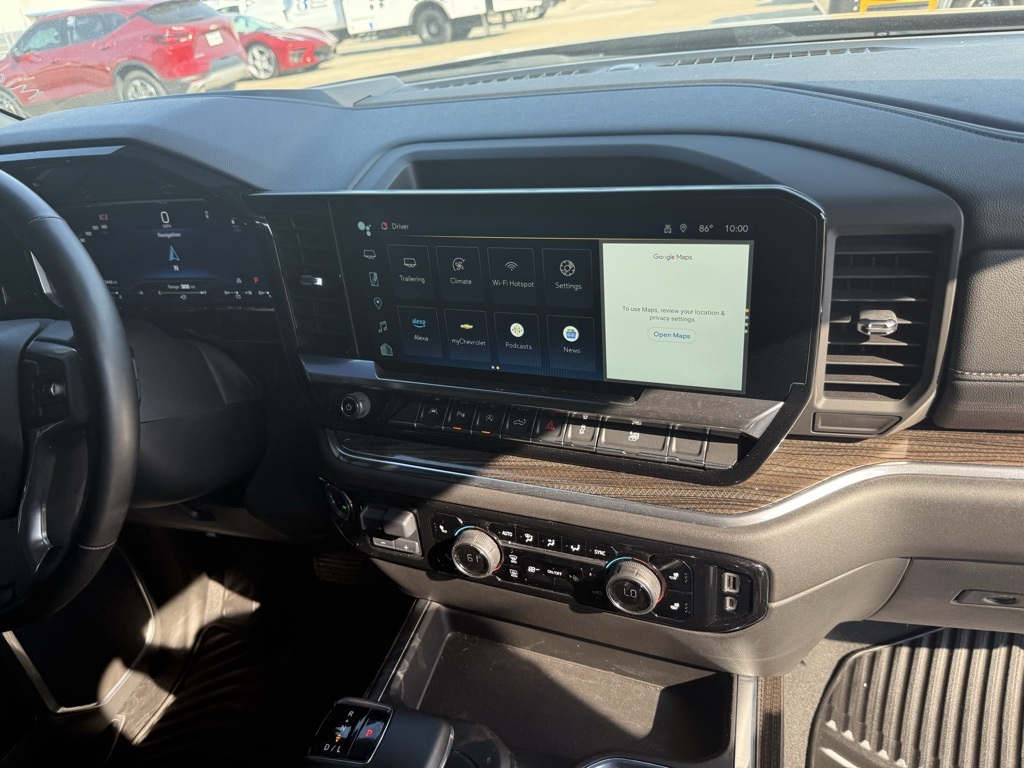 65 kW] @ 5600 rpm, 383 lb-ft of torque [518 Nm] @ 4100 rpm); featuring available Dynamic Fuel Management that enables the engine to operate in 17 different patterns between 2 and 8 cylinders, depending on demand, to optimize power delivery and efficiency, SAFETY PACKAGE includes (UV2) HD Surround Vision, (UD5) Front and Rear Park Assist, (TRG) Trailer Camera Provisions, (UKV) Trailer Side Blind Zone Alert, (UFB) Rear Cross Traffic Braking, (UKK) Rear Pedestrian Alert and (U12) Perimeter Lighting (Includes (V76) Recovery hooks. CONVENIENCE PACKAGE II includes (UG1) Universal Home Remote, (A48) rear sliding power window, (PZ8) Hitch Guidance with Hitch View, (JL1) Trailer brake controller and (UET) Trailering App, FRONT BUCKET with center console (Includes (EPH) Electronic Transmission Range Selector (console mounted). TAILGATE, MULTI-FLEX with six functional load/access features, NOTE: Auto release can be disabled if ball hitch is installed. See Owners manual for details, REMOTE START PACKAGE includes (BTV) Remote Start, (UTJ) Theft-deterrent system and (C49) rear-window defogger, AUDIO SYSTEM, CHEVROLET INFOTAINMENT 3 PREMIUM SYSTEM with Google built-in compatibility (select service plan required, terms and limitations apply) including navigation capability, 13.4 diagonal HD color touchscreen, includes multi-touch display, AM/FM stereo, Bluetooth® streaming audio for music and most phones; featuring Wireless Apple CarPlay® and Wireless Android Auto® capability for compatible phones, advanced voice recognition, in-vehicle apps, personalized profiles for infotainment and vehicle settings (STD), TRANSMISSION, 10-SPEED AUTOMATIC with Electronic Transmission Range Selector, (ETRS), electronically controlled with overdrive, tow/haul mode and steering column paddle shifters. Includes Cruise Grade Braking and Powertrain Grade Braking, UP-LEVEL REAR WITH STORAGE PACKAGE 60/40 folding bench for Crew Cab models, includes full-length bench seat, seatback storage on left and right side, center fold out armrest with 2 cupholders, full cab width under-seat storage, (includes child seat top tether anchor). Chevrolet LT with Black exterior and Jet Black interior features a 8 Cylinder Engine with 310 HP at 5600 RPM*.
