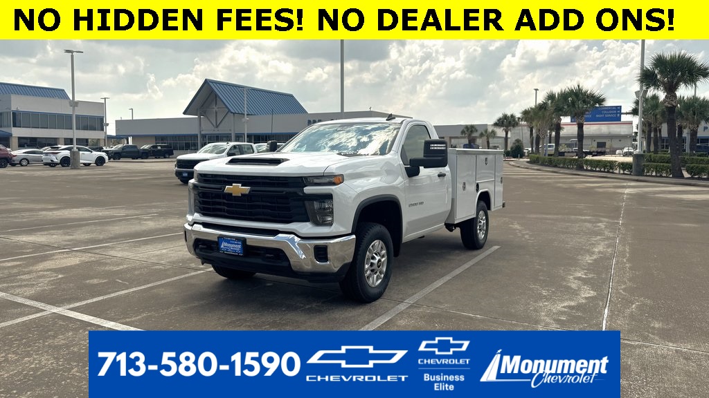 ing (extends 3.31 [84.25mm]) Includes (DD8) auto-dimming rearview mirror. WHEELS, 17 (43.2 CM) MACHINED ALUMINUM, GLASS, DEEP-TINTED, AUDIO SYSTEM, CHEVROLET INFOTAINMENT 3 SYSTEM 7 diagonal HD color touchscreen, AM/FM stereo, Bluetooth® audio streaming for 2 active devices, voice command pass-through to phone, Wireless Apple CarPlay® and Wireless Android Auto® compatibility (STD), ENGINE, 6.6L V8 with Direct Injection and Variable Valve Timing, gasoline, (401 hp [299 kW] @ 5200 rpm, 464 lb-ft of torque [629 N-m] @ 4000 rpm) (STD), TRANSMISSION, ALLISON 10-SPEED AUTOMATIC (STD). Chevrolet Work Truck with Summit White exterior and Jet Black interior features a 8 Cylinder Engine with 401 HP at 5200 RPM*.