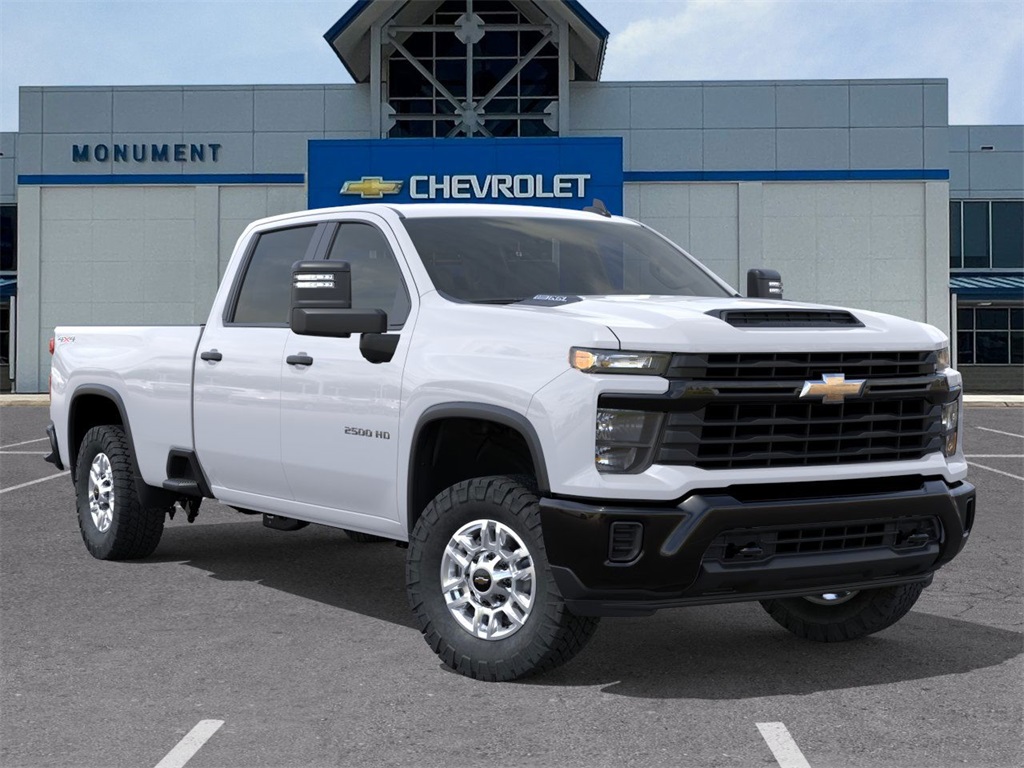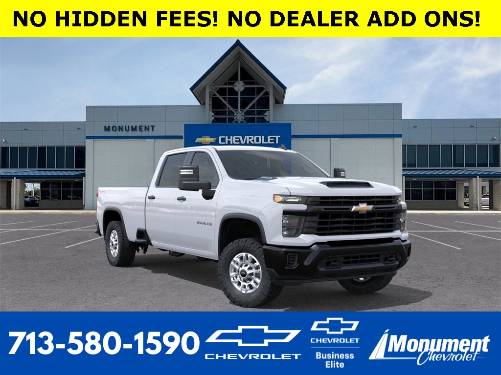CHINED ALUMINUM, GLASS, DEEP-TINTED, AUDIO SYSTEM, CHEVROLET INFOTAINMENT 3 SYSTEM 7 diagonal HD color touchscreen, AM/FM stereo, Bluetooth® audio streaming for 2 active devices, voice command pass-through to phone, Wireless Apple CarPlay® and Wireless Android Auto® compatibility (STD), ENGINE, 6.6L V8 with Direct Injection and Variable Valve Timing, gasoline, (401 hp [299 kW] @ 5200 rpm, 464 lb-ft of torque [629 N-m] @ 4000 rpm) (STD), TRANSMISSION, 10-SPEED AUTOMATIC (STD). Chevrolet Work Truck with Summit White exterior and Jet Black interior features a 8 Cylinder Engine with 401 HP at 5200 RPM*.