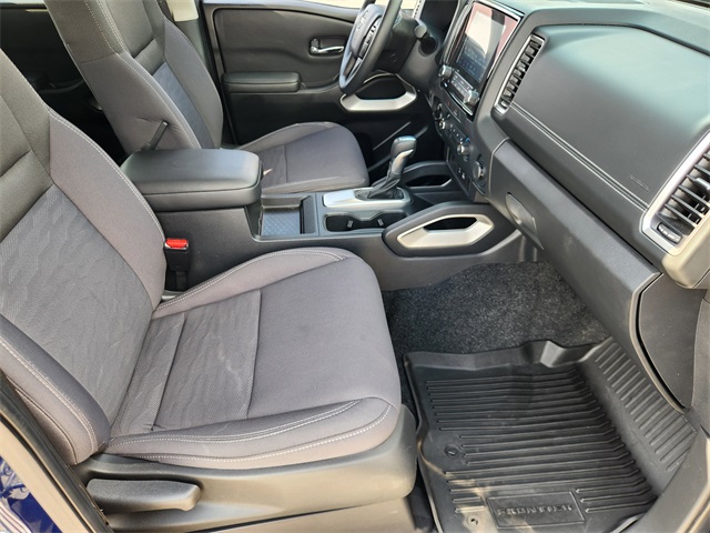 Clean CARFAX. Deep Blue Pearl 2023 Nissan Frontier SV 4WD 9-Speed Automatic 3.8L DI DOHC 24V V6 LOCAL TRADE, CLEAN CARFAX, NON SMOKER, 4WD, KEYLESS ENTRY, REMOTE START, APPLE CARPLAY, ANDROID AUTO, SIRIUS XM RADIO, AM/FM/HD RADIO, BLUETOOTH HANDS FREE CALLING, FRONT USB CHARGING PORTS, MP3 IPOD COMPATIBLE, AUTO HEADLIGHTS, DAYTIME RUNNING LIGHTS, LANE DEPARTURE WARNING SYSTEM, RUNNING BOARDS, TOW PKG, 4WD.