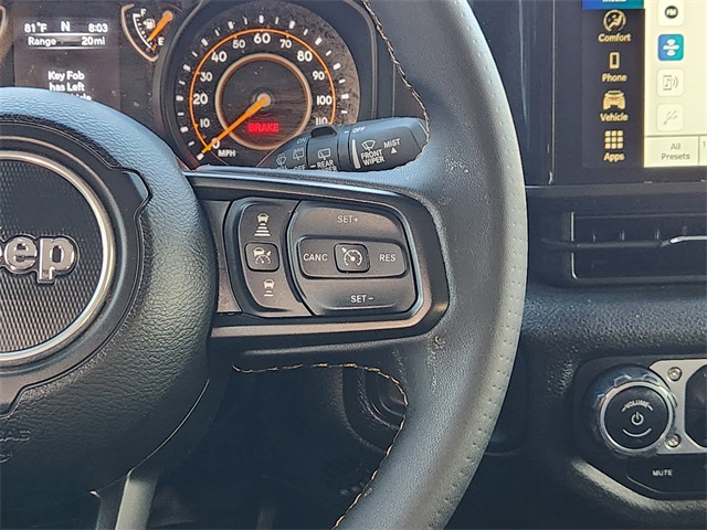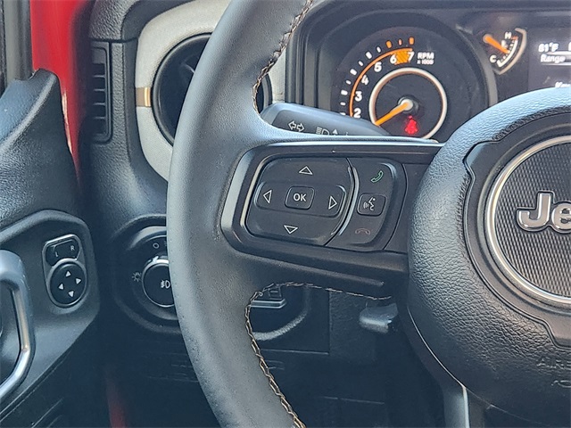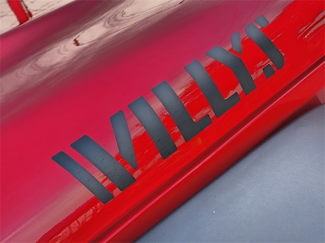 rness, 97 MPH Vehicle Max Speed Calibration, Advanced Brake Assist, Automatic Headlamps, Auxiliary Switches, Black Grille, Class II Receiver Hitch, Conventional Differential Front Axle, Corning Gorilla Glass, Dana M210 Wide HD Tube Front Axle, Dana M220 Wide Rear Axle, Daytime Running Lamps LED Accents, Deep Tint Sunscreen Windows, E-Locker Rear Axle, Enhanced Adaptive Cruise Control, Front 1-Touch Down Power Windows, Front LED Fog Lamps, Full Speed Forward Collision Warning Plus, Injection Molded Black Rear Bumper, LED Premium Reflector Headlamps, Mold In Color Bumper w/Gloss Black, Molded in Color Rubicon Highline Flare, MOPAR All-Weather Floor Mats, Off-Road Plus Mode, Power Heated Mirrors, Premium Wrapped Steering Wheel, Quick Order Package 23W Willys, Remote Keyless Entry, Security Alarm, Speed Sensitive Power Locks, Sun Visors w/Illuminated Vanity Mirrors, Wheels: 17" x 7.5" Painted Black, Willy's Suspension, Willys, Willys Hood Decal.