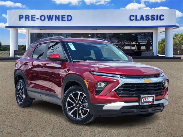 CARFAX One-Owner. Clean CARFAX. Crimson Metallic 2025 Chevrolet TrailBlazer LT FWD CVT 1.3L Ecotec Turbo DOHC SIDI w/VVT LOCAL TRADE, CARFAX 1 OWNER, CLEAN CARFAX, NON SMOKER, KEYLESS ENTRY, REMOTE START, APPLE CARPLAY, ANDROID AUTO, SIRIUS XM RADIO, ON STAR, AM/FM/HD RADIO, BLUETOOTH HANDS FREE CALLING, FRONT USB CHARGING PORTS, MP3 IPOD COMPATIBLE, AUTO HEADLIGHTS, DAYTIME RUNNING LIGHTS, BLIND SPOT WARNING SYSTEM, LANE DEPARTURE WARNING SYSTEM, POWER ADJUSTABLE DRIVERS SEAT, Driver Confidence