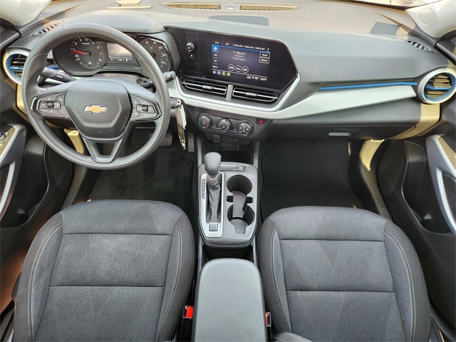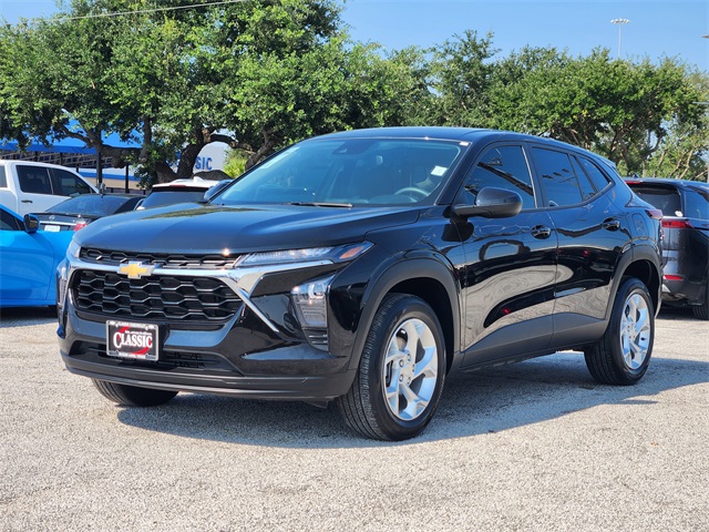 CARFAX One-Owner. Clean CARFAX. Mosaic Black Metallic 2025 Chevrolet Trax LS FWD 6-Speed Automatic 1.2L Ecotec Turbo DOHC DI w/VVT LOCAL TRADE, CARFAX 1 OWNER, CLEAN CARFAX, NON SMOKER, KEYLESS ENTRY, REMOTE START, APPLE CARPLAY, ANDROID AUTO, SIRIUS XM RADIO, ON STAR, AM/FM/HD RADIO, BLUETOOTH HANDS FREE CALLING, FRONT USB CHARGING PORTS, MP3 IPOD COMPATIBLE, AUTO HEADLIGHTS, DAYTIME RUNNING LIGHTS, BLIND SPOT WARNING SYSTEM, REAR TRAFFIC ALERT, LANE DEPARTURE WARNING SYSTEM, Body-Color Painted