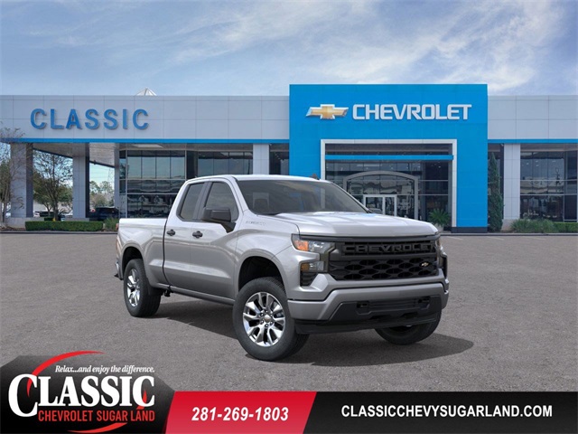 Sterling Gray Metallic 2026 Chevrolet Silverado 1500 Custom RWD 8-Speed Automatic 2.7L I4 Turbocharged DOHC 16V LEV3-SULEV30 310hp 8-Speed Automatic, Black Cloth.