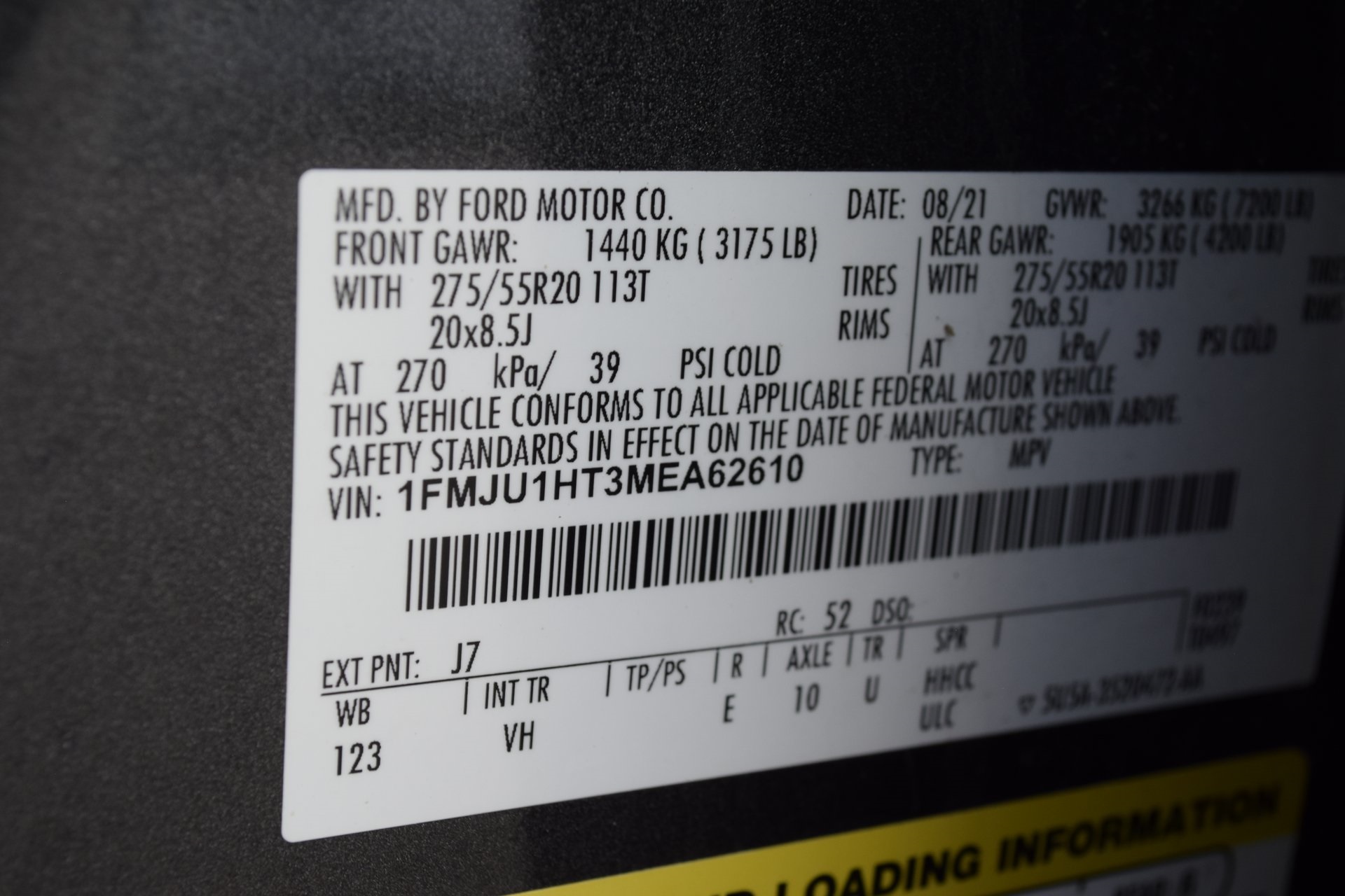 lding Head Restraints, 3rd Row Vinyl Seat, 4-Door Intelligent Access (Lock/Unlock), ActiveX-Trimmed 1st & 2nd Row Seats, Adaptive Cruise Control, Advanced Security Pack, Chrome Platform Running Boards, Equipment Group 202A High Package, Ford Co-Pilot360 Assist, Heated Steering Wheel, Heated/Ventilated Front Seats, Instrument Panel Cluster, Panoramic Vista Roof, Power Liftgate, Power Tilt/Telescopic Steering Wheel w/Memory, Power-Folding Sideview Mirrors w/Autofold, Remote Start, Santa Cruz Vinyl-Wrapped Center Console Side Rails, SecuriCode Keyless Entry Pad, Voice-Activated Touch-Screen Navigation System, Wireless Charging Pad.