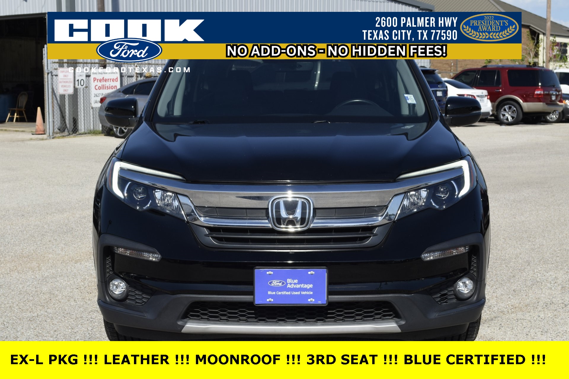 Certified. Black 2021 Honda Pilot EX-L FWD 9-Speed Automatic 3.5L V6 24V SOHC i-VTEC