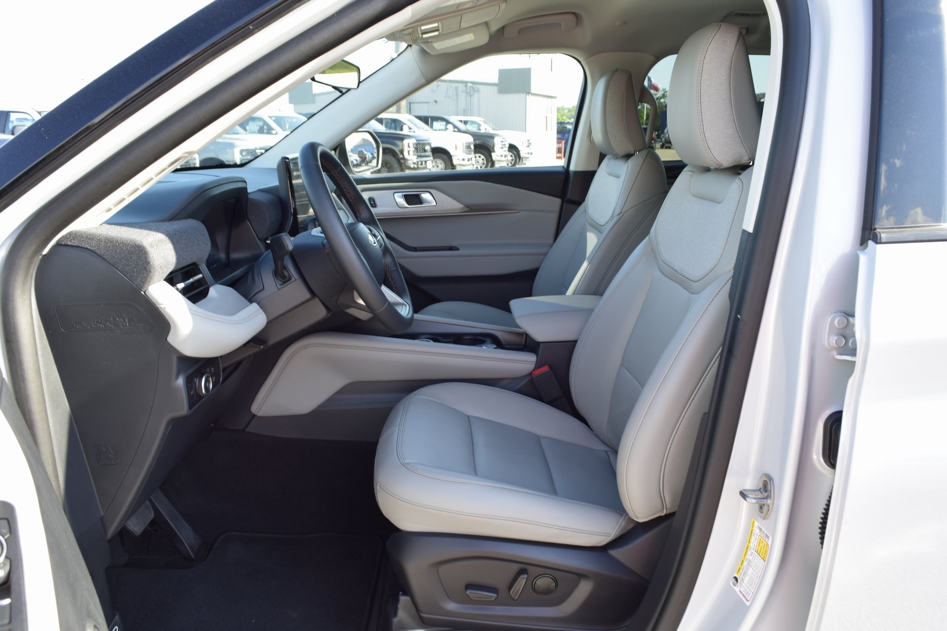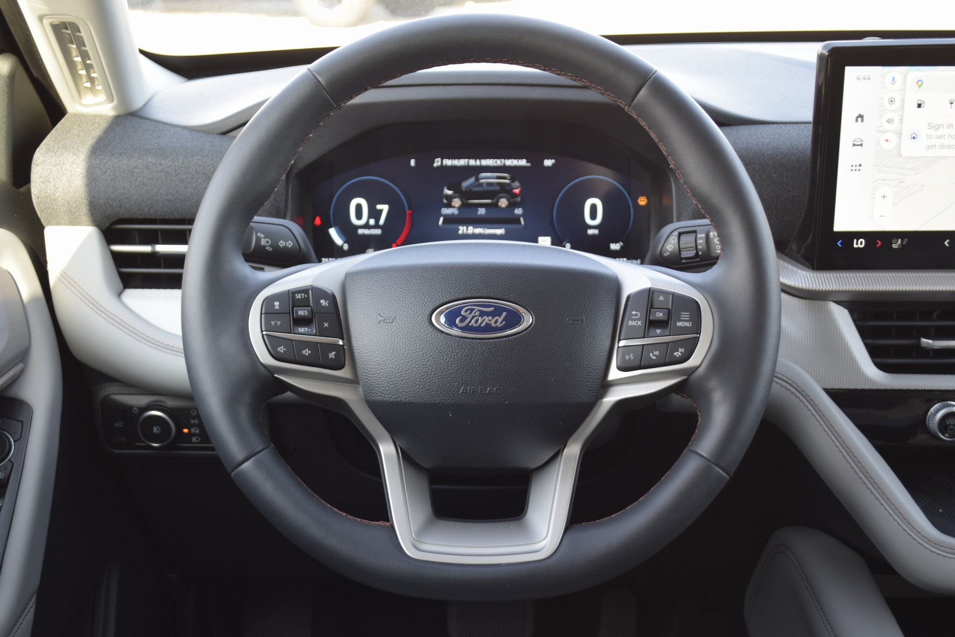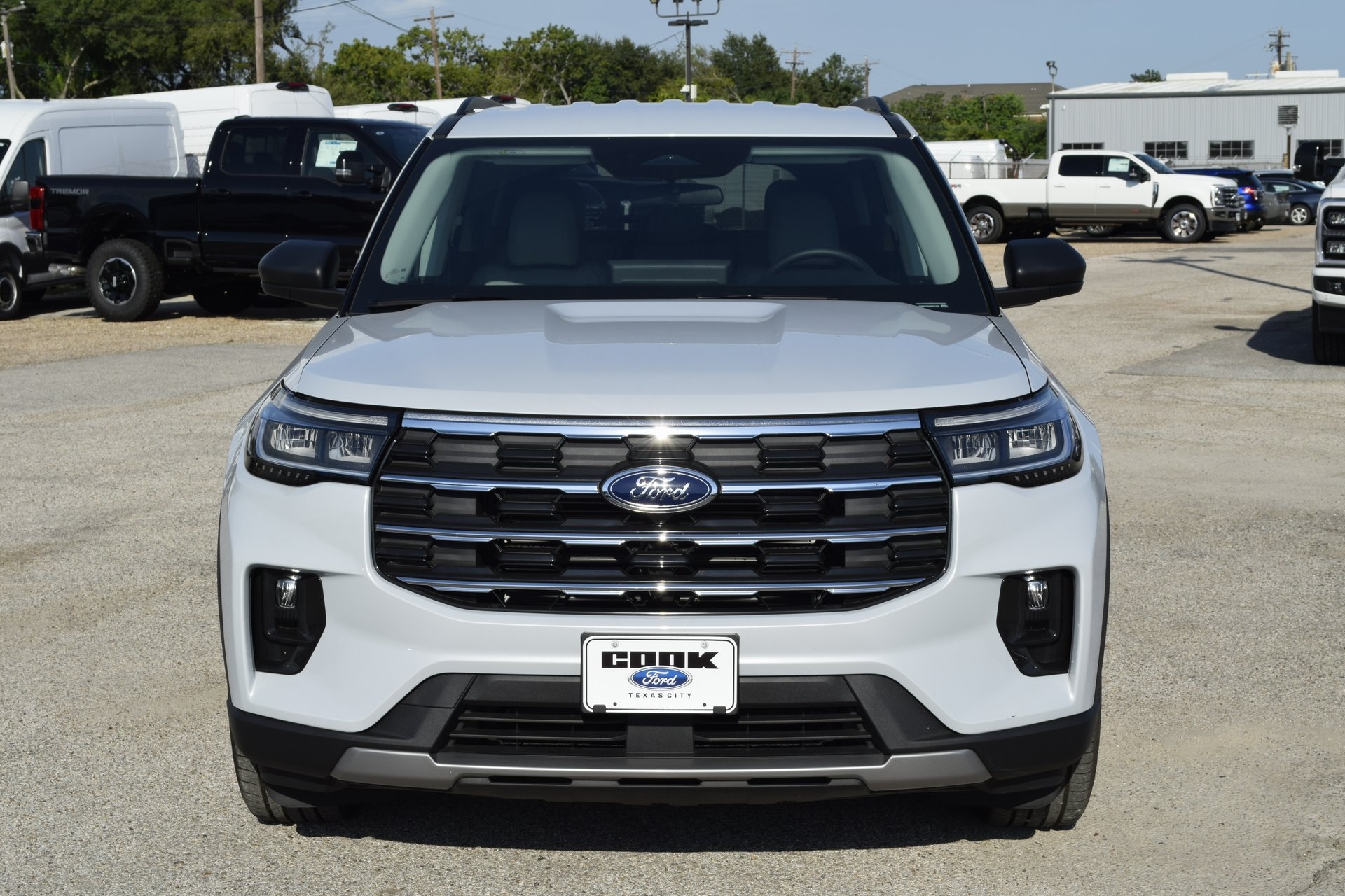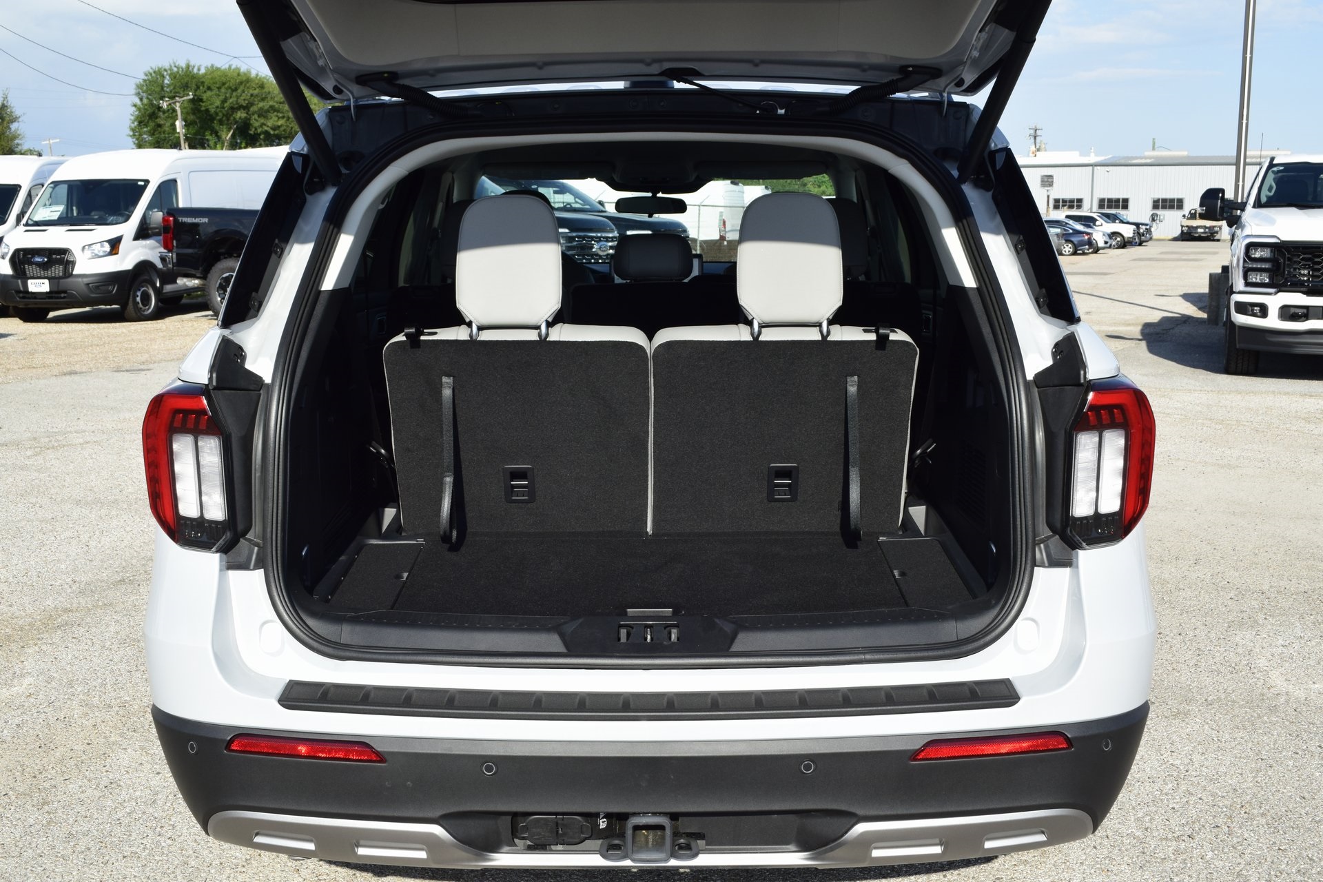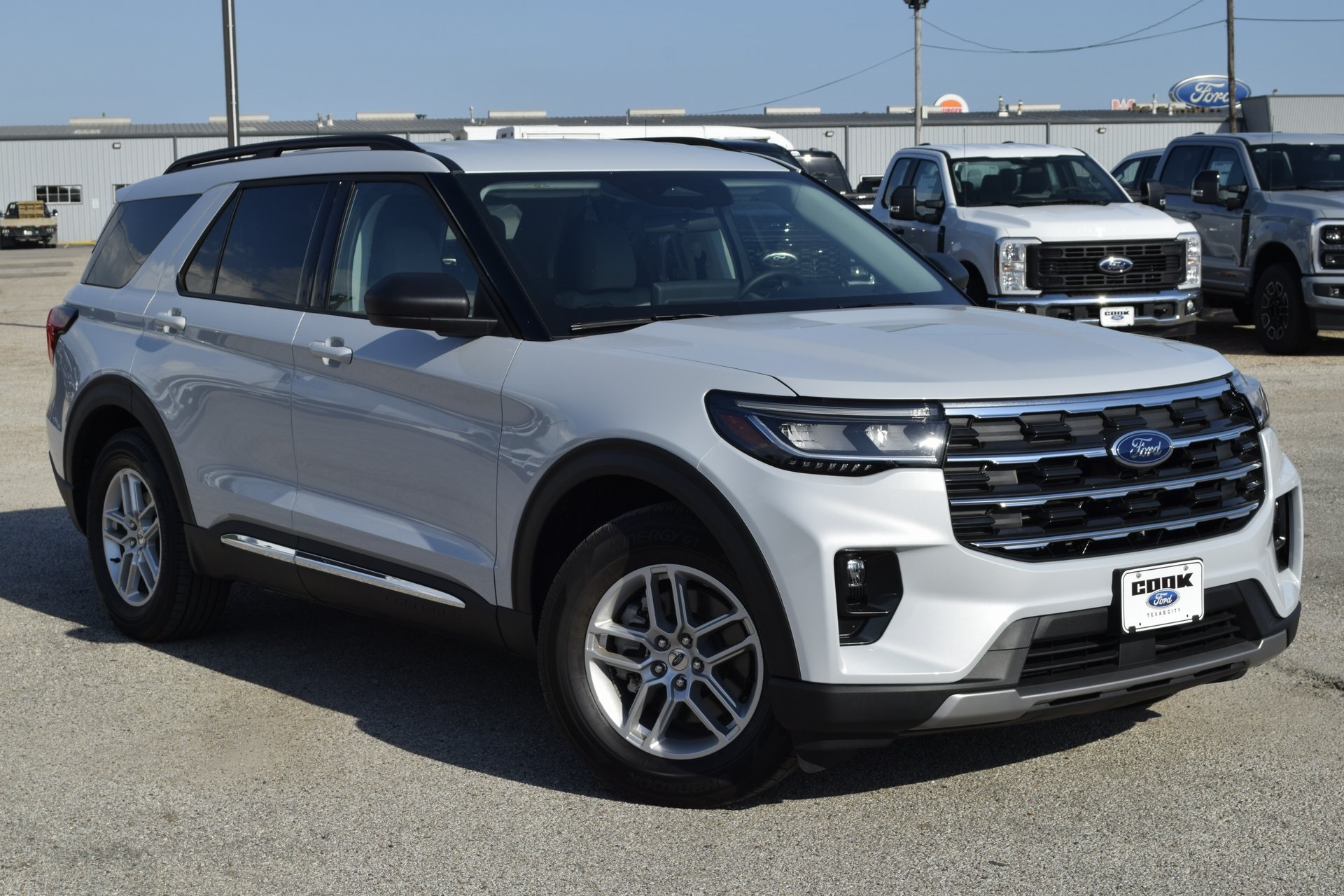 This 2025 Ford Explorer Active in Space White Metallic comes with the following features: 2.3L EcoBoost I-4 10-Speed Automatic RWD 3.58 Non-Limited Slip Rear Axle, 3rd row seats: bench, 4-Wheel Disc Brakes, 6 Speakers, ABS brakes, Air Conditioning, Alloy wheels, AM/FM Stereo, Apple CarPlay/Android Auto, Auto High-beam Headlights, Automatic temperature control, Brake assist,