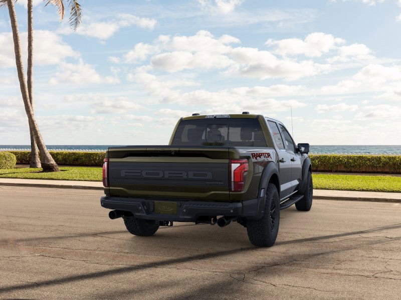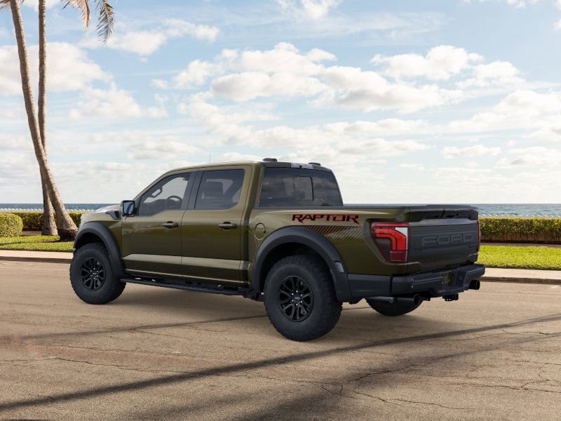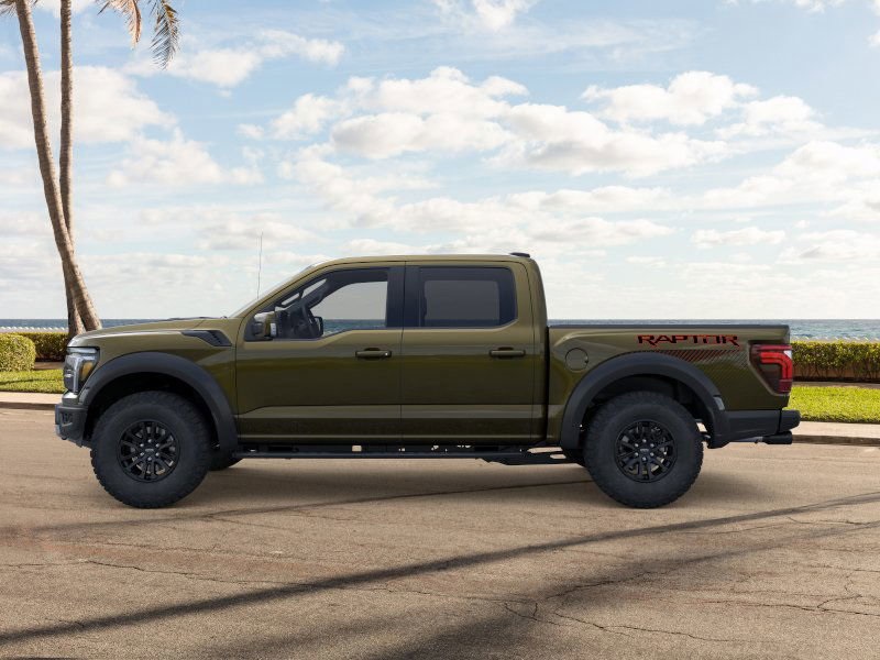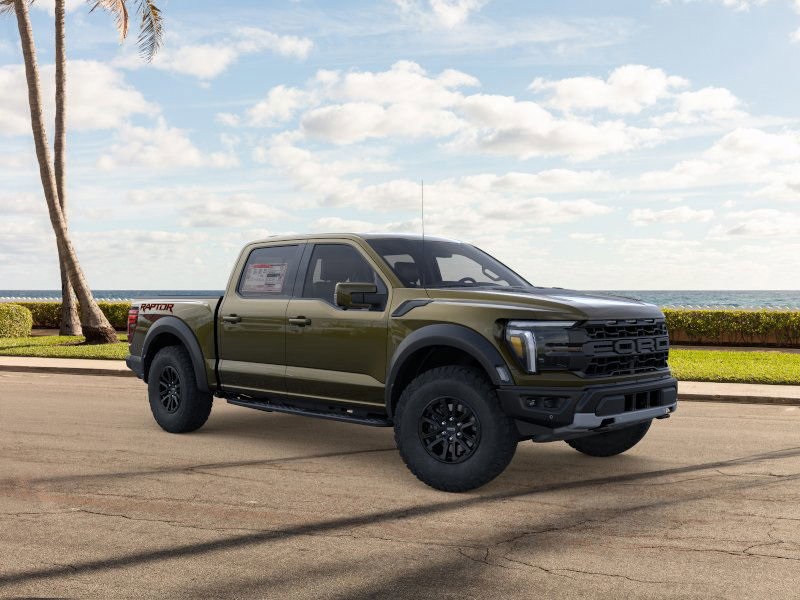 This 2025 Ford F-150 Raptor in Shelter Green comes with the following features: 3.5L V6 EcoBoost 10-Speed Automatic 4WD 14 Speakers, 17" Cast Aluminum Wheels, 4-Wheel Disc Brakes, ABS brakes, Adjustable pedals, Air Conditioning, Alloy wheels, AM/FM radio: SiriusXM with 360L, Auto High-beam Headlights, Auto tilt-away steering wheel, Auto-dimming door mirrors, Auto-dimming Rear-View mirror, Automatic temperature control