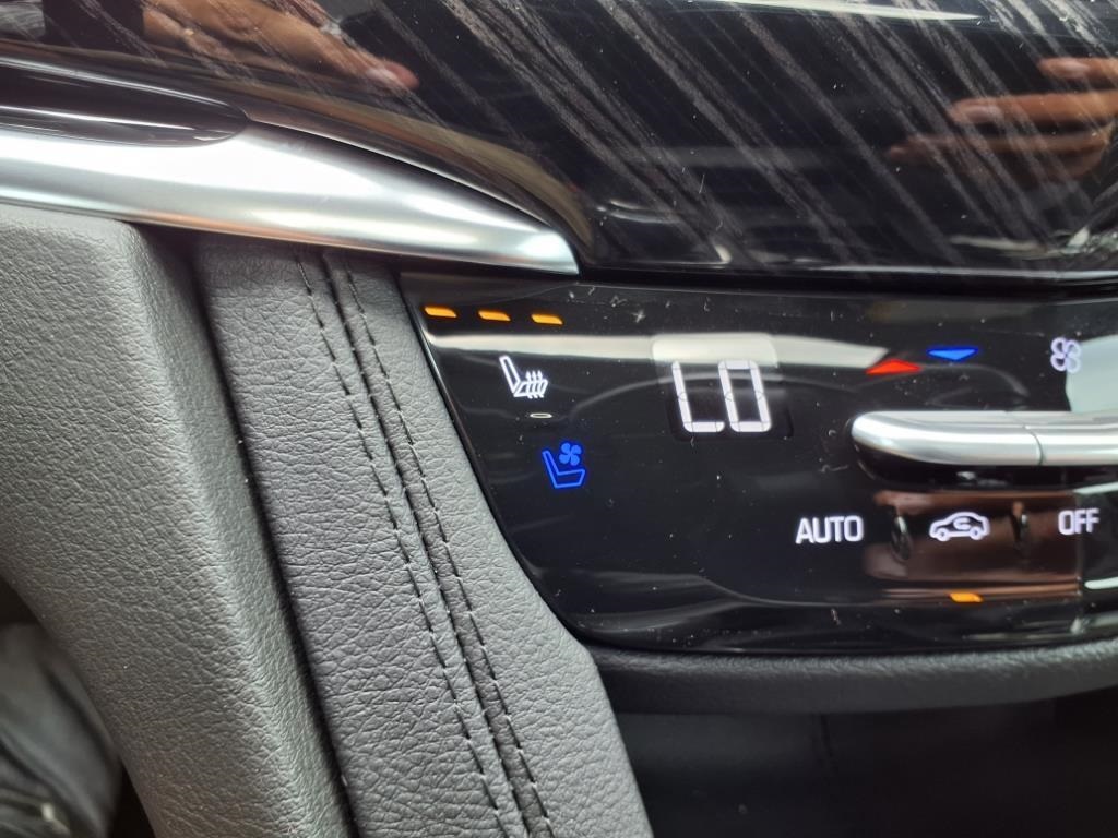 ess Apple CarPlay/Wireless Android Auto), Technology Package (8" Color Driver Information Center Display, Automatic Parking Assist w/Braking, HD Surround Vision, Head-Up Display, Rear Camera Mirror, Rear Camera Mirror Washer, Rear Pedestrian Alert, and Surround Vision Recorder), 14 Speakers, 2-Way Power Driver Lumbar Control Seat Adjuster, 2-Way Power Passenger Lumbar Control Seat Adjuster, 3rd row seats: split-bench, 4-Wheel Disc Brakes, 6-Passenger Seating, 8-Way Power Driver Seat Adjuster, ABS brakes, Air Conditioning, Alloy wheels, AM/FM radio: SiriusXM with 360L, Audio memory, Auto High-beam Headlights, Auto tilt-away steering wheel, Auto-dimming door mirrors, Auto-dimming Rear-View mirror, Automatic Stop/Start w/Disable, Automatic temperature control, Brake assist, Bumpers: body-color, Compass, Delay-off headlights, Driver & Front Passenger Heated Seats, Driver door bin, Driver vanity mirror, Dual front impact airbags, Dual front side impact airbags, Electronic Stability Control, Emergency communication system: OnStar and Cadillac connected services capable, Four wheel independent suspension, Front anti-roll bar, Front Bucket Seats, Front Center Armrest, Front dual zone A/C, Front License Plate Bracket, Front reading lights, Fully automatic headlights, Garage door transmitter, Genuine wood dashboard insert, Genuine wood door panel insert, Heated door mirrors, Heated front seats, Heated rear seats, Heated steering wheel, Illuminated entry, Knee airbag, Leather Seating Surfaces w/Mini-Perforated Inserts, Leather steering wheel, Low tire pressure warning, Memory seat, Navigation System, Occupant sensing airbag, Outside temperature display, Overhead airbag, Overhead console, Panic alarm, Passenger door bin, Passenger vanity mirror, Power door mirrors, Power driver seat, Power Liftgate, Power moonroof: UltraView, Power passenger seat, Power steering, Power windows, Radio data system, Rain sensing wipers, Rear air conditioning, Rear anti-roll bar, Rear reading lights, Rear seat center armrest, Rear window defroster, Rear window wiper, Remote keyless entry, Ride & Handling Suspension, Security system, Speed control, Speed-sensing steering, Split folding rear seat, Spoiler, Steering wheel memory, Steering wheel mounted audio controls, Tachometer, Telescoping steering wheel, Tilt steering wheel, Traction control, Trip computer, Turn signal indicator mirrors, Variably intermittent wipers, Ventilated Driver & Front Passenger Seats, Ventilated front seats, Voltmeter, and Wheels: 20" 6-Split Spoke Alloy.