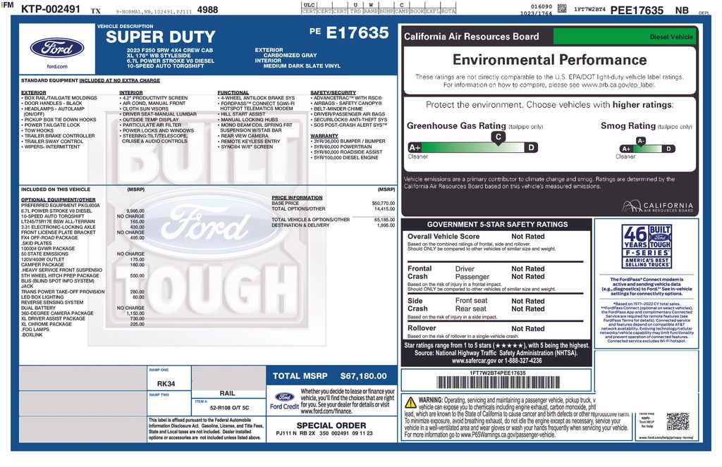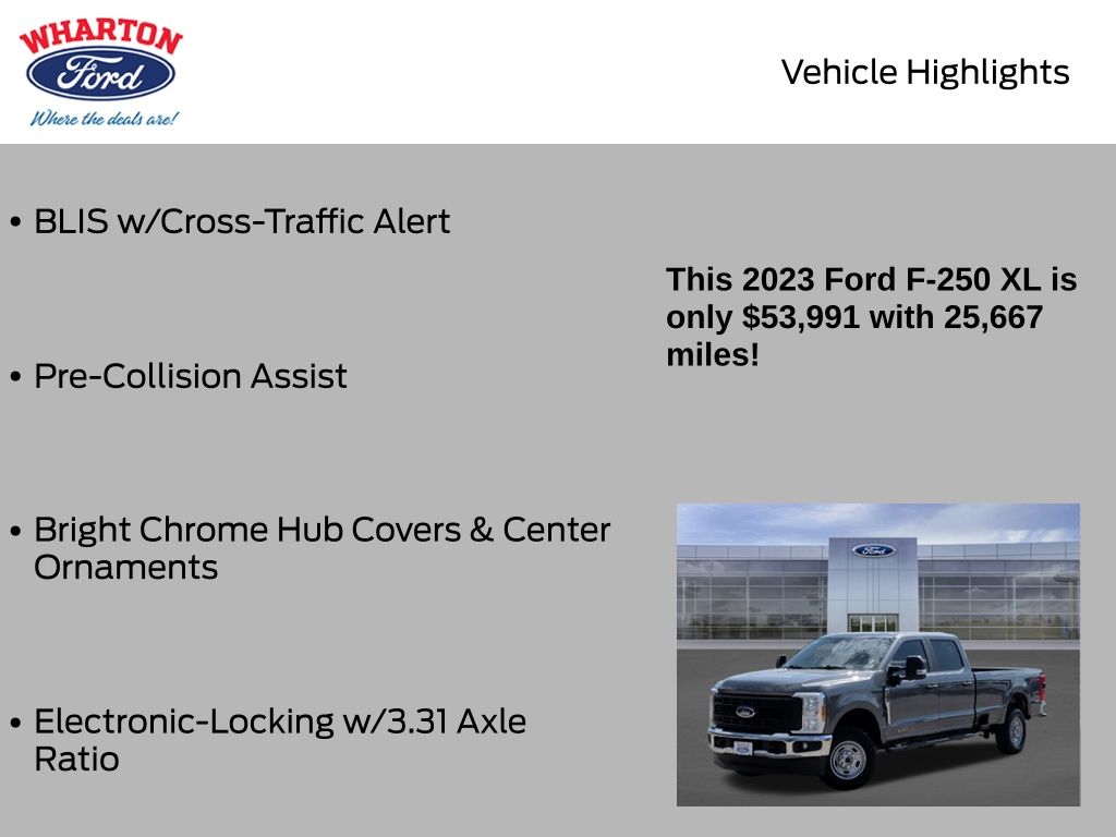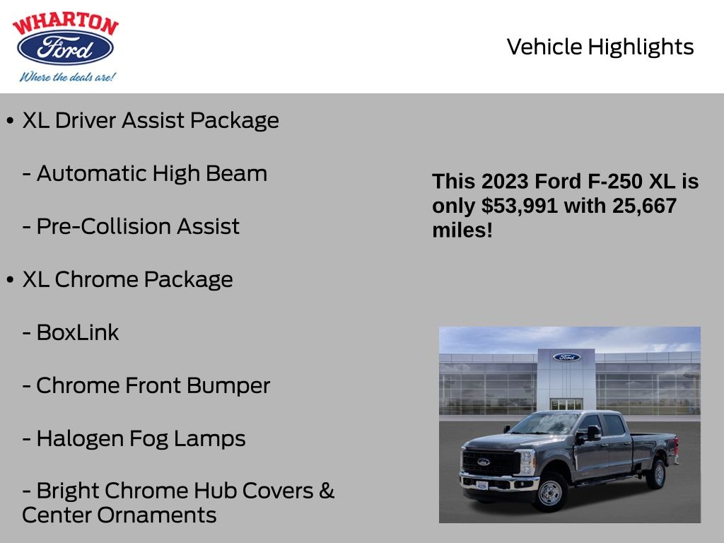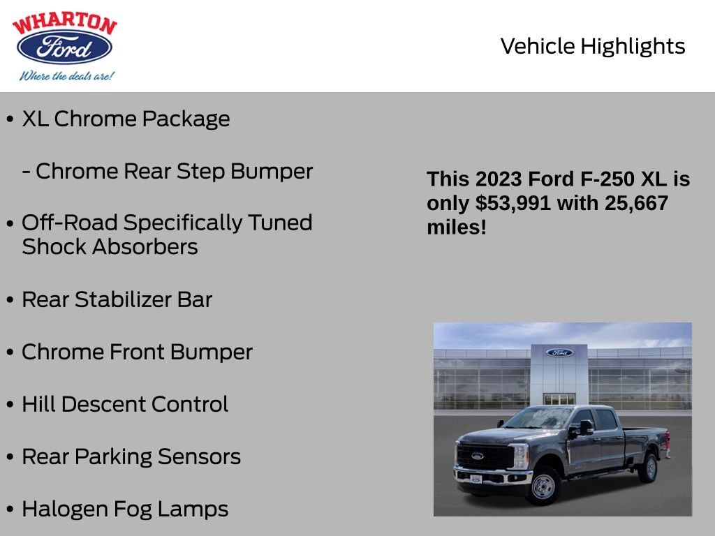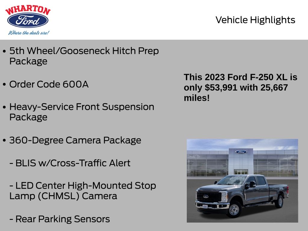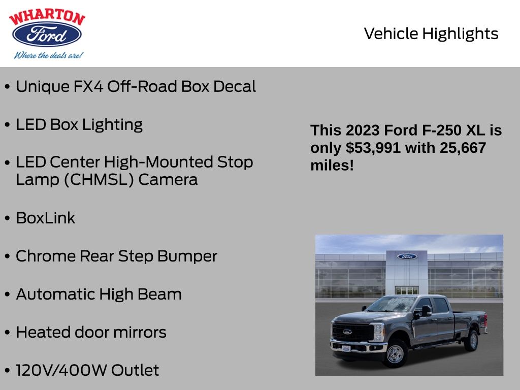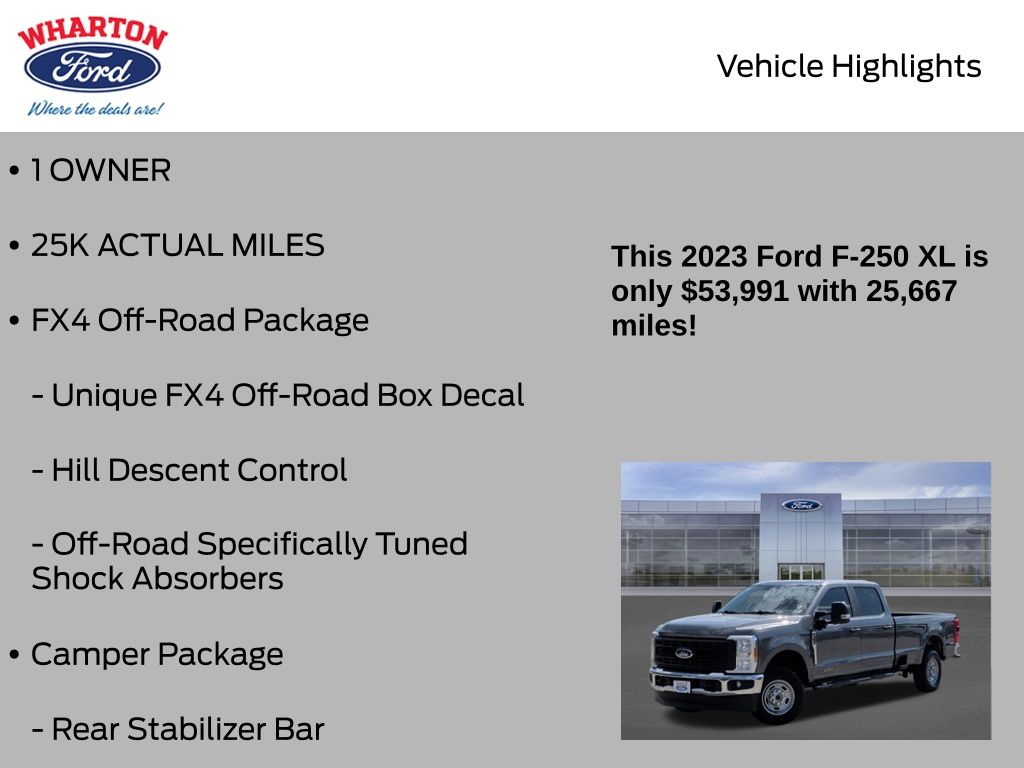 Certified. Carbonized Gray Metallic 2023 Ford F-250SD XL 4WD 10-Speed Automatic Power Stroke 6.7L V8 DI 32V OHV Turbodiesel 1 OWNER, 25K ACTUAL MILES, 4WD, 120V/400W Outlet, 360-Degree Camera Package, 5th Wheel/Gooseneck Hitch Prep Package, Automatic High Beam, BLIS w/Cross-Traffic Alert, BoxLink, Bright Chrome Hub Covers & Center Ornaments, Camper Package, Chrome Front Bumper, Chrome Rear Step Bumper, Electronic-Locking w/3.31 Axle Ratio, FX4 Off-Road Package, Halogen Fog Lamps, Heated door mir